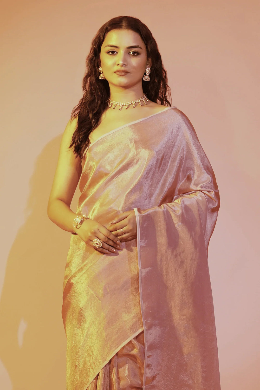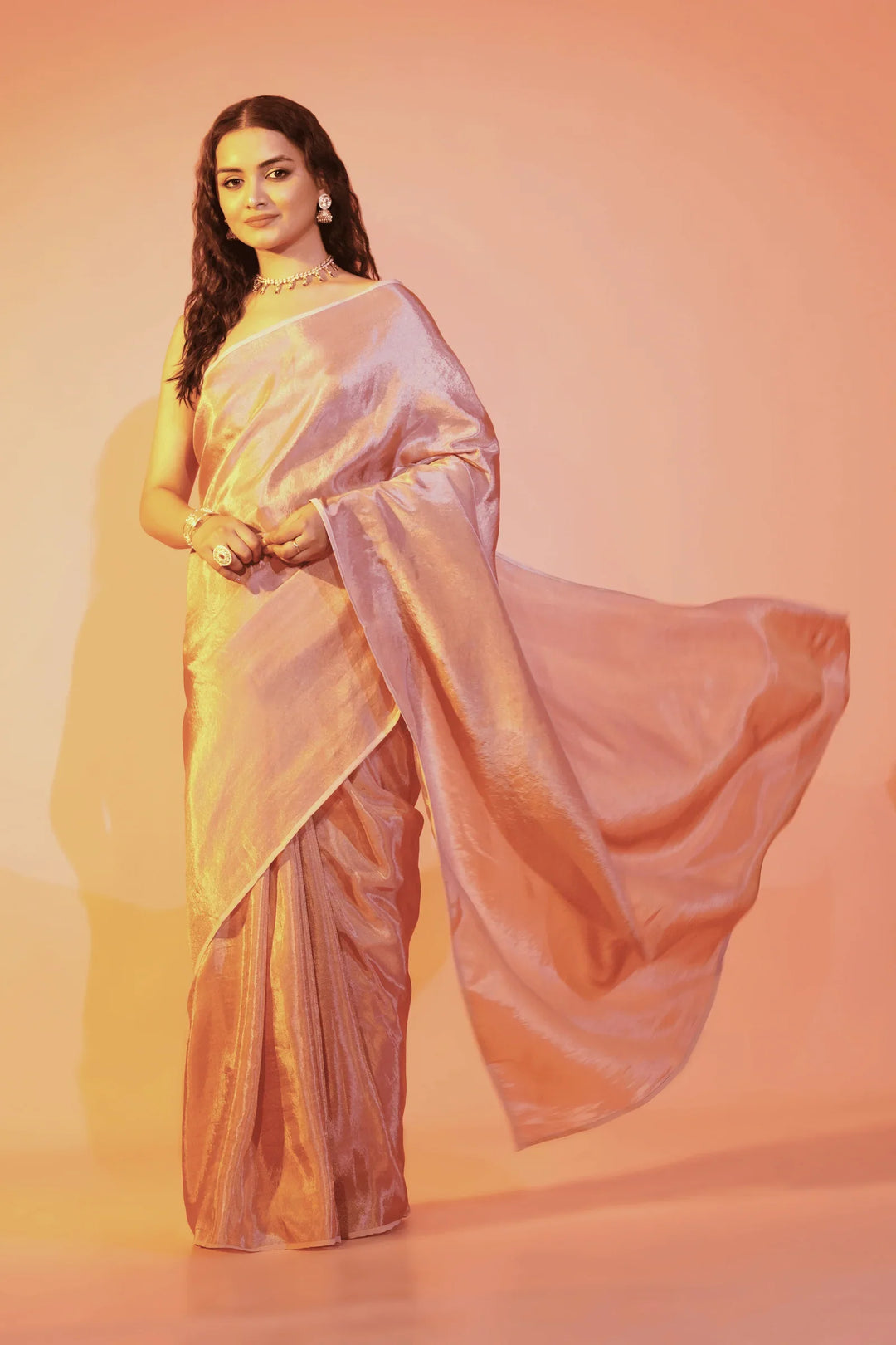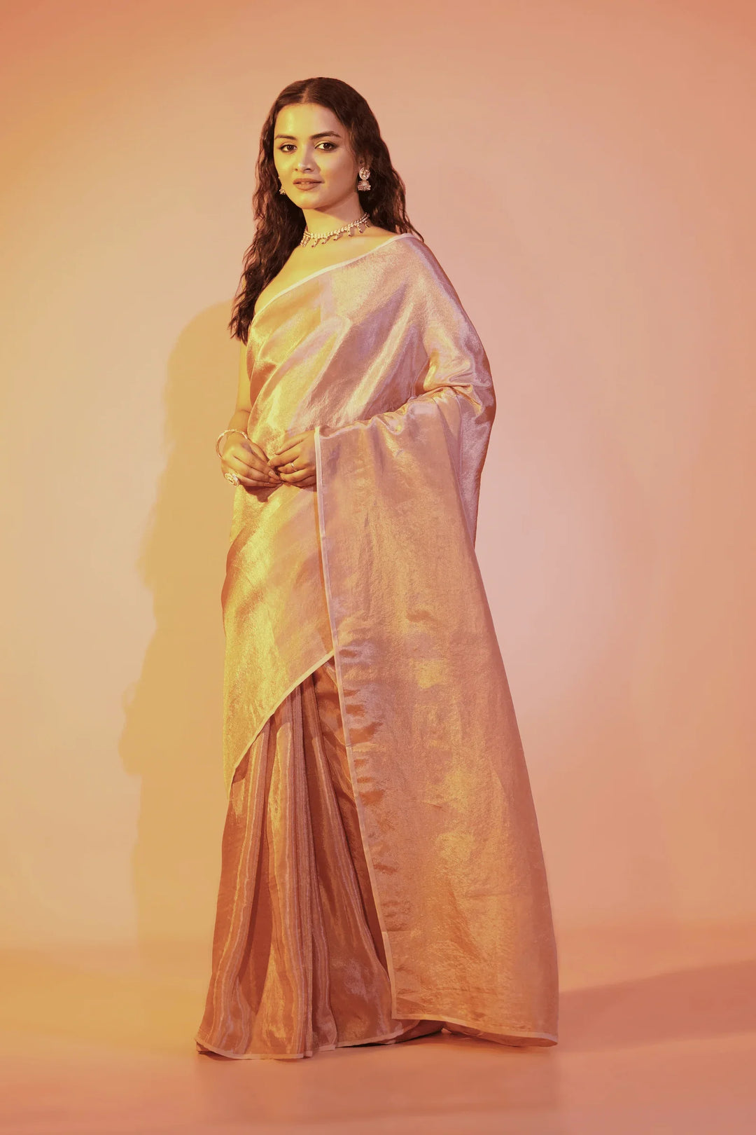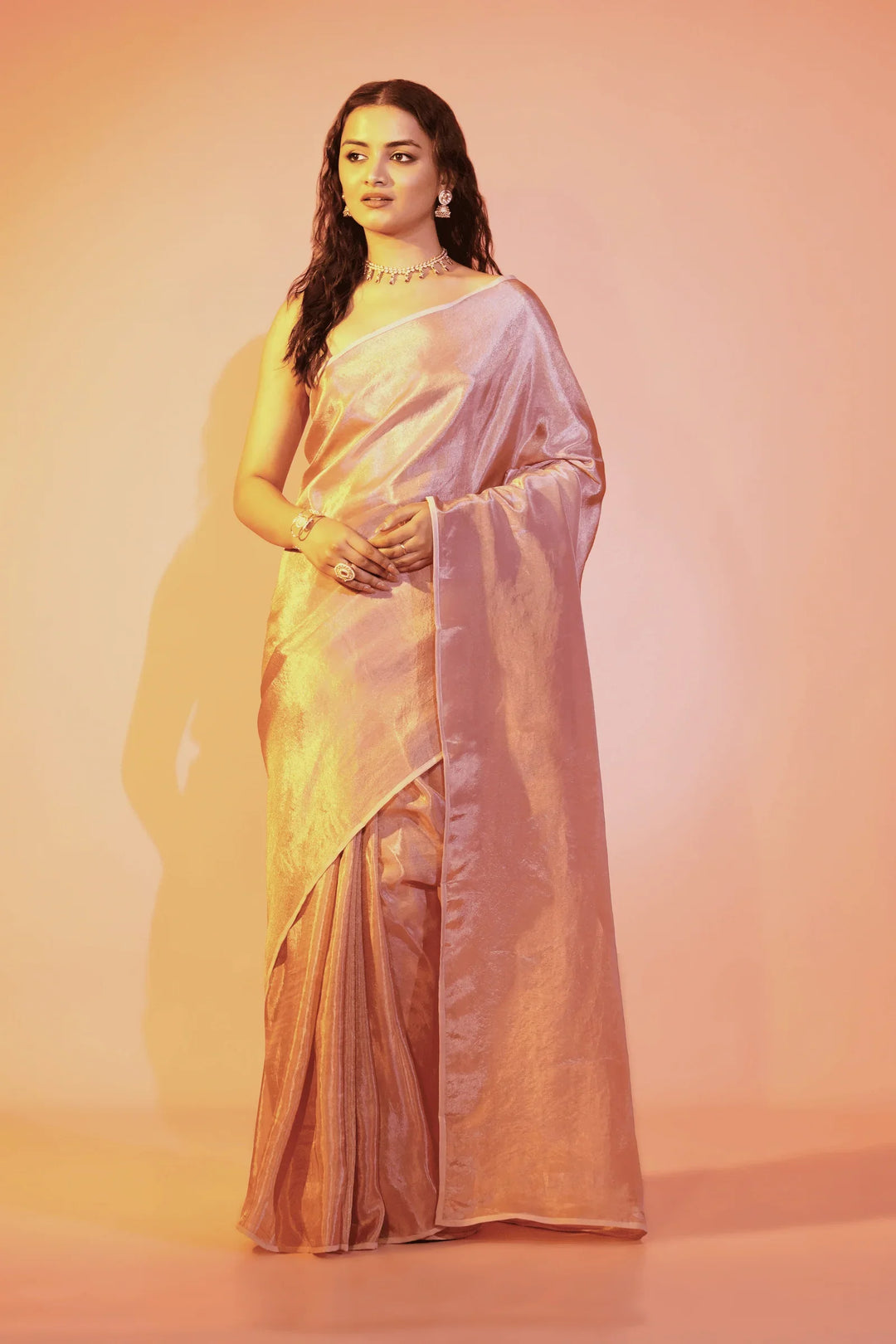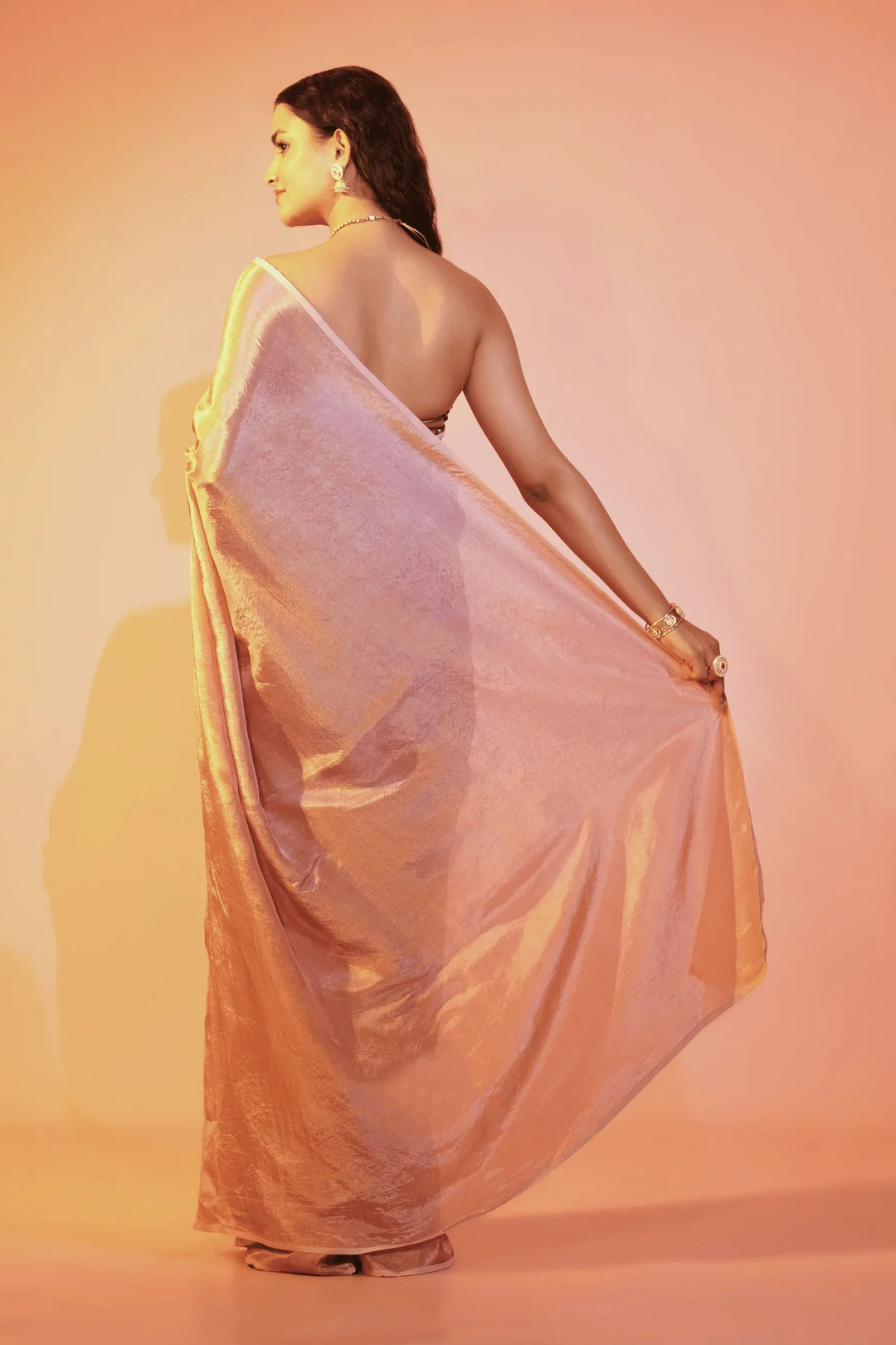 - Blush Pink one minute saree in cosmos fabric- tint of gold.