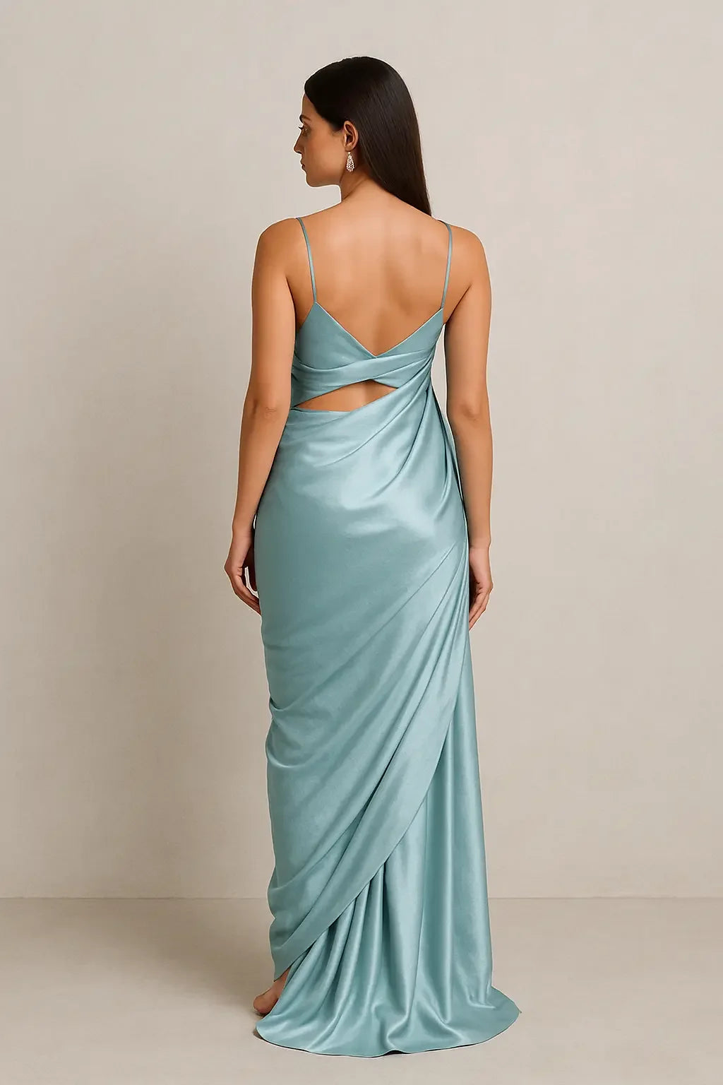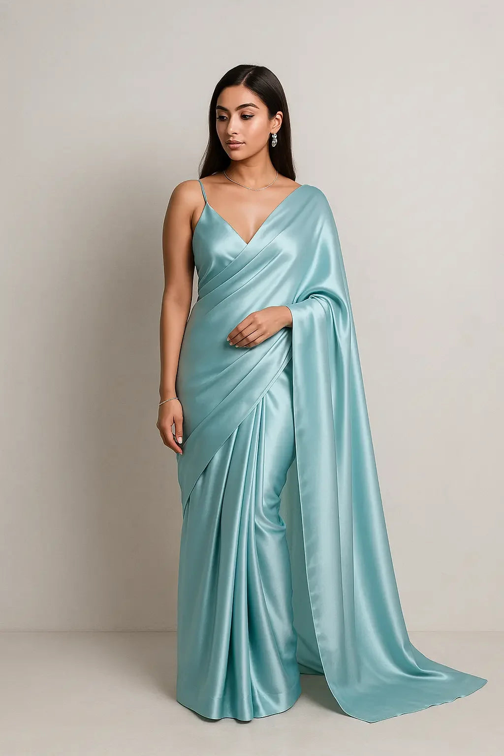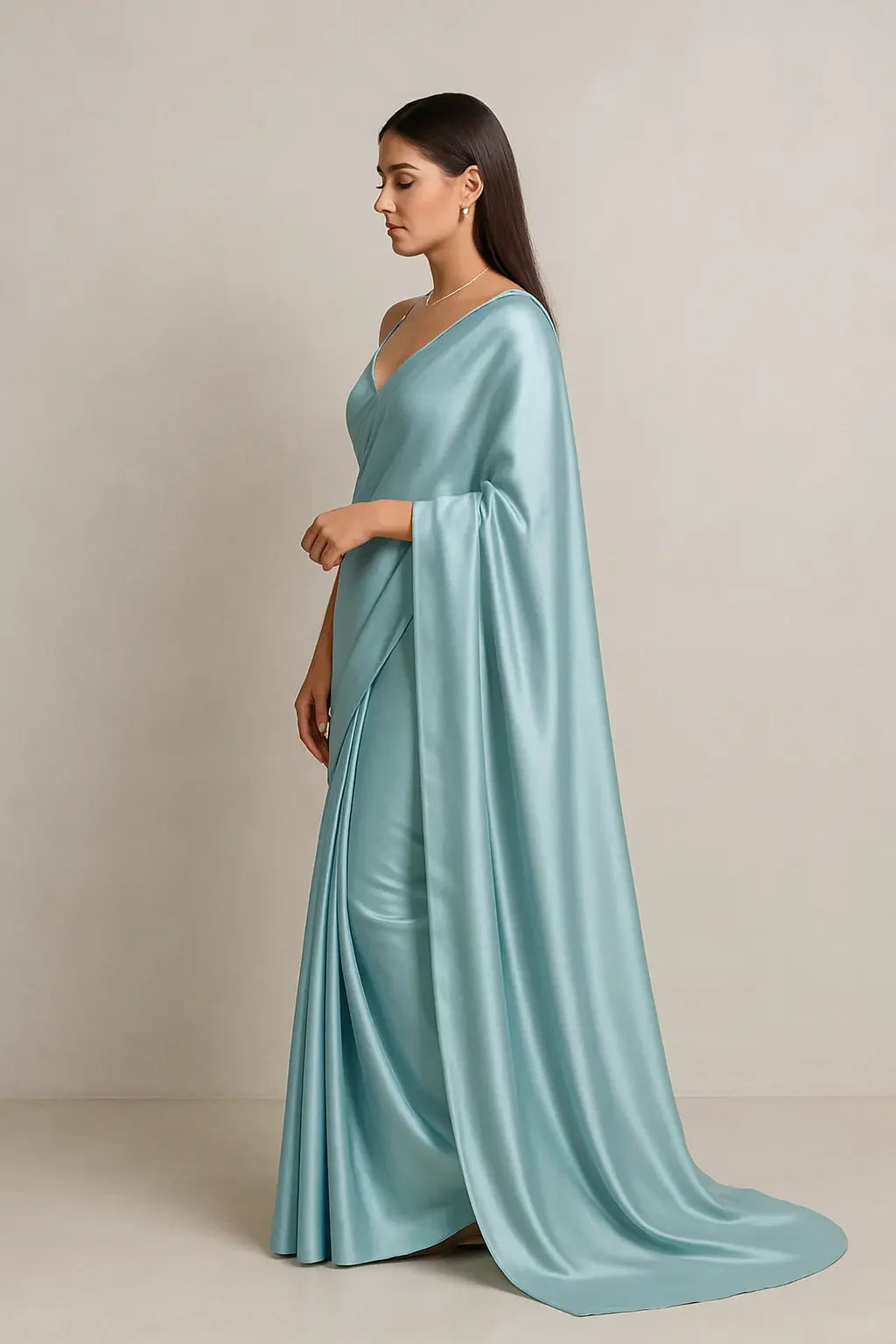 Snow-Blue | Ready-to-Wear Satin Saree with Blouse piece