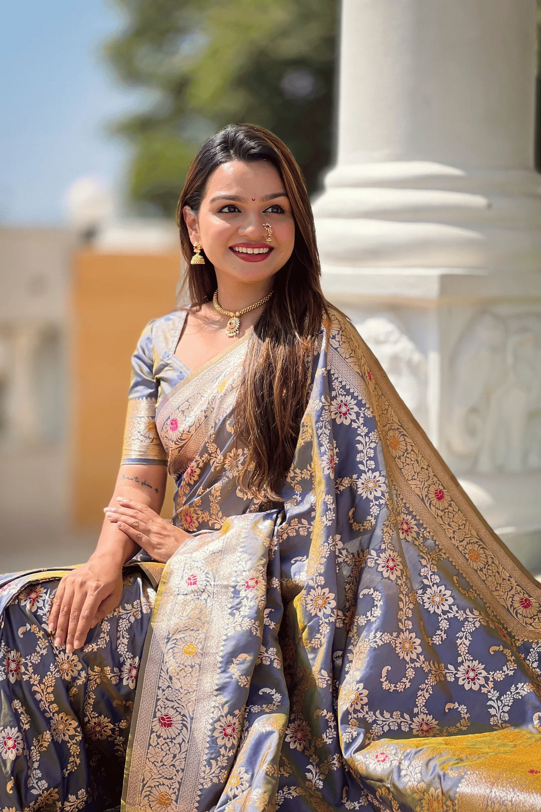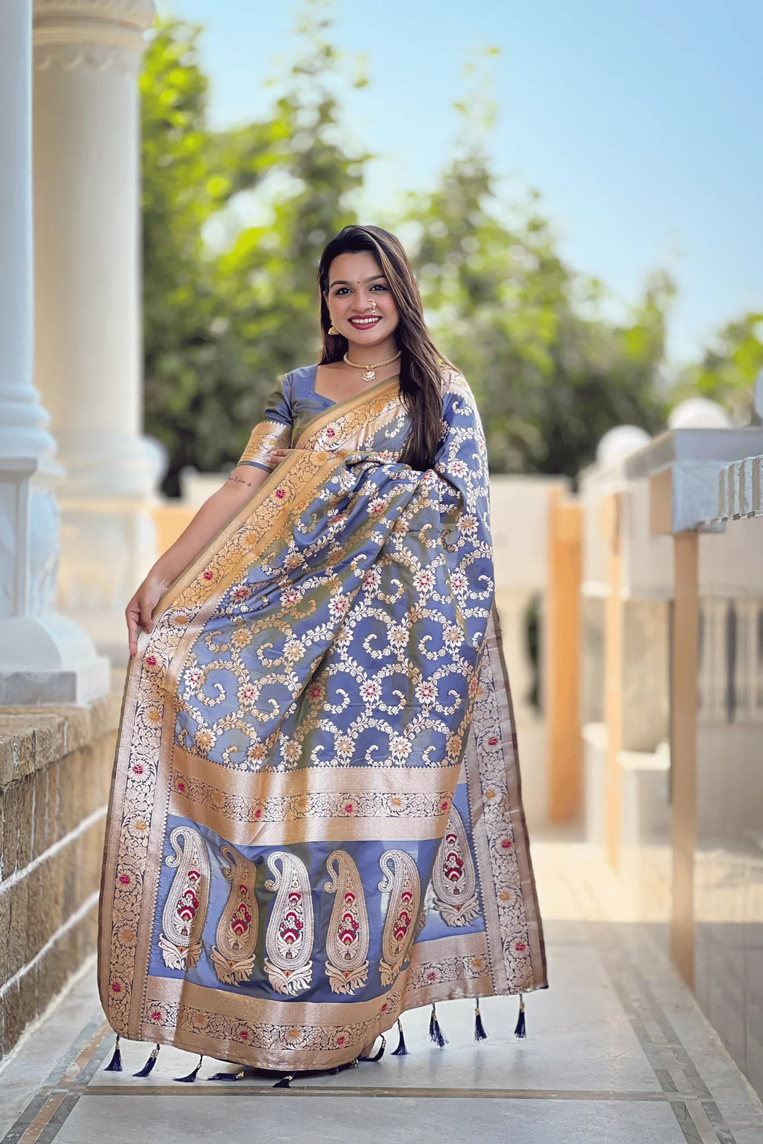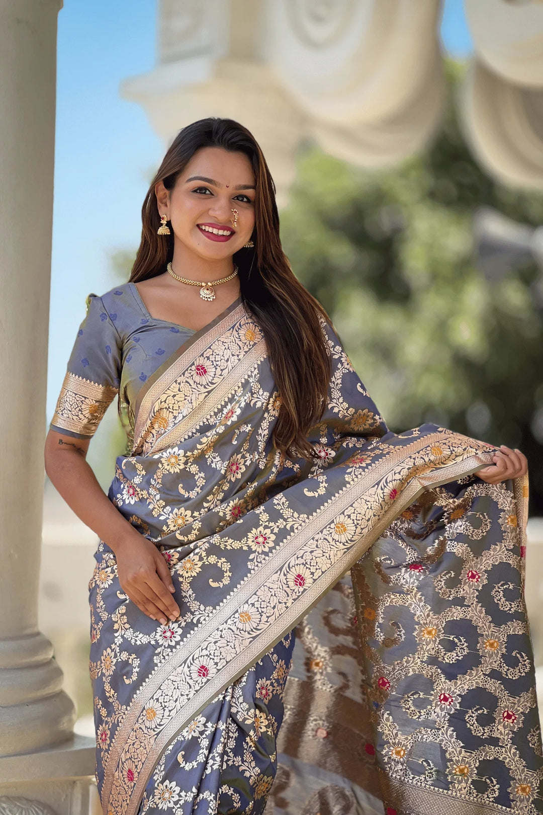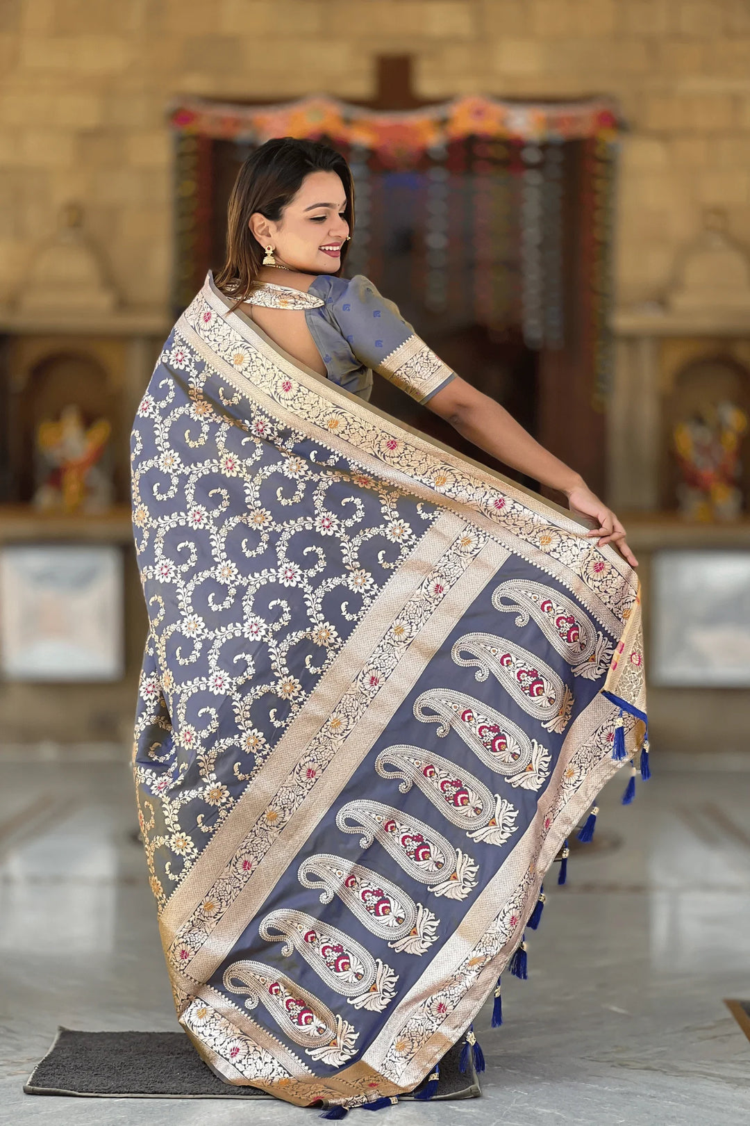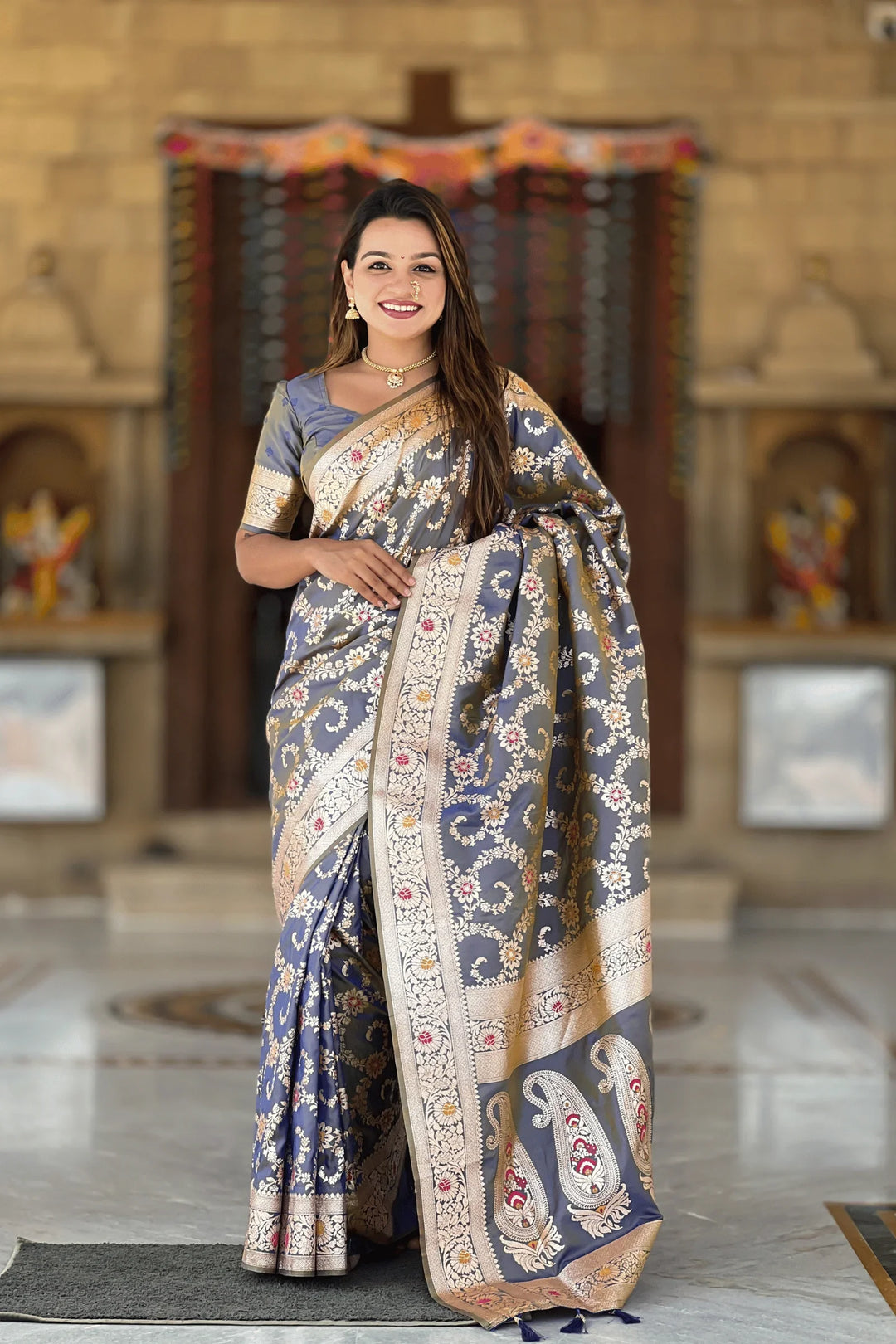 Shahi Shimmer | Ready to Wear Grey Banarasi Silk Saree