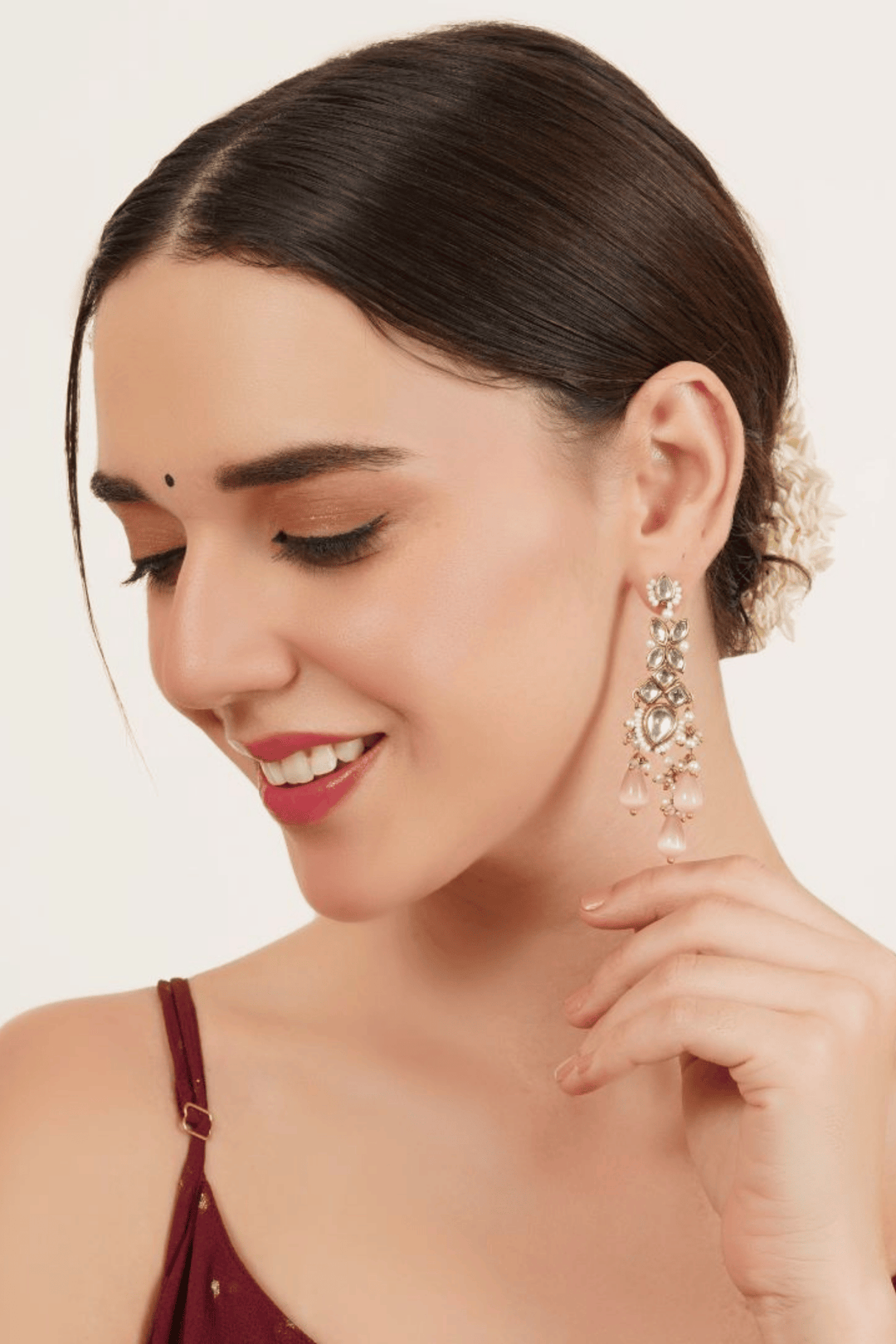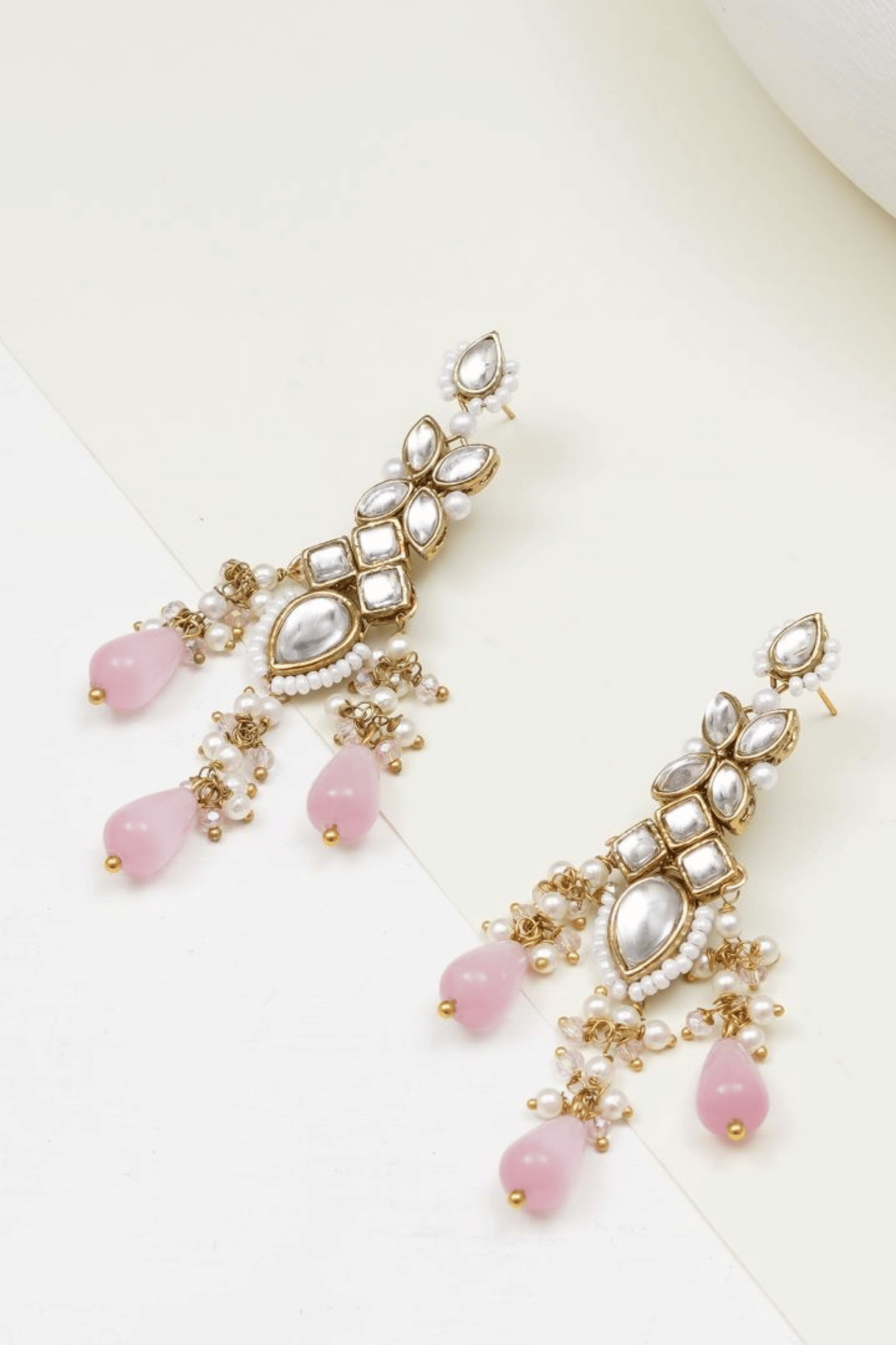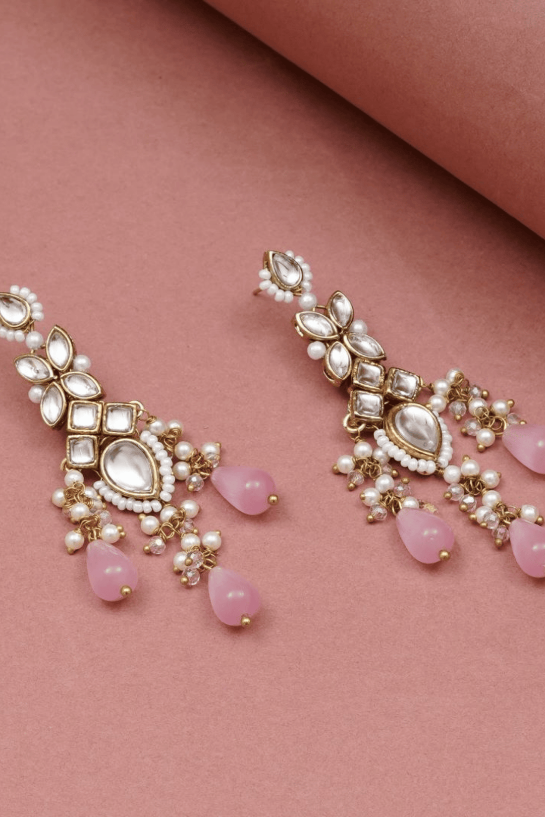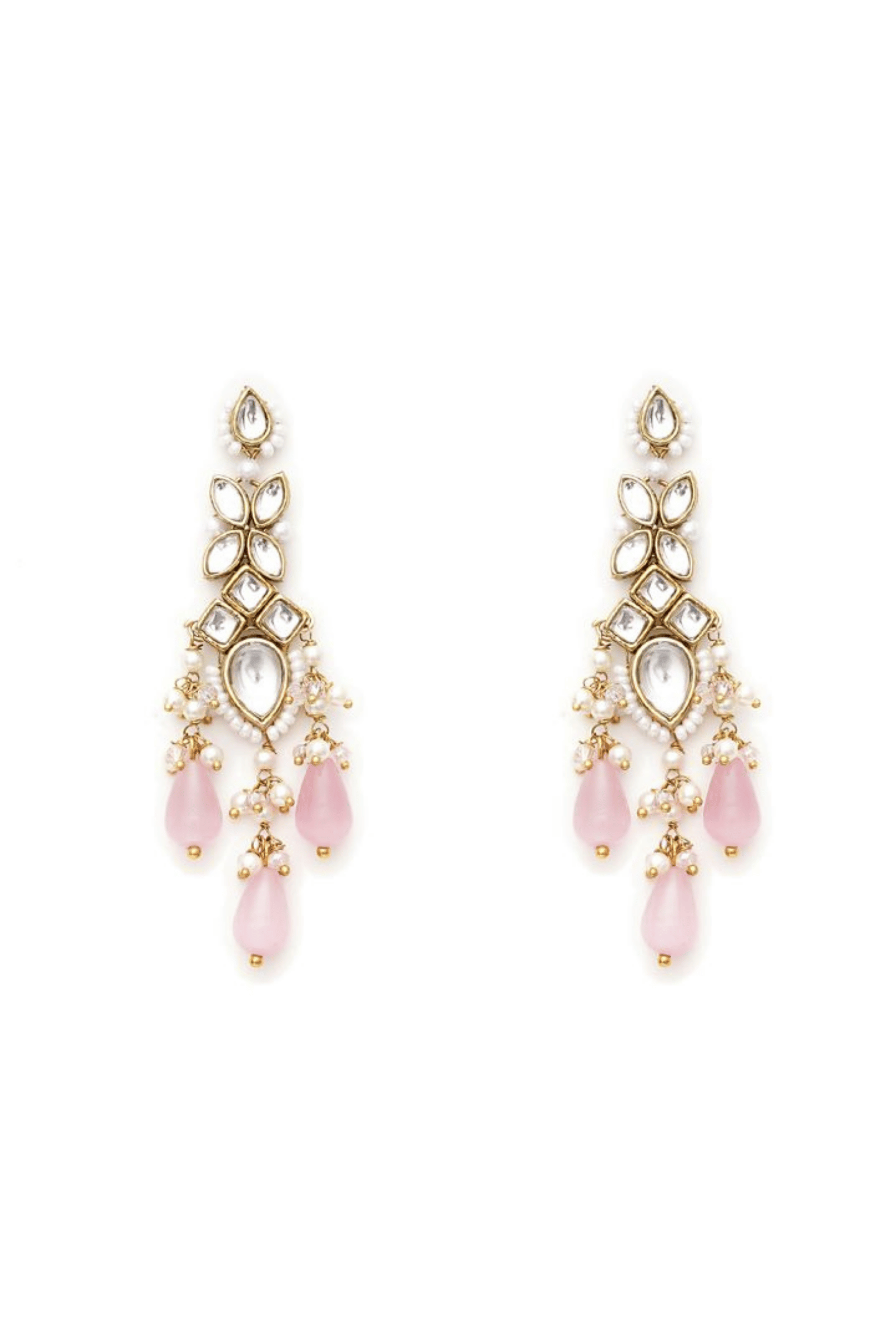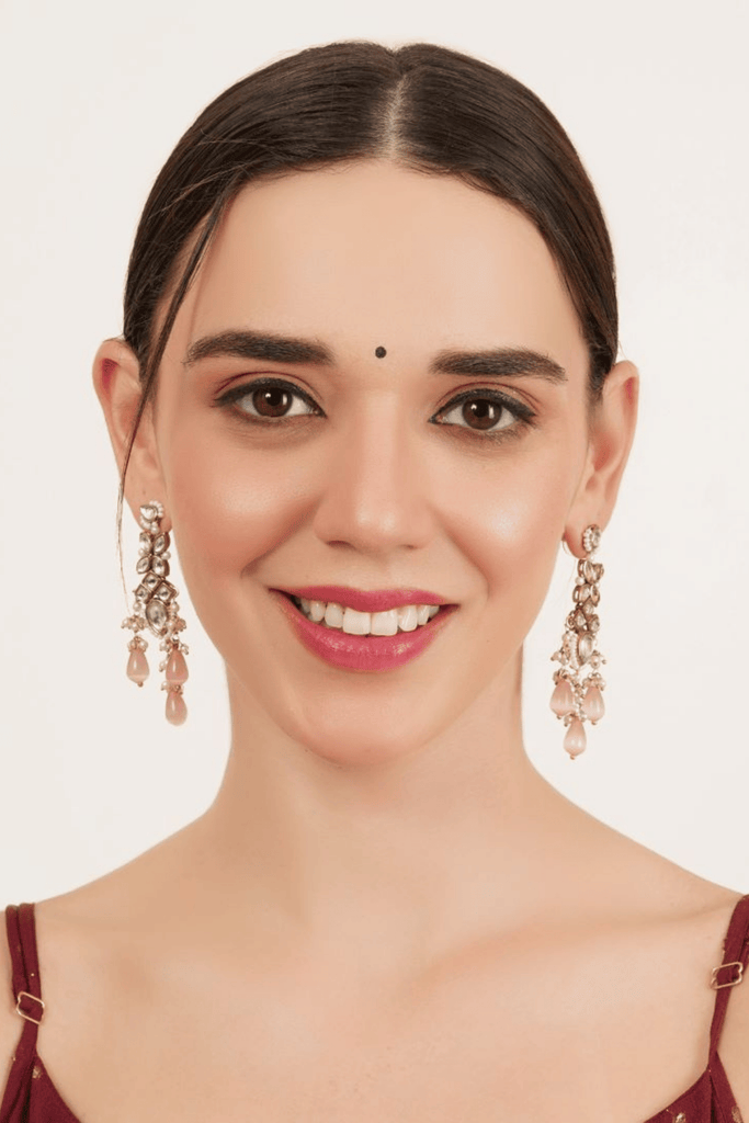 Rosé Cascade | Kundan Drop Earrings