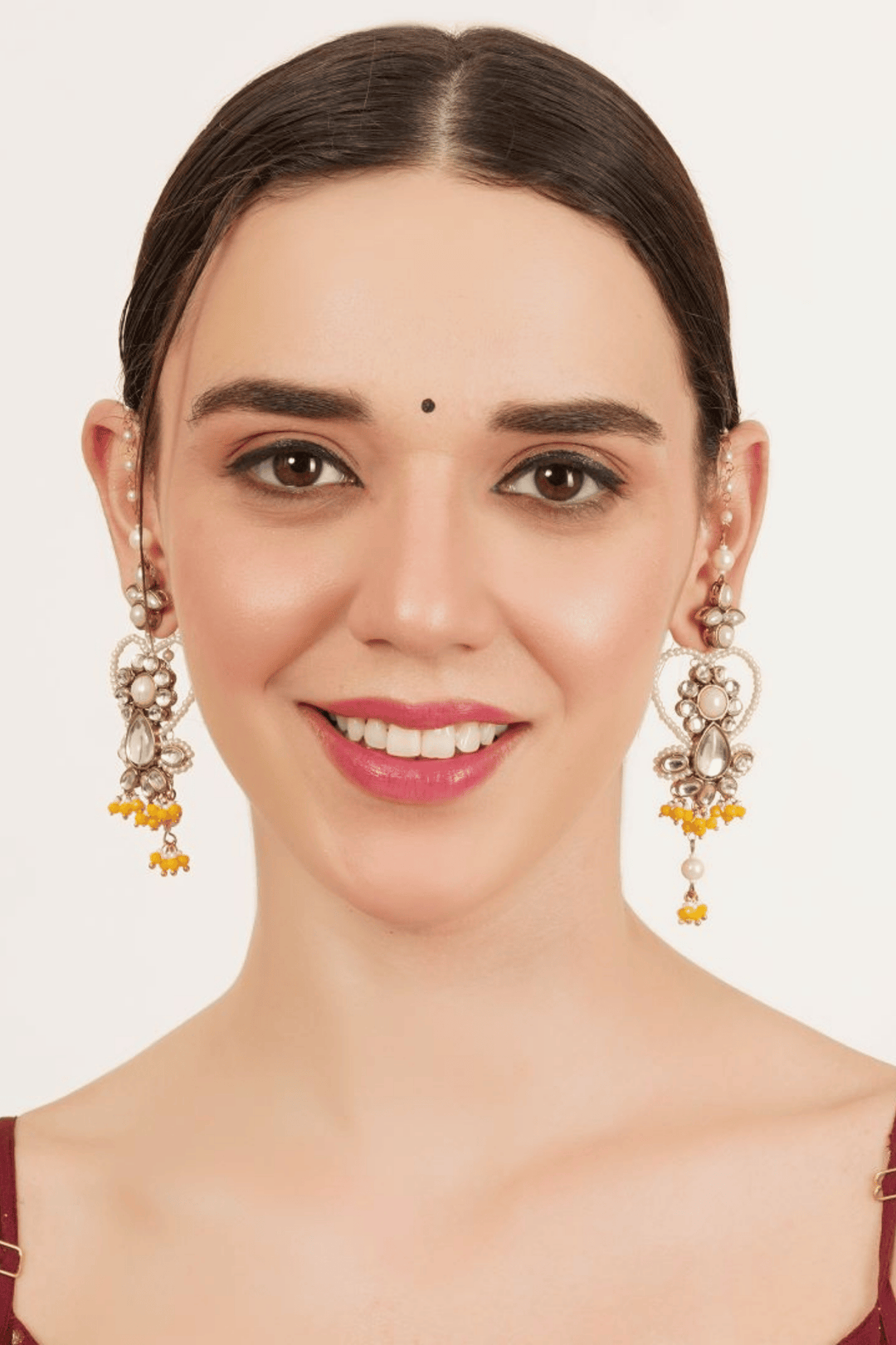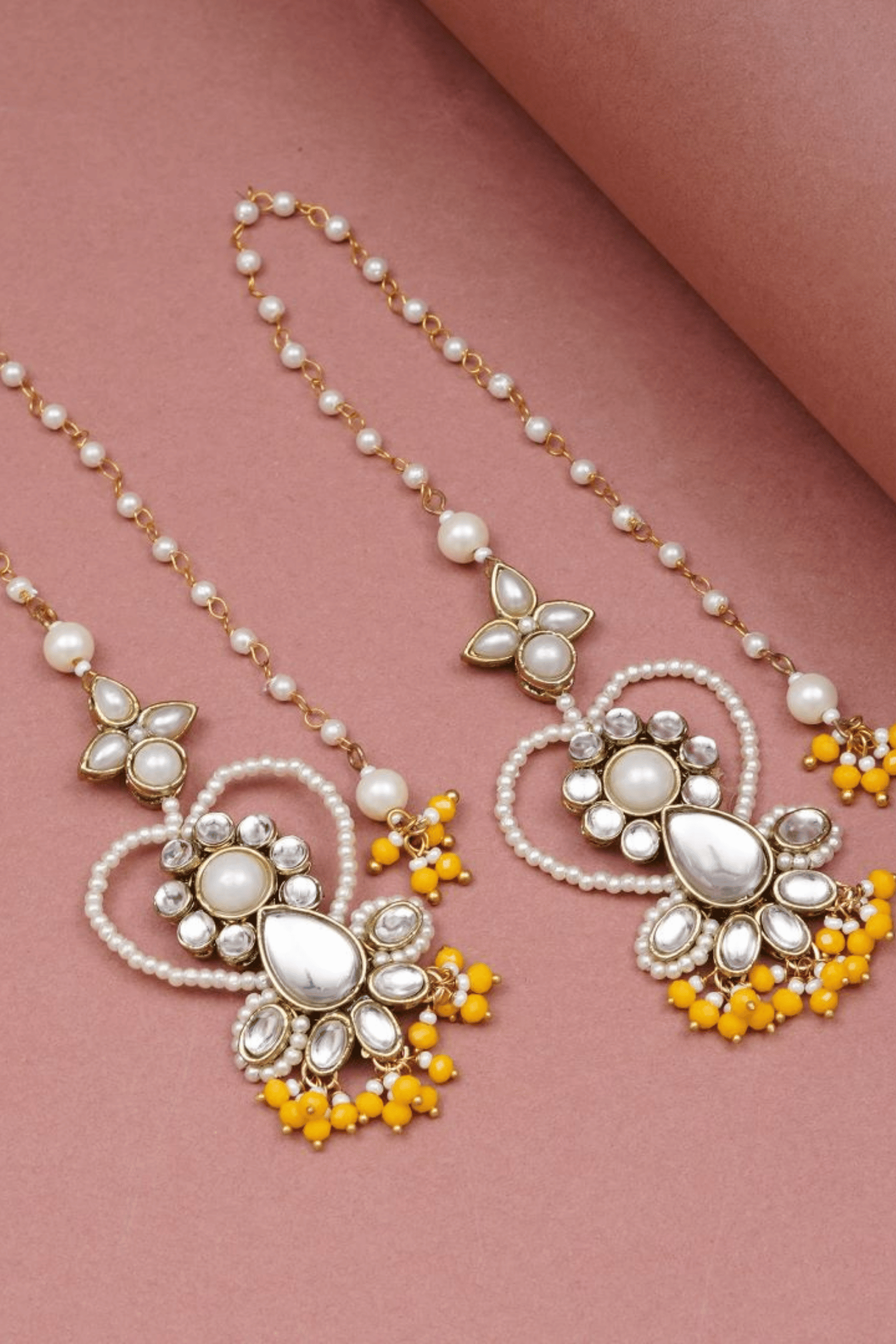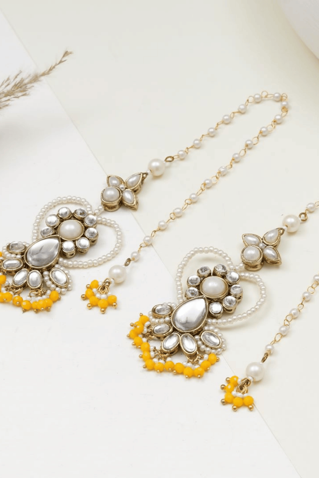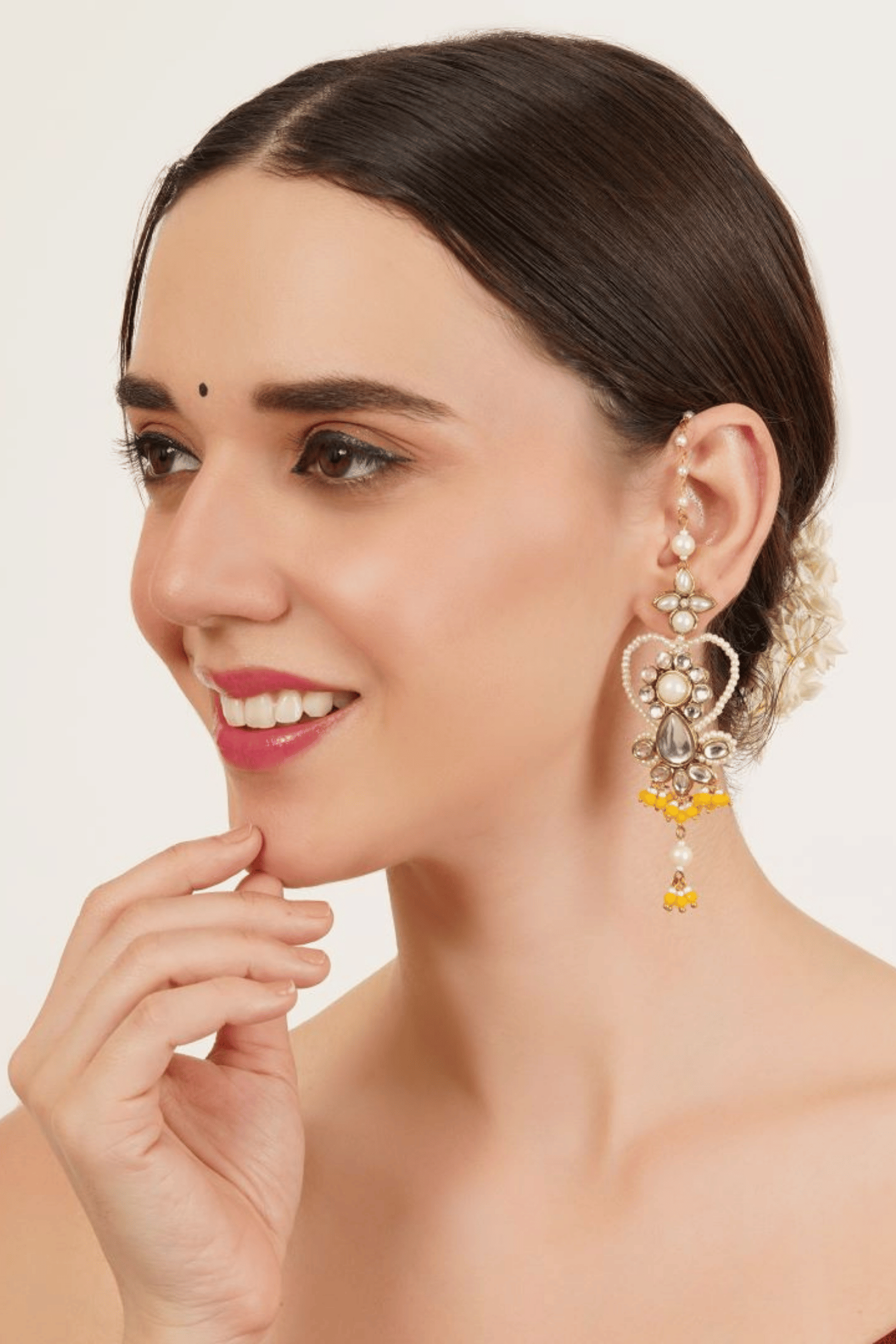 Pearl Hearts | Yellow Beaded Kanauti Earrings