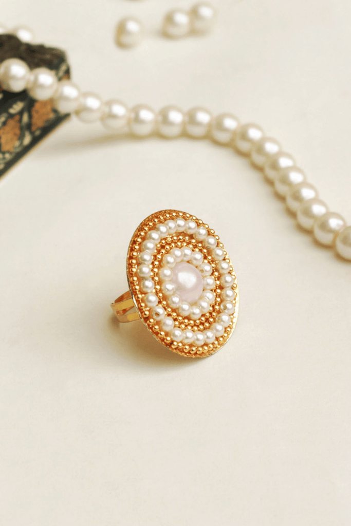 Golden Swirl Pearl Ring