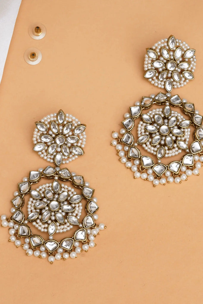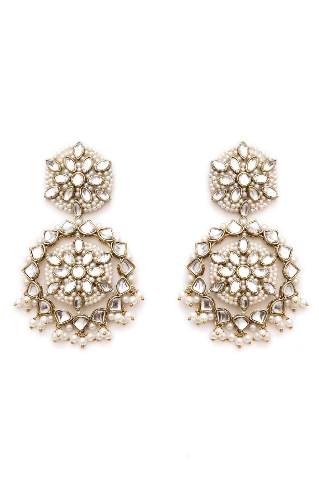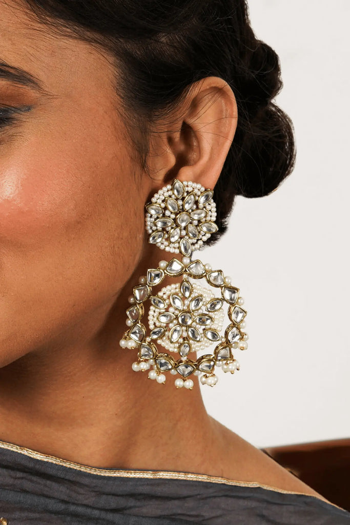 Noor-e-Gul | Double Floral Kundan Handcrafted Earrings