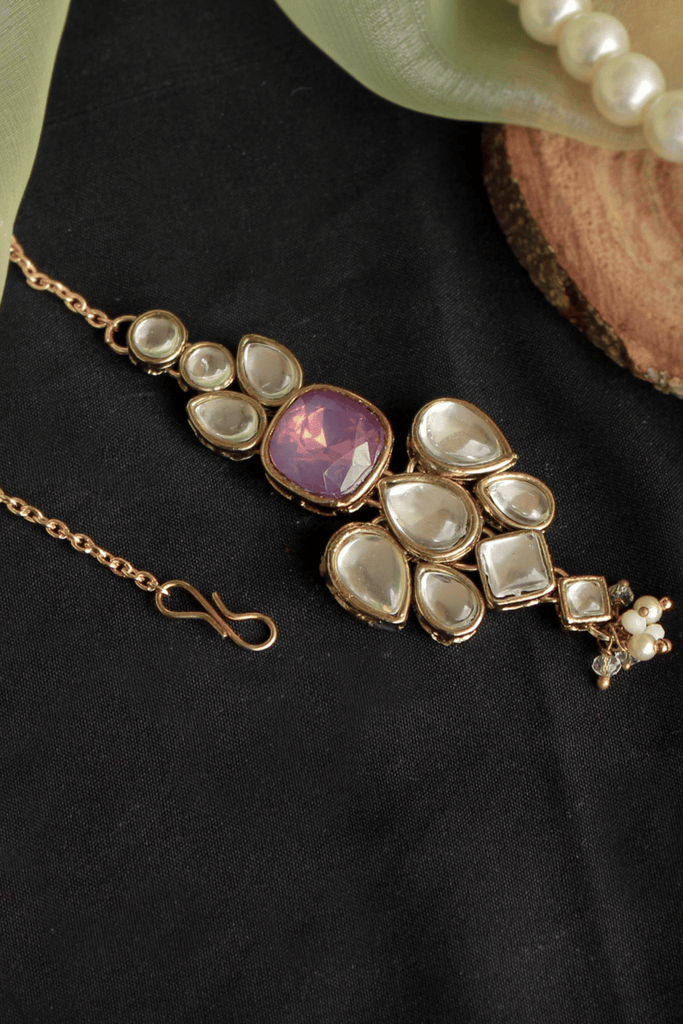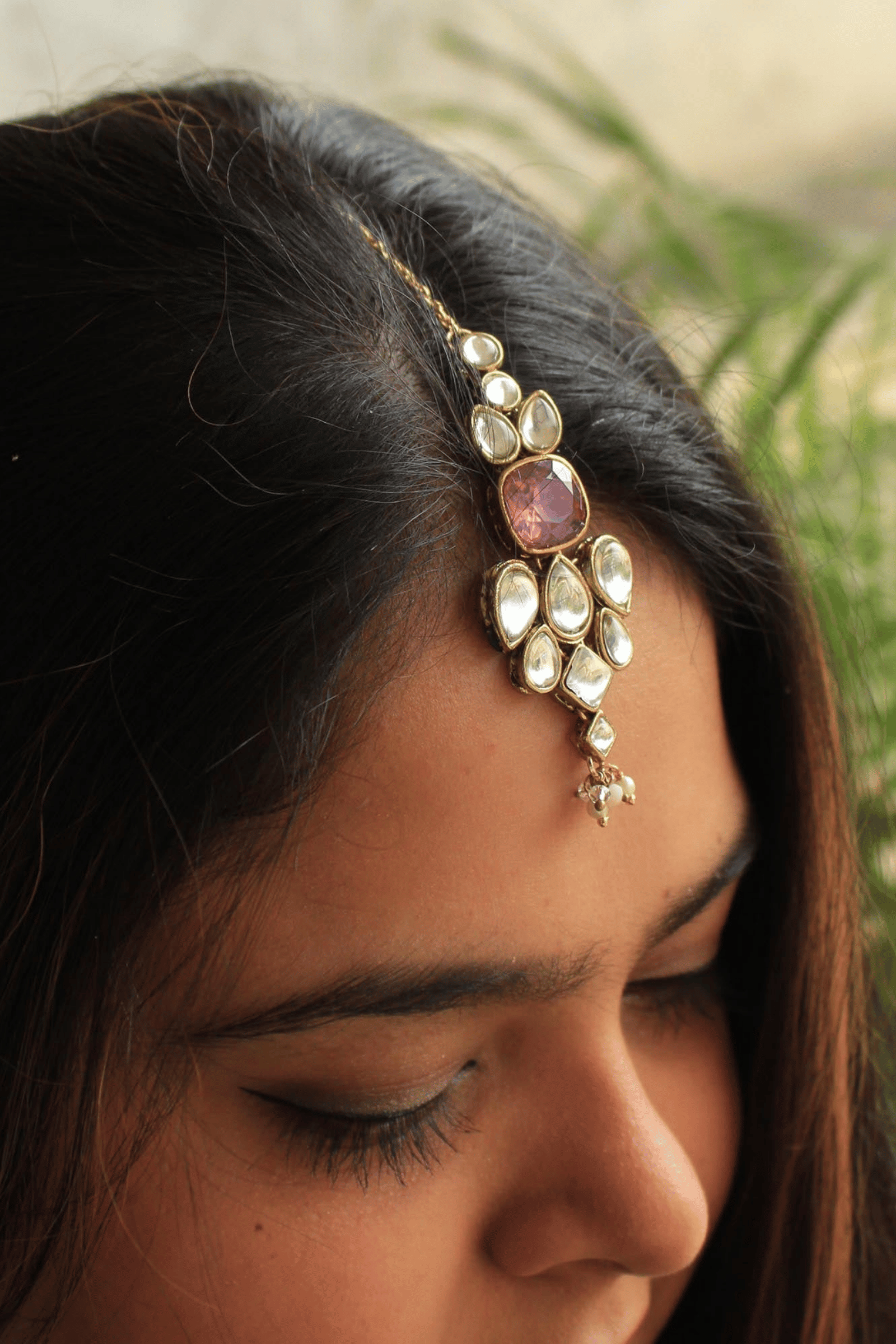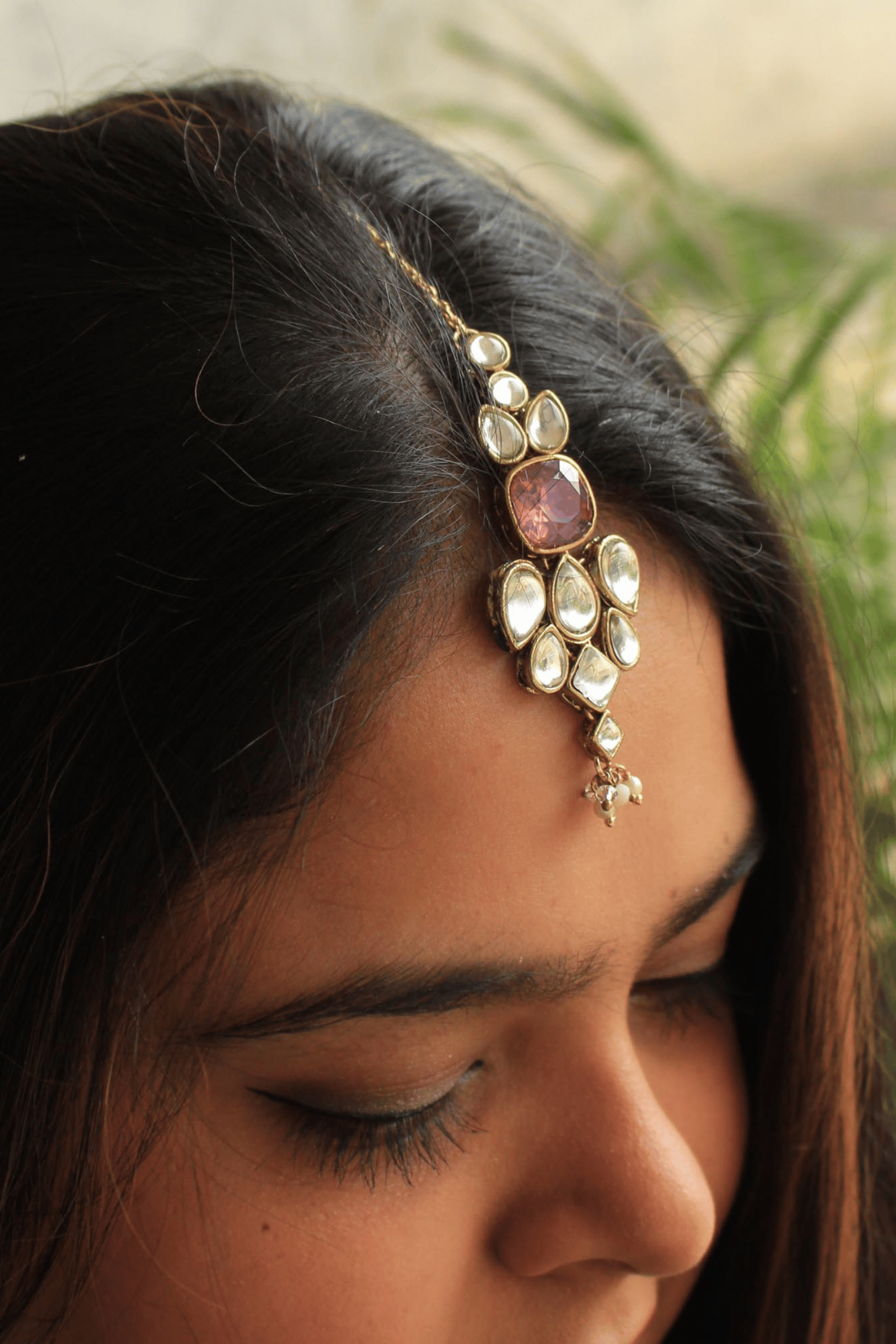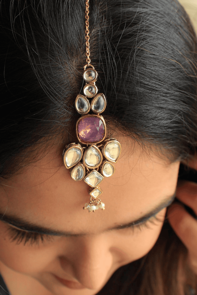 This Mangtika gives you a real ethnic as well as royal look. This traditional kundan tikka can go along with any traditional dress and will give an elegant touch to your attire and makes you stand out in the crowd.