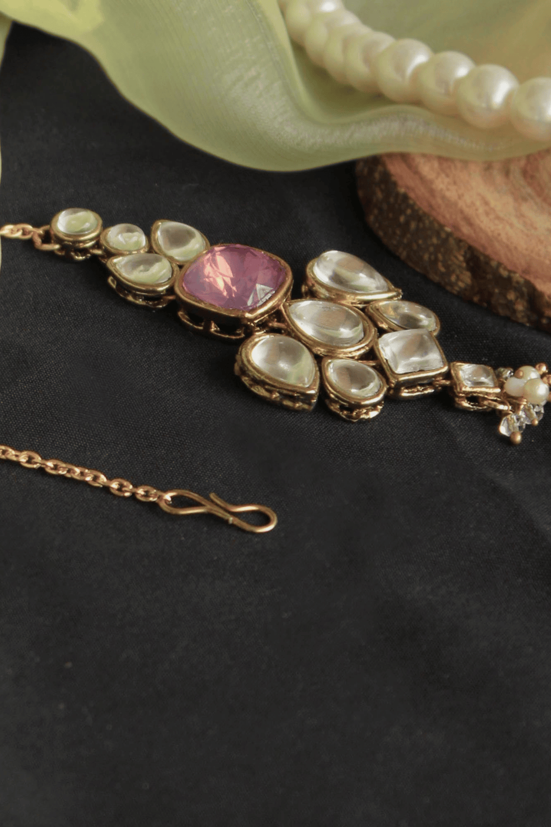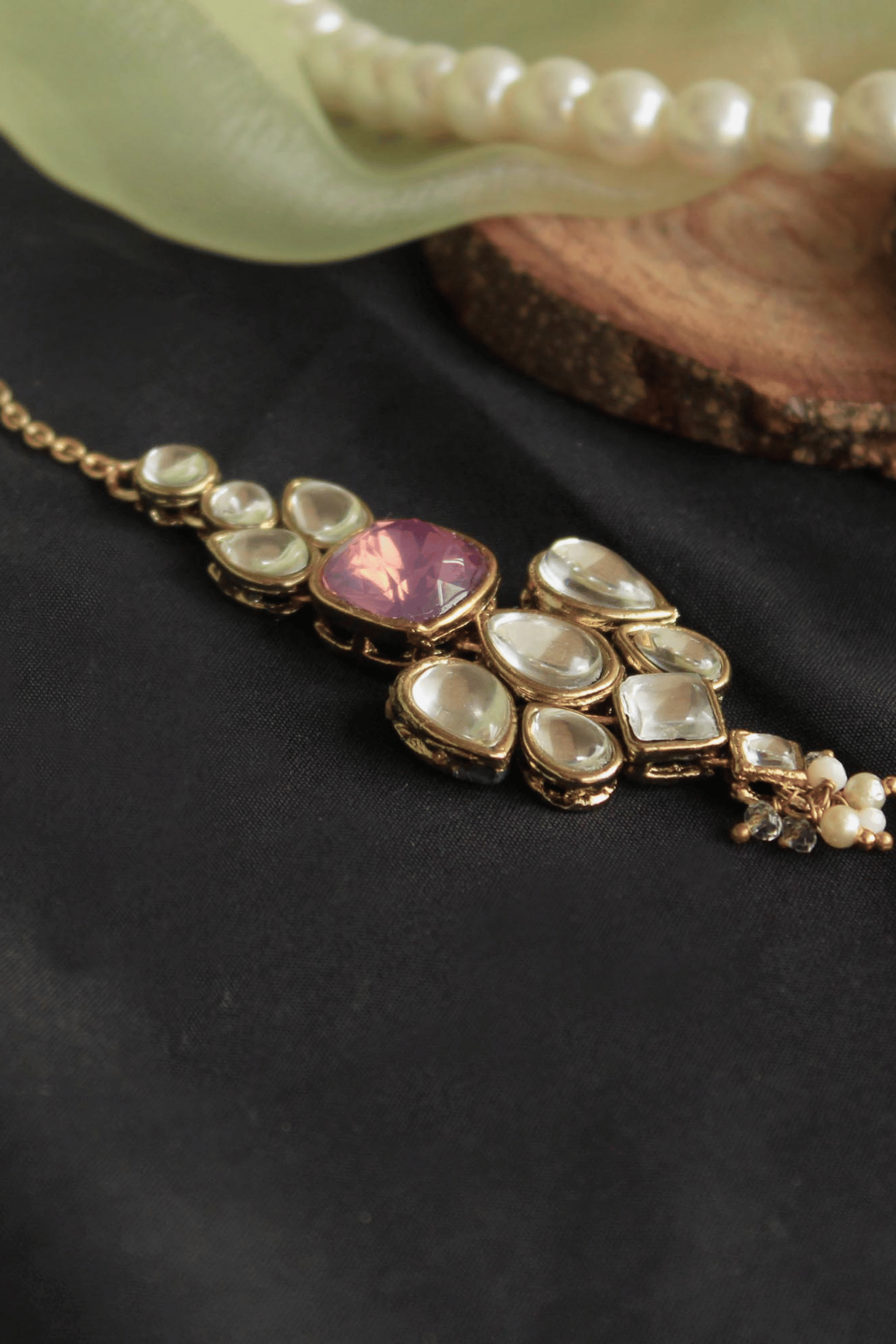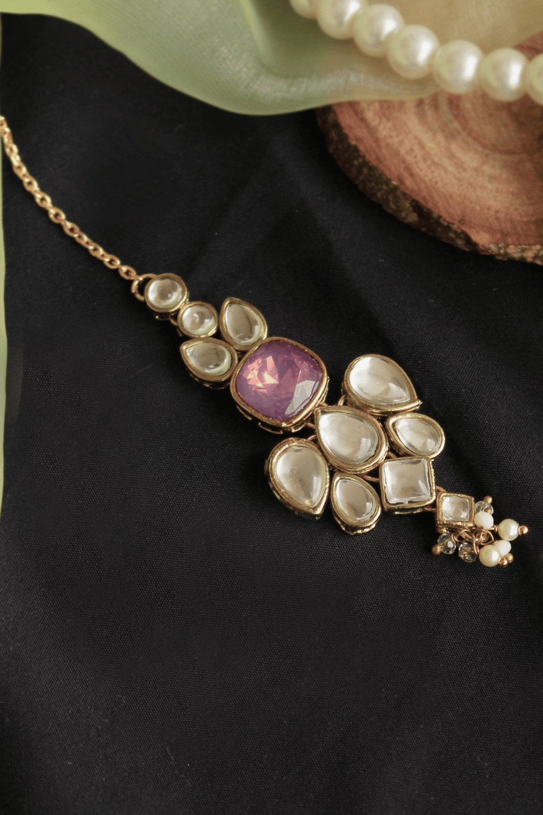 This Mangtika gives you a real ethnic as well as royal look. This traditional kundan tikka can go along with any traditional dress and will give an elegant touch to your attire and makes you stand out in the crowd.