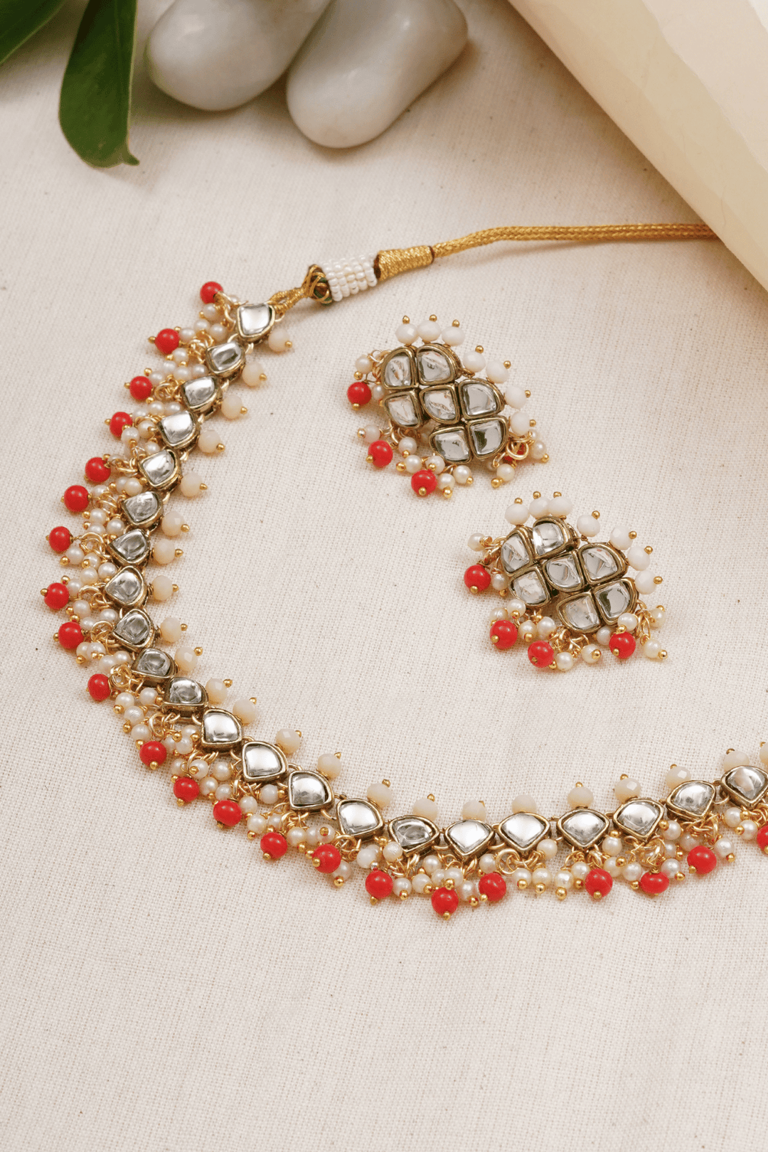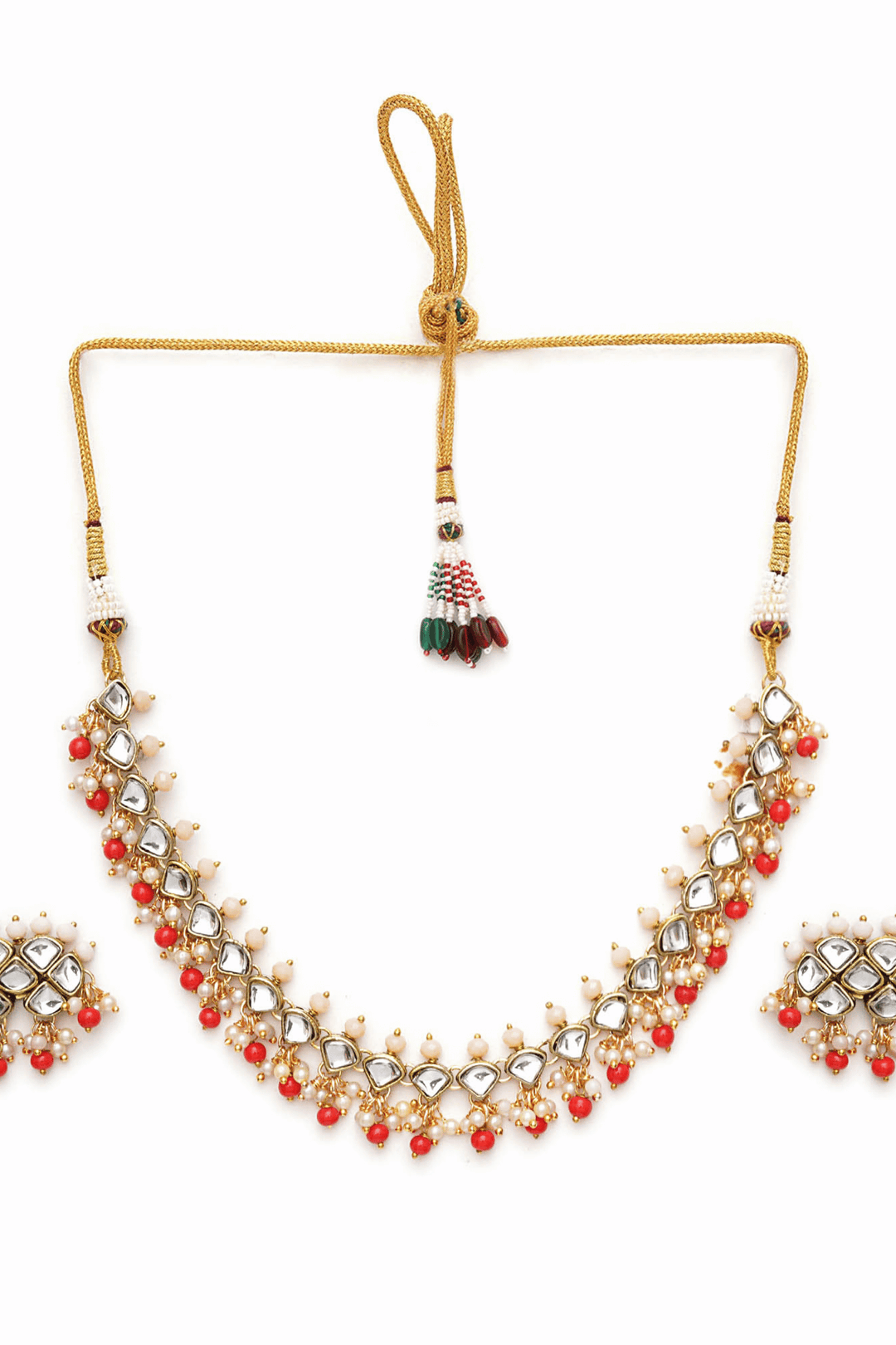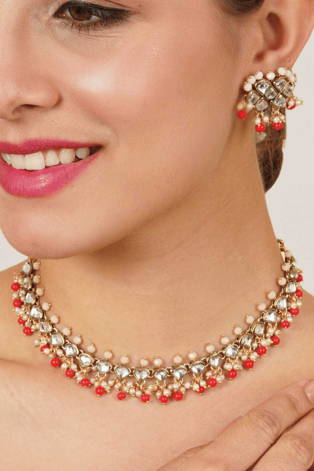 Embellished with colored beads and kundan, the Maharani Haar necklace will bring the spotlight on you.