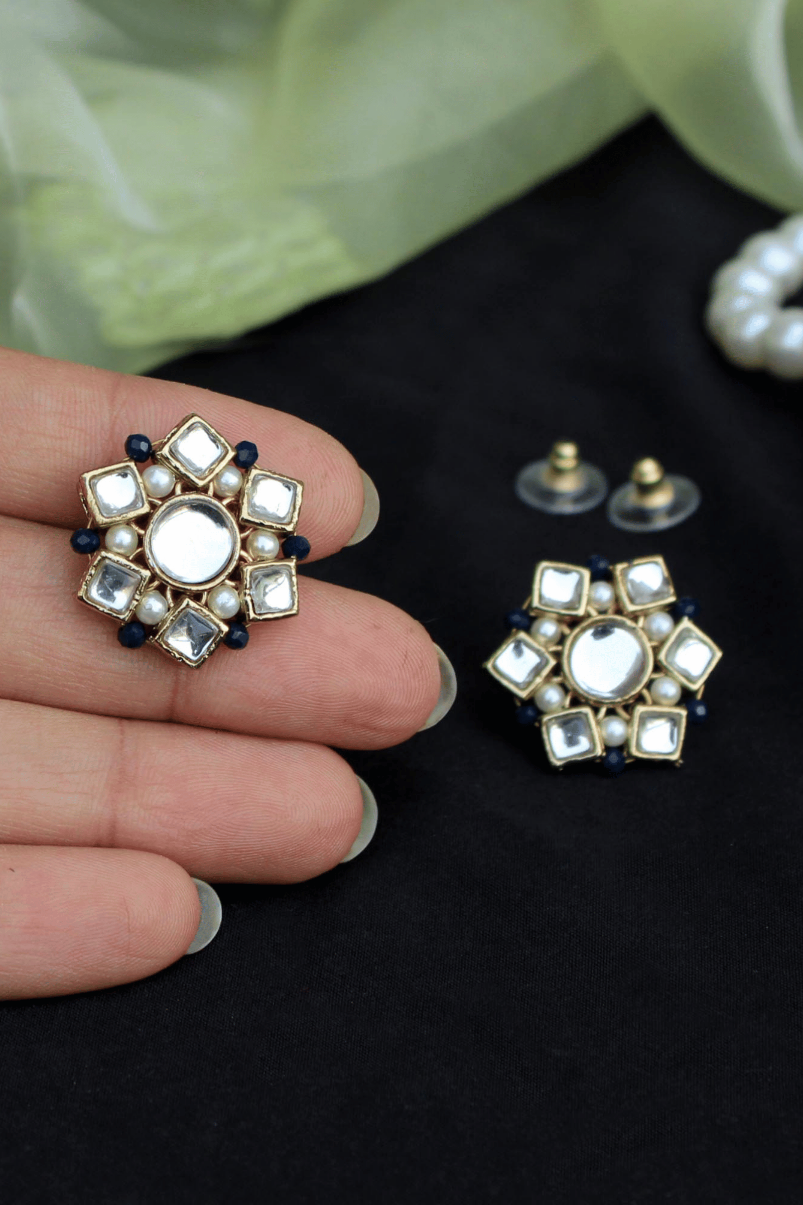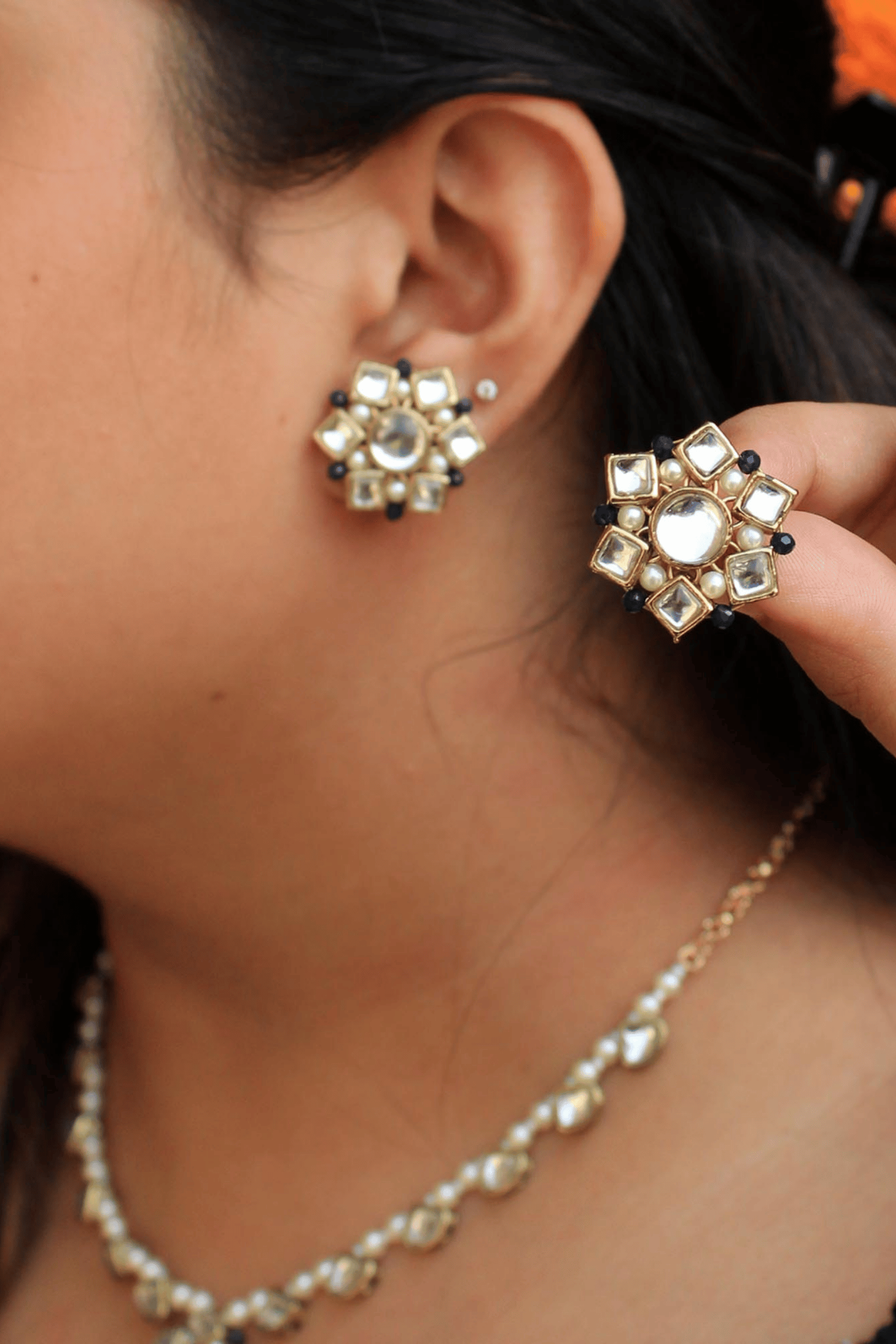 Elegant minimal kundan and pearl detailing