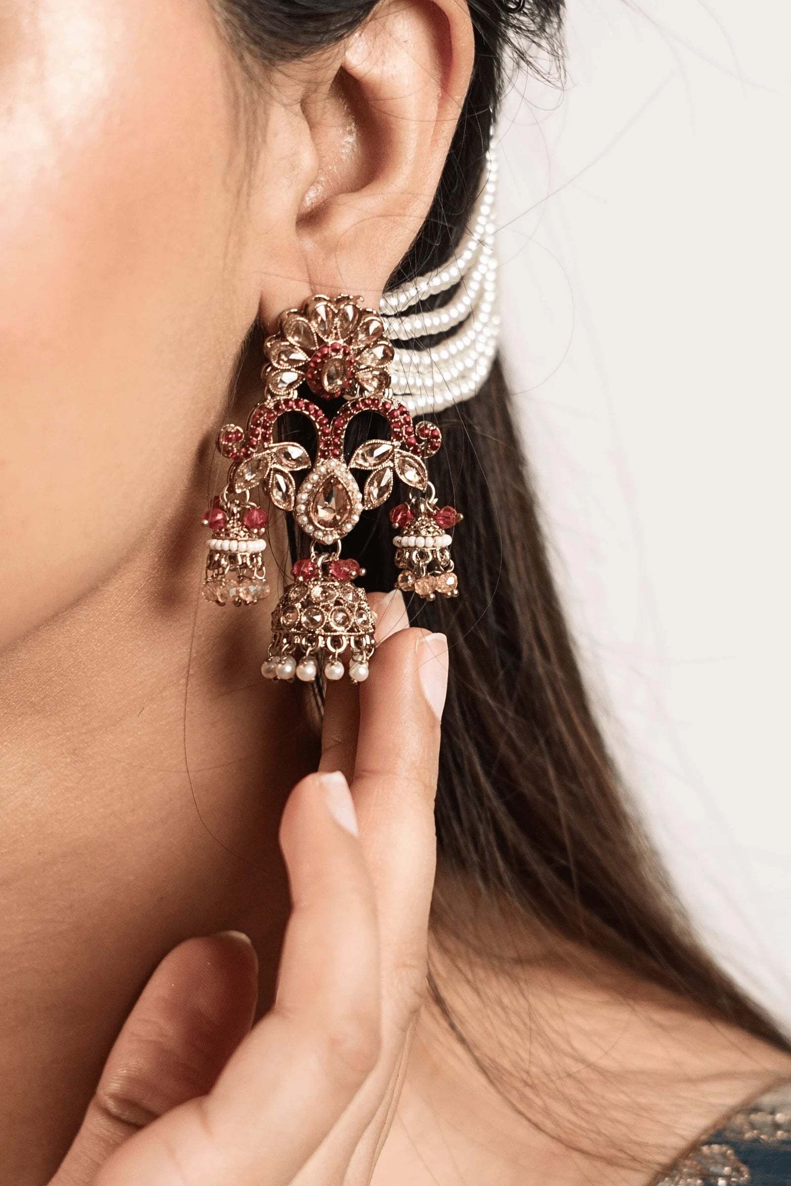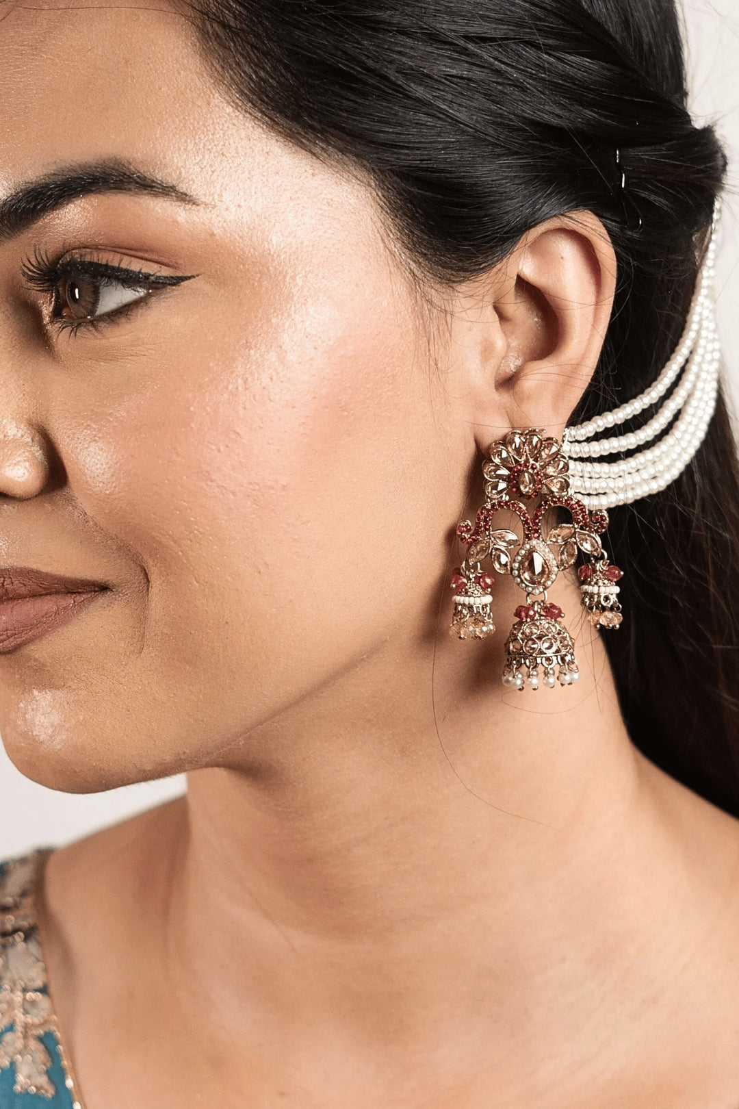 Ruby & Gold Floral Jhumka with Pearls Kaanchain