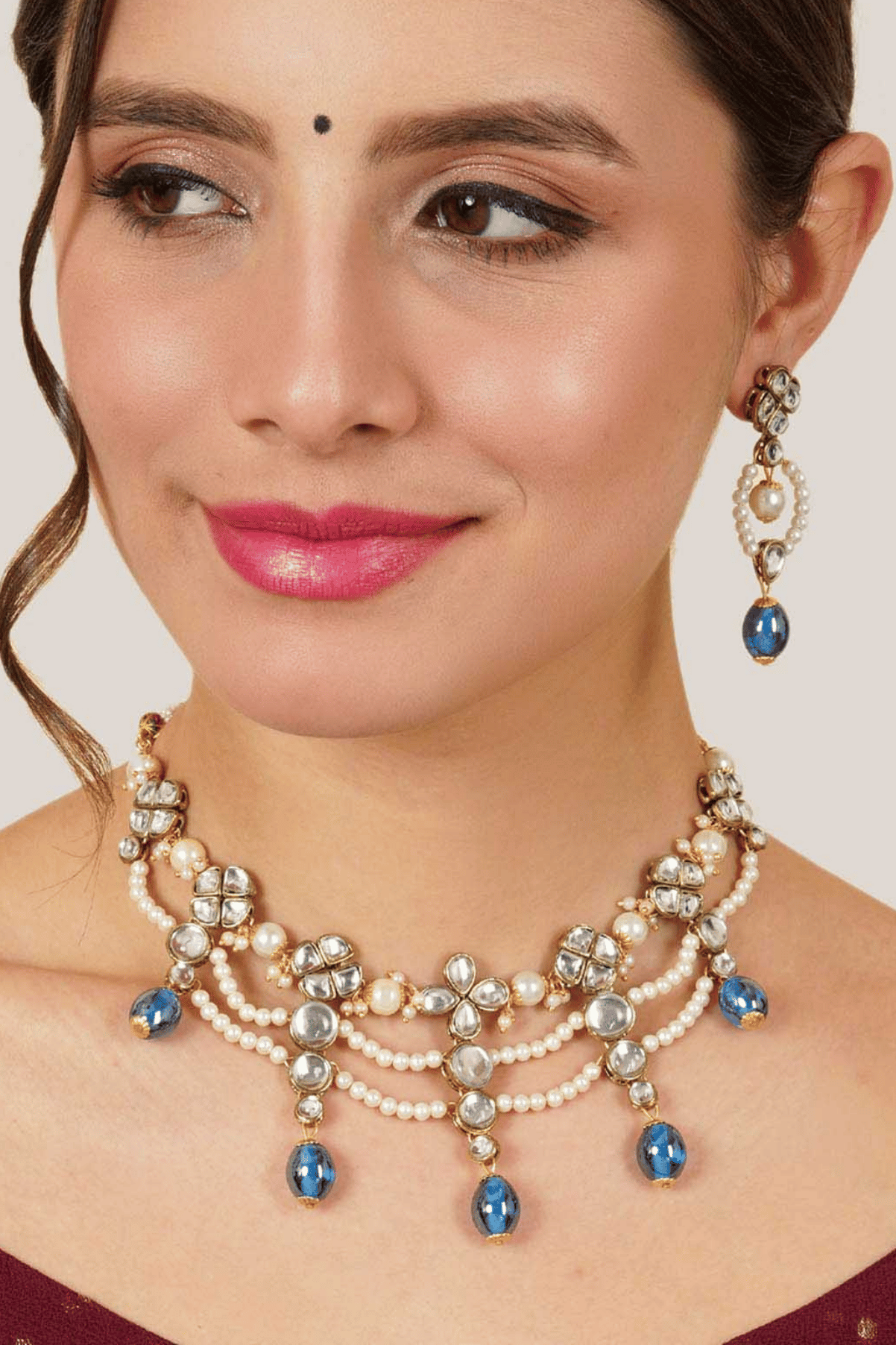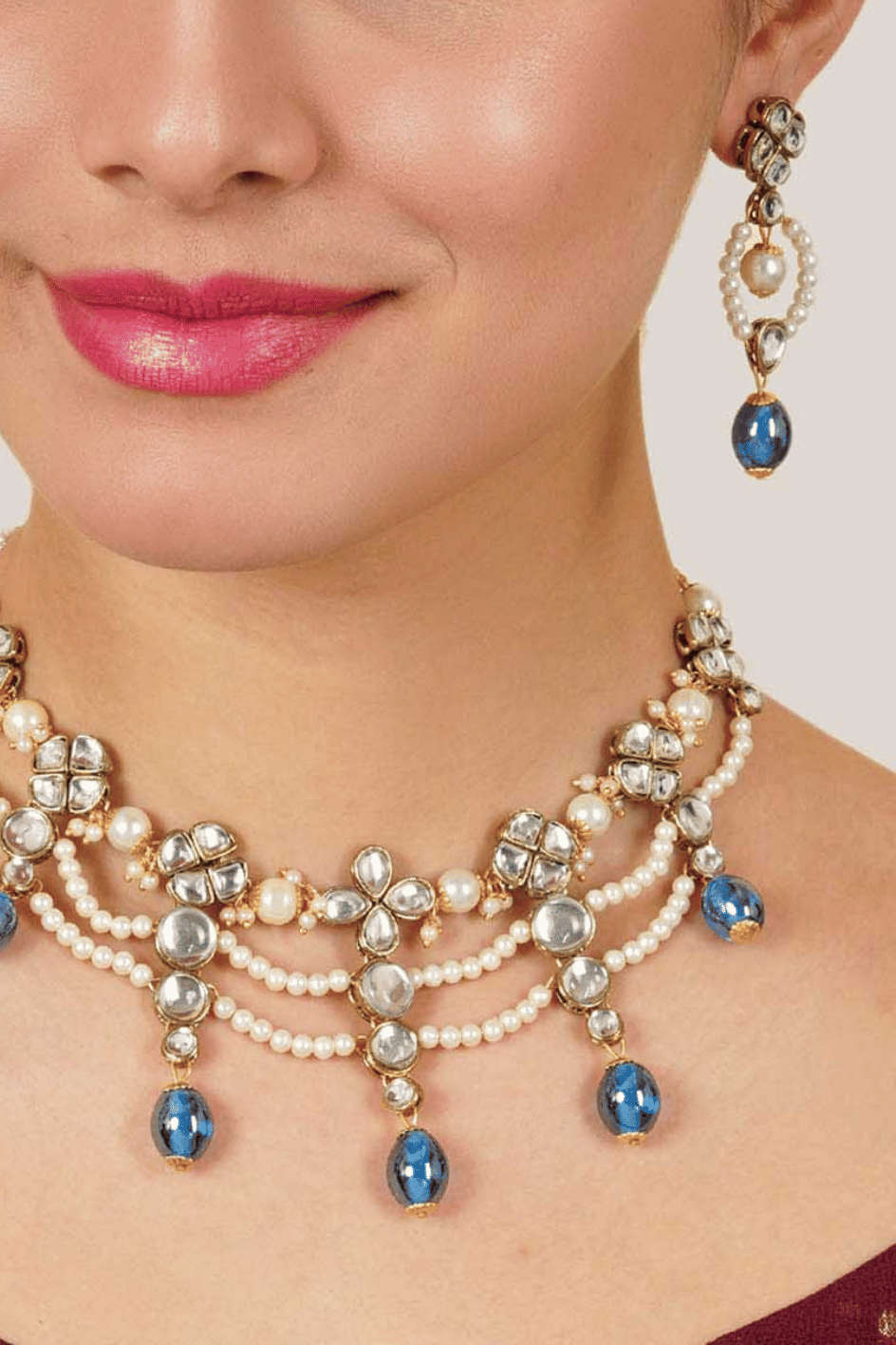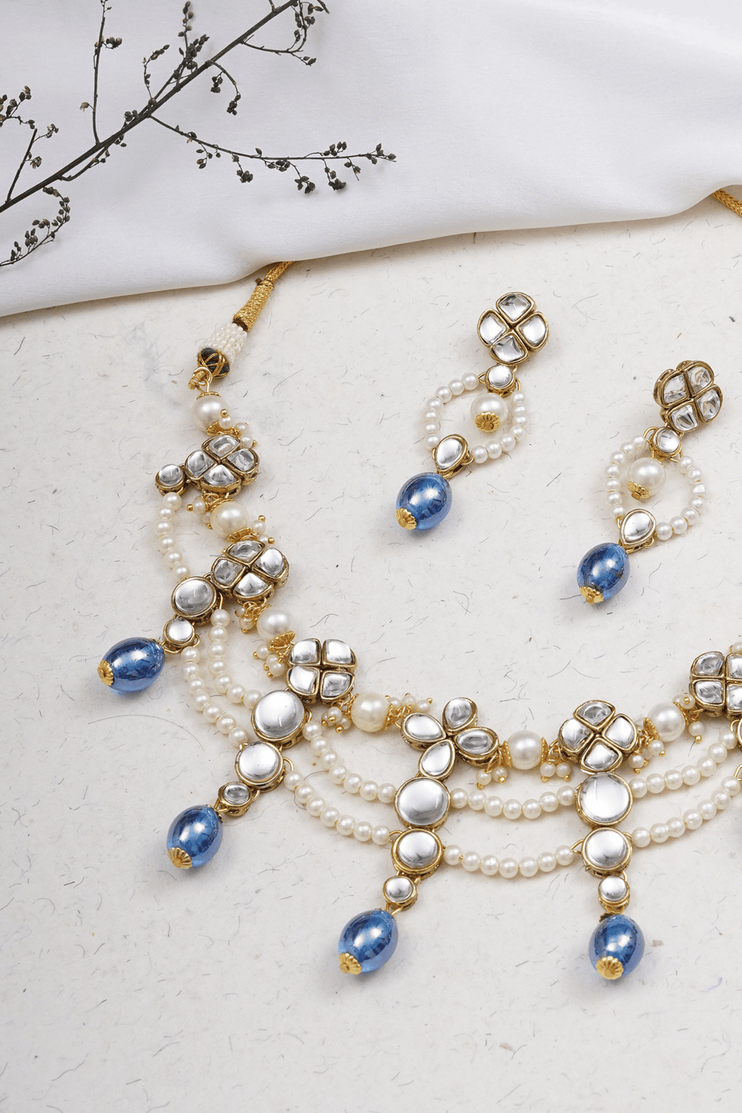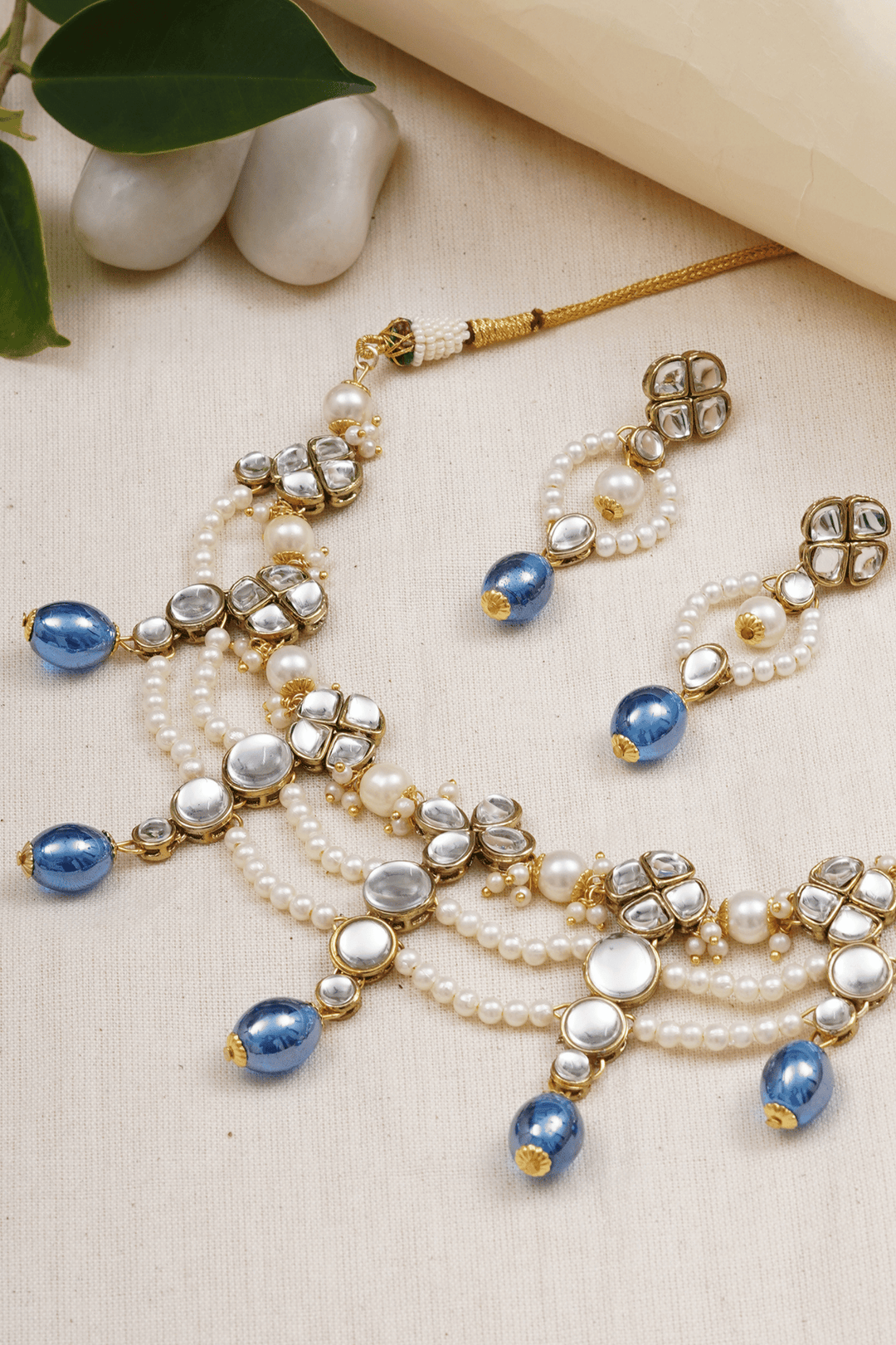 Sky Serenity Semi Precious Beads & Kundan Necklace set