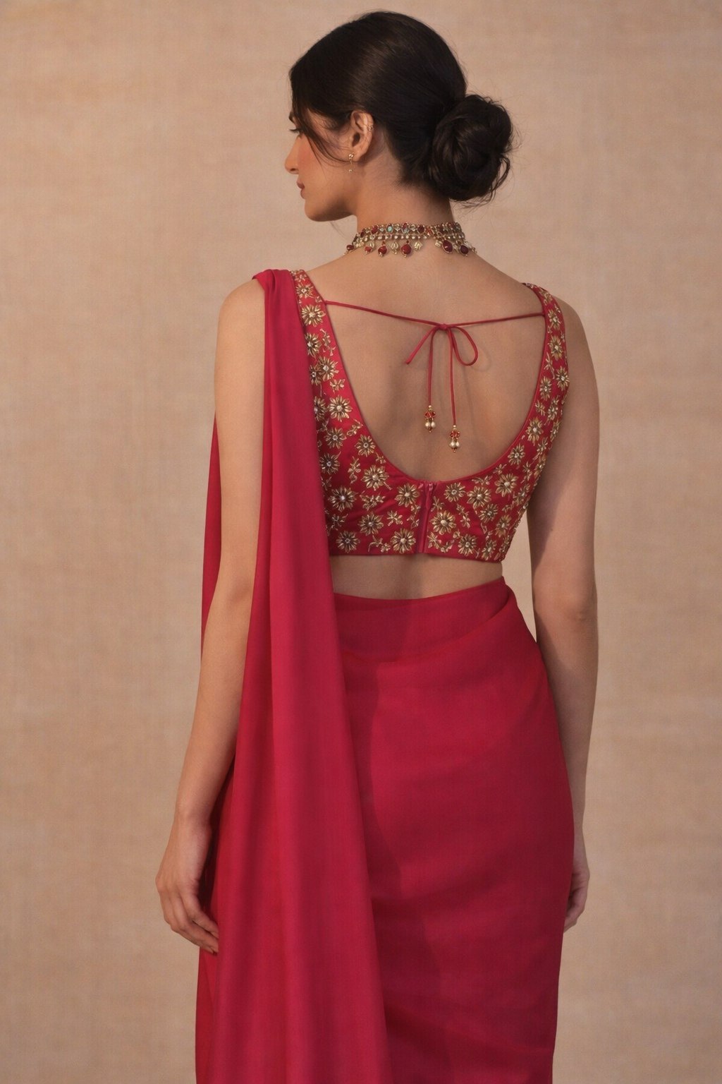 Step into the spotlight with Glam Rose, a stunning pre-stitched chiffon saree designed for effortless glamour and festive elegance. Crafted from soft, lightweight chiffon, this saree drapes fluidly, creating a graceful, flowy silhouette that moves beautifully with every step.