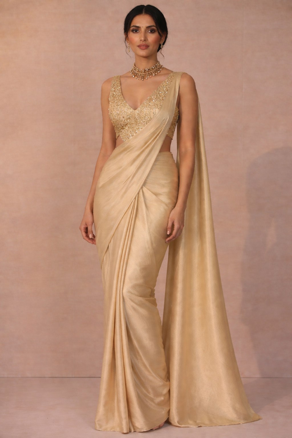 "Step into effortless sophistication with our Beige Chiffon Saree. Known for its ethereal translucency and buttery-soft drape, this saree is designed for the woman who loves 'quiet luxury.' Whether you're walking across a graduation stage or attending a summer garden wedding, this saree ensures a slim, flattering silhouette.