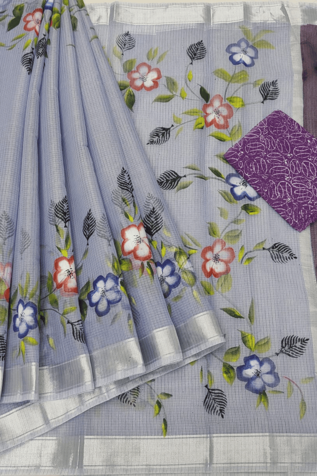Glamwiz Cotton Brush Painted Kota Doria Saree