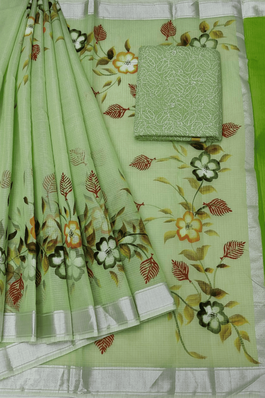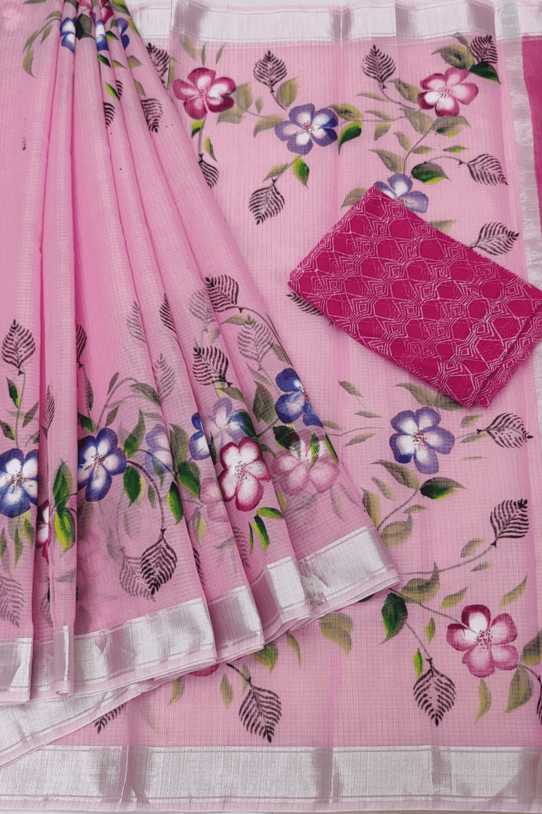 Product Information: Introducing Glamwiz Cotton Brush Painted Kota Doria Saree, a captivating collection of Kota Cotton Sarees with Contrast Blouse. Each saree is a masterpiece of artistry, featuring intricate embroidery that adds a touch of elegance and sophistication.