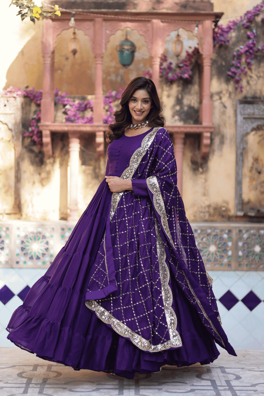 - Fabric: Russian Silk With Sequins Embroidered Work