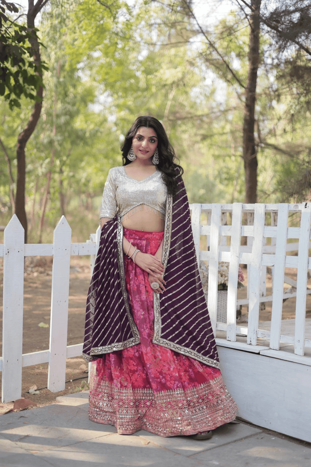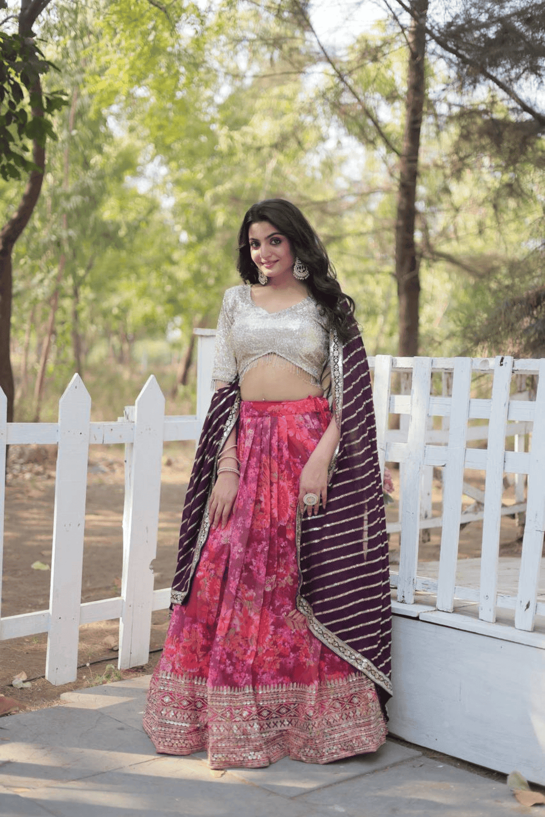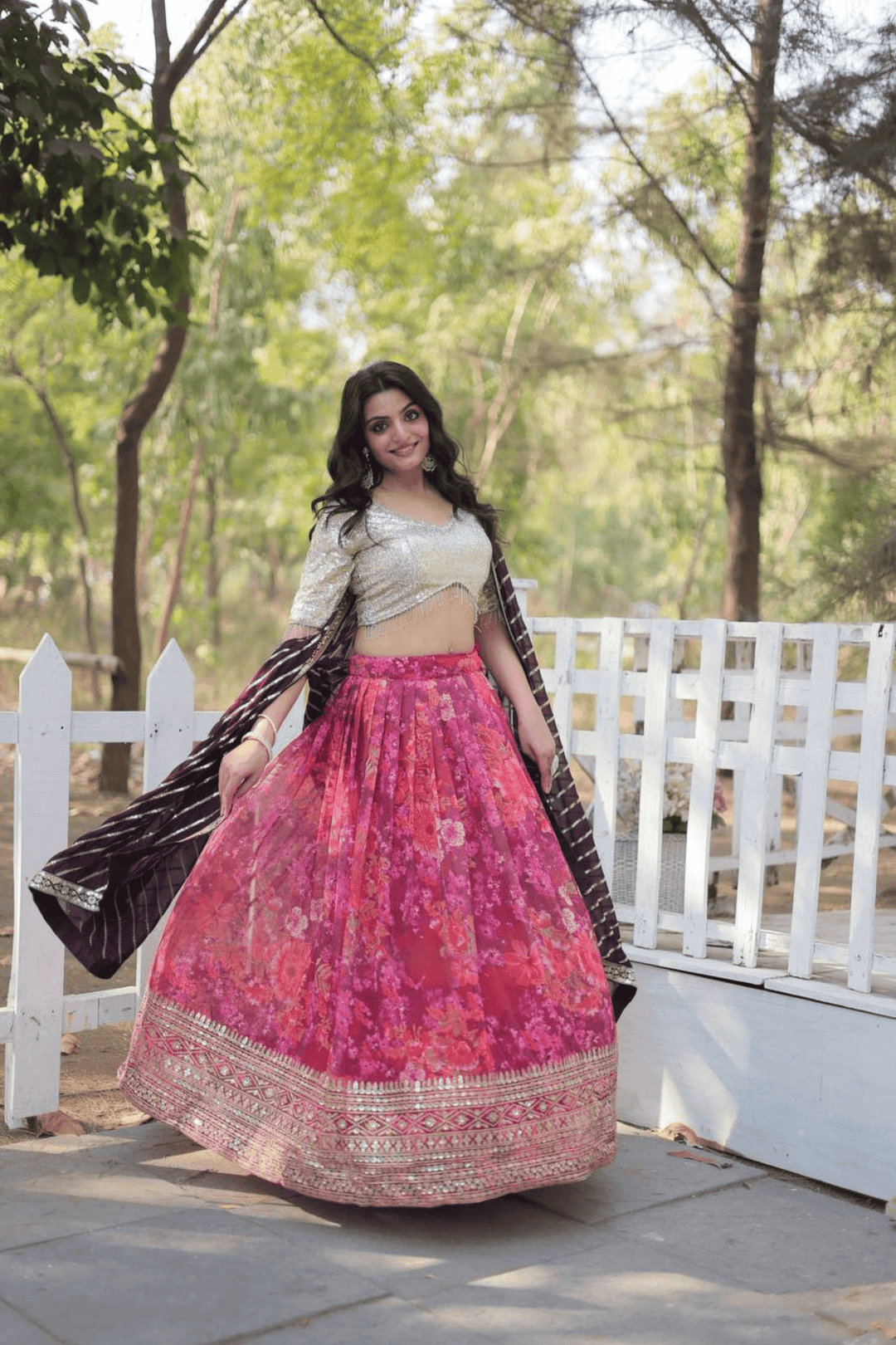 Introducing Glamwiz Scarlet Bloom Floral Printed Lehenga Set, embellished with sequins and thread embroidery. This exquisite ensemble is ideal for wedding occasions or for bridesmaid.