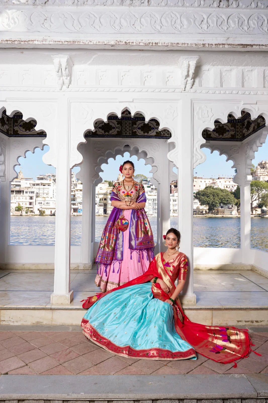 Introducing Glamwiz Paithani Silk lehenga set, with exquisite floral weaving in regional weave of Maharashtra. This exquisite ensemble is ideal for wedding occasions or for bridesmaid.