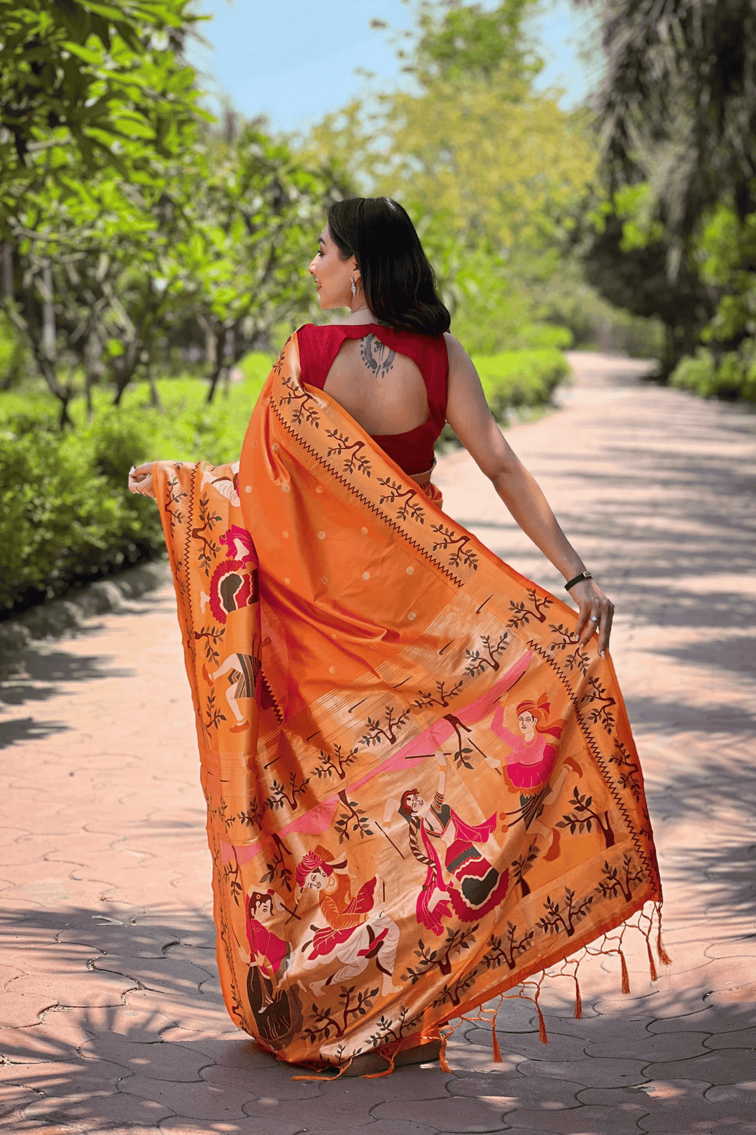 Length:- 5.5 meters & 0.8 Unstitched self fabric Blouse to style the blouse as you please!