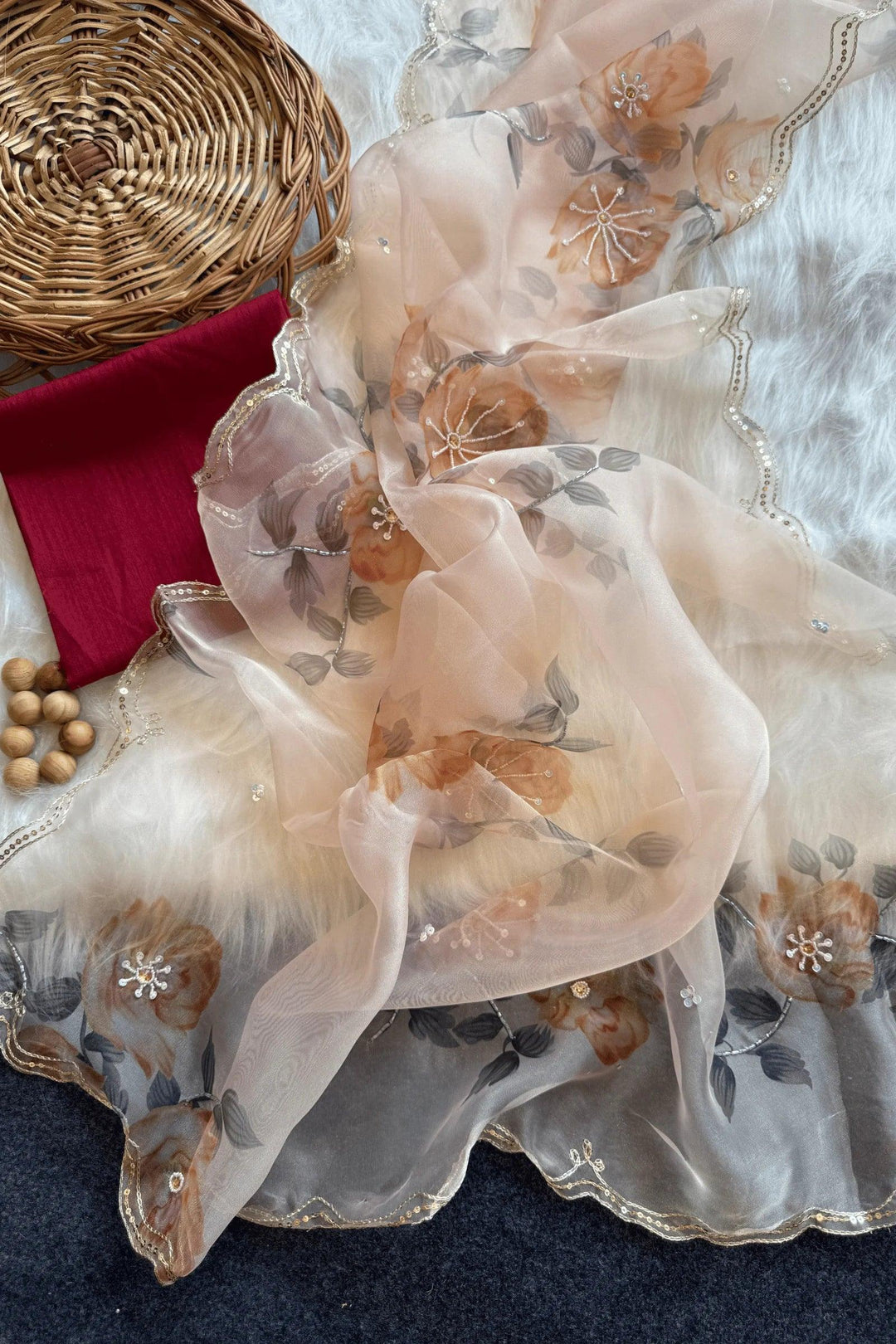 Fleur Dusk | Ready-to-Wear Peach Floral Organza Saree