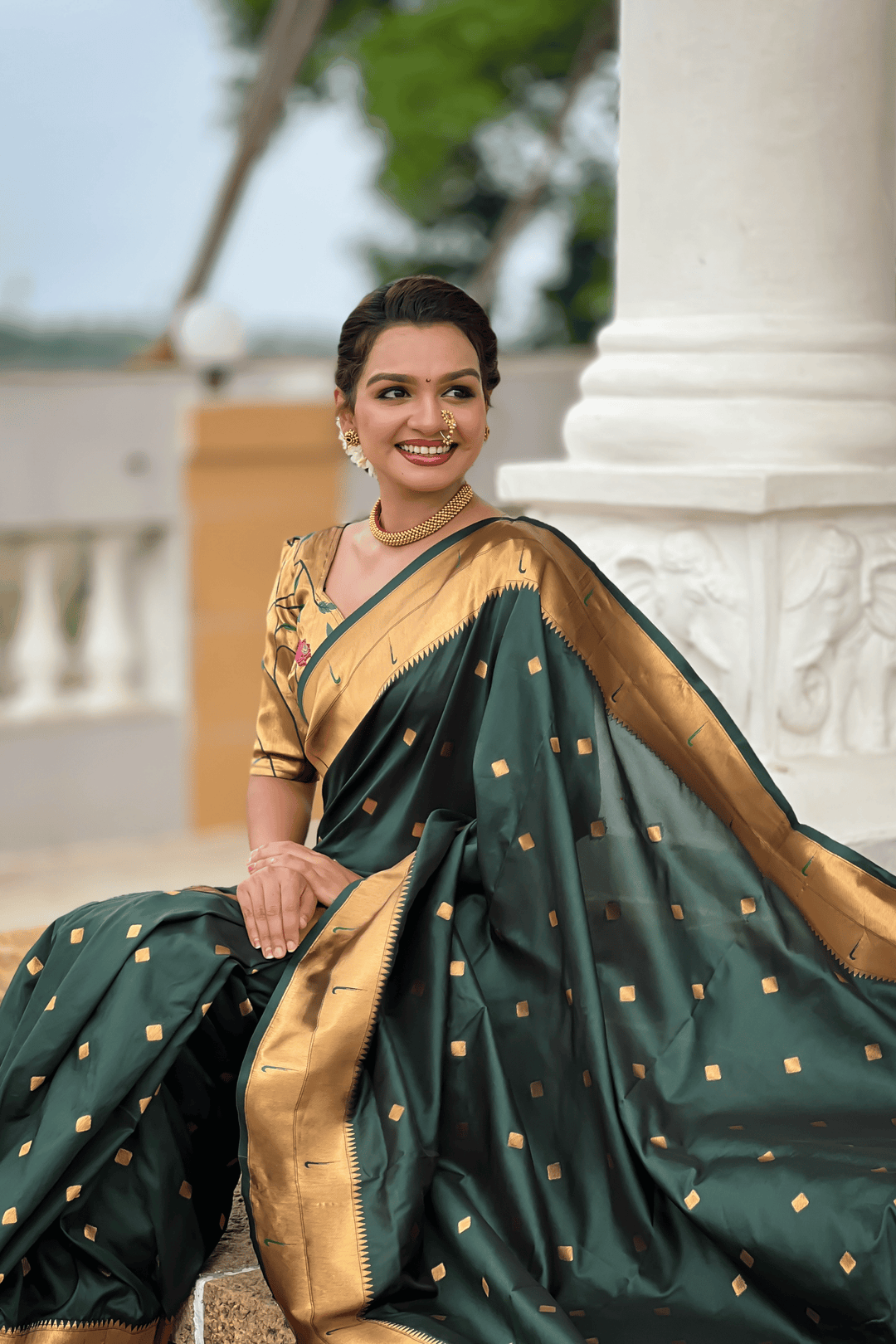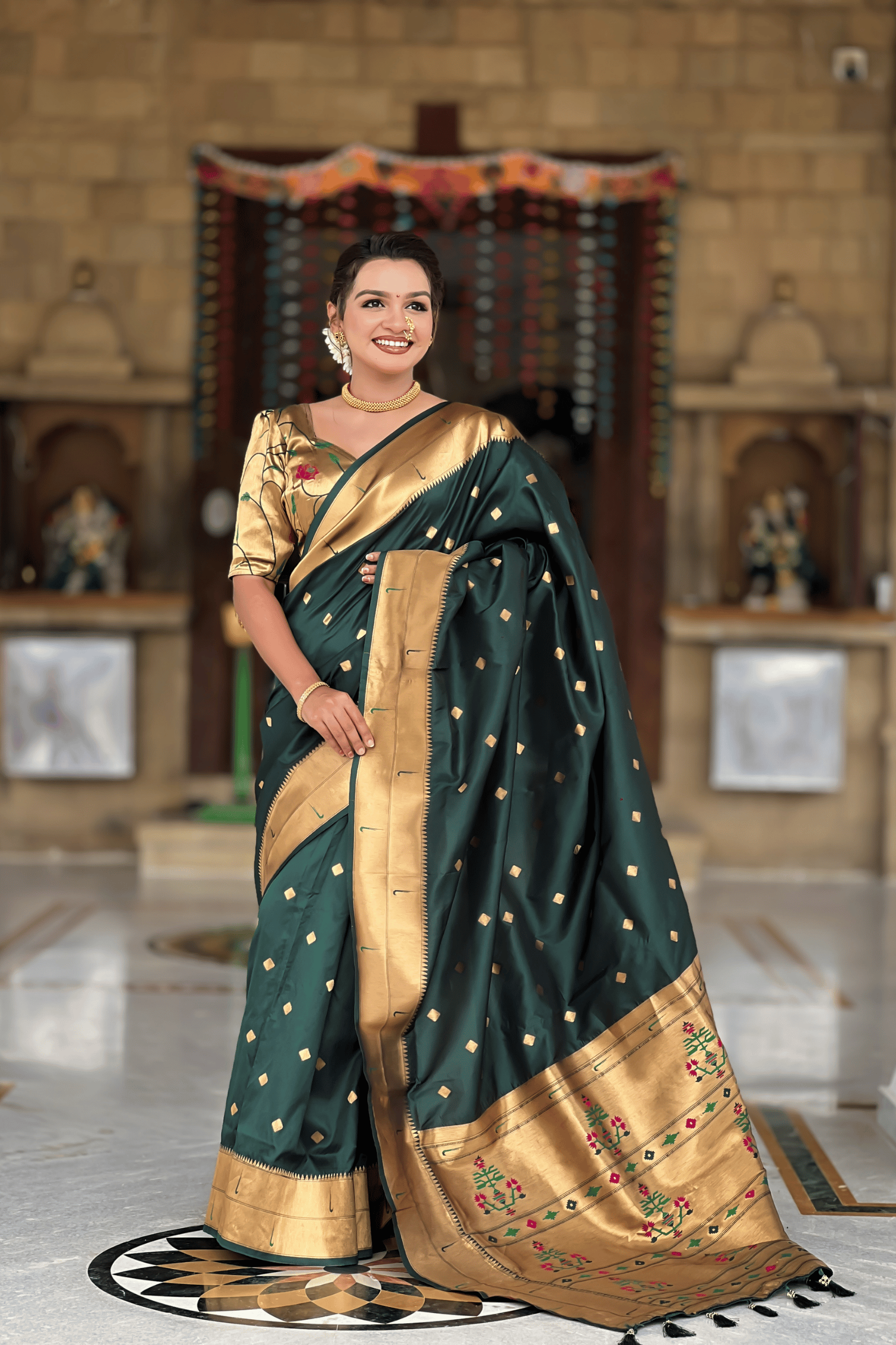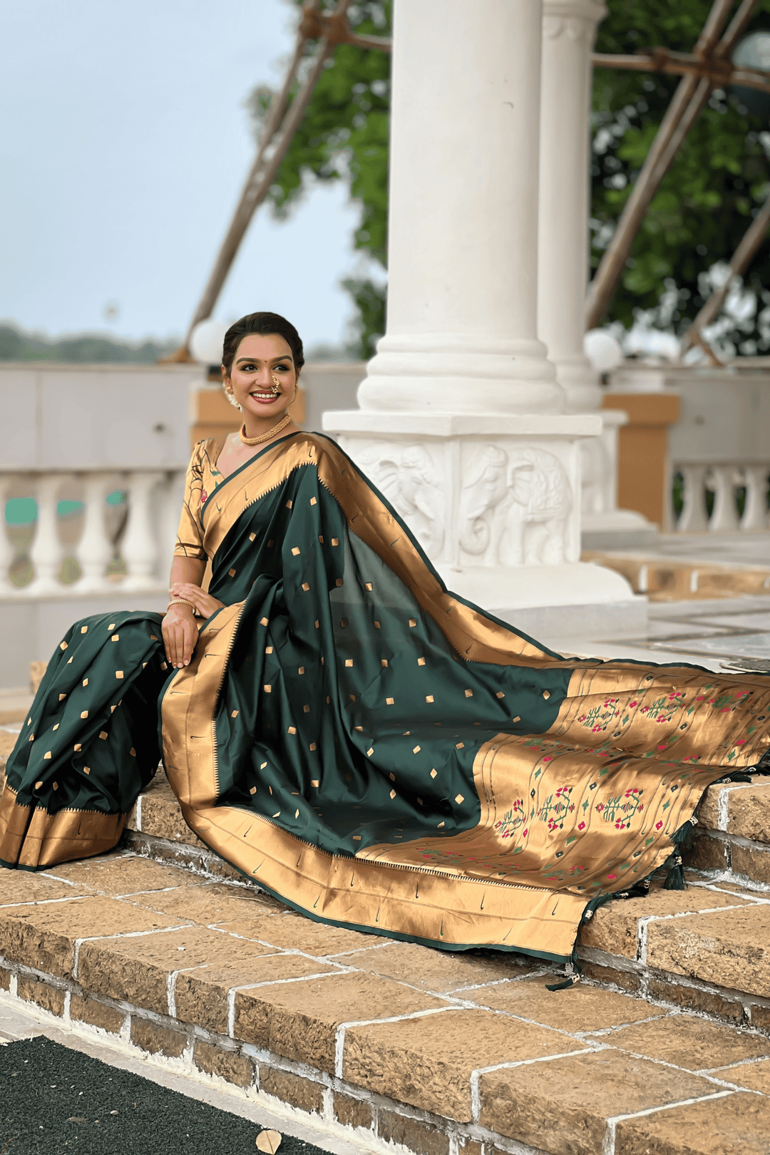 Paithani Reign | Ready to Wear Bottle Green Paithani Silk Saree