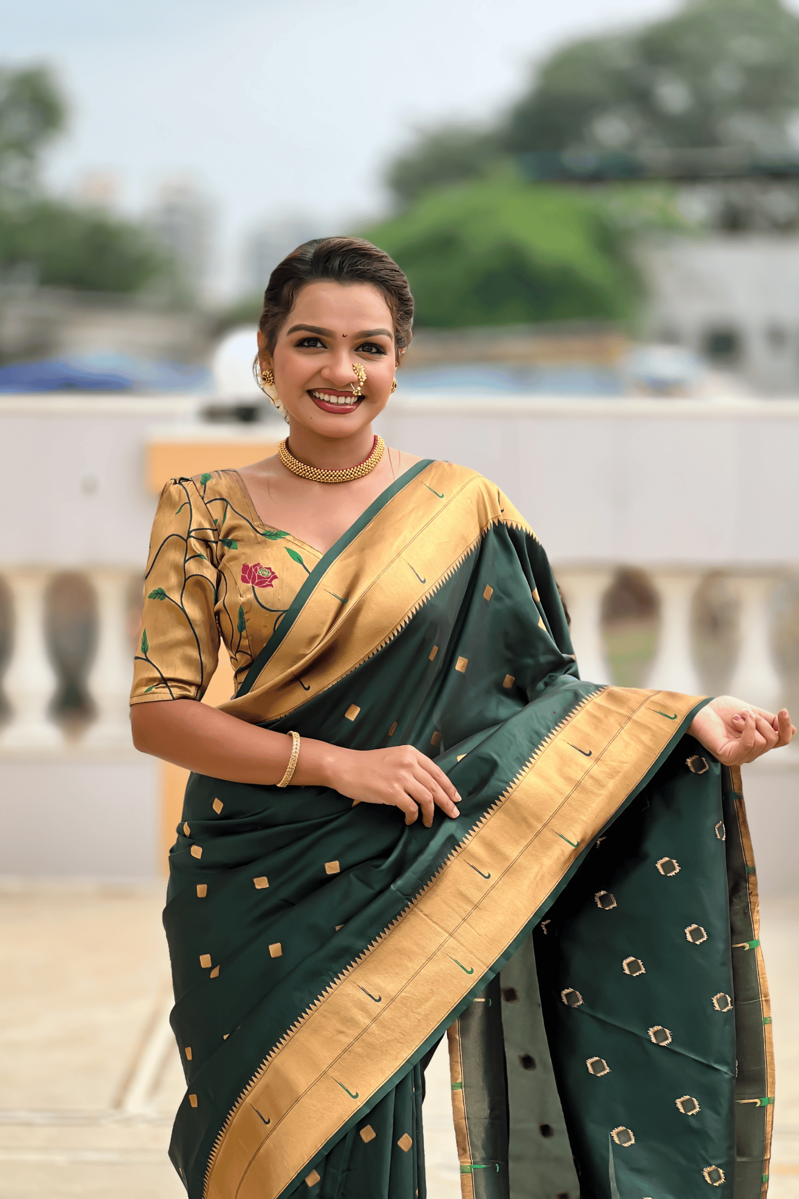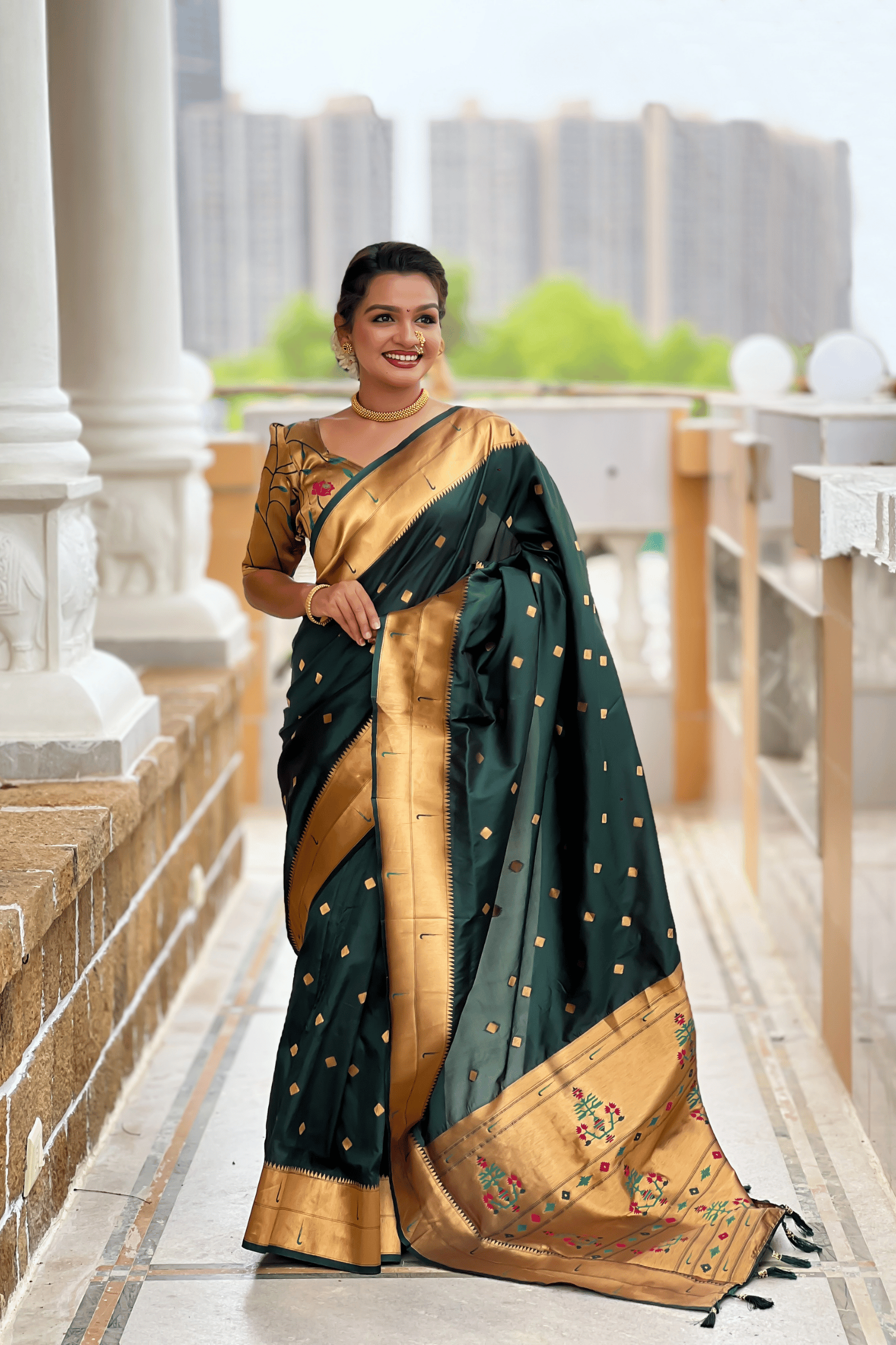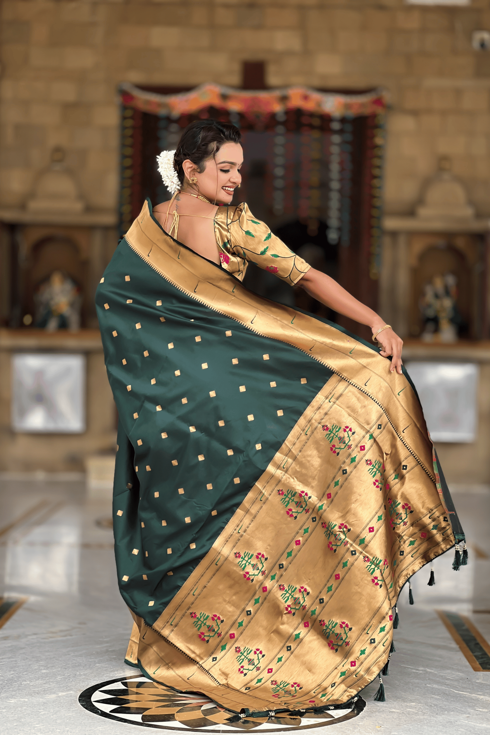 Paithani Reign | Ready to Wear Bottle Green Paithani Silk Saree