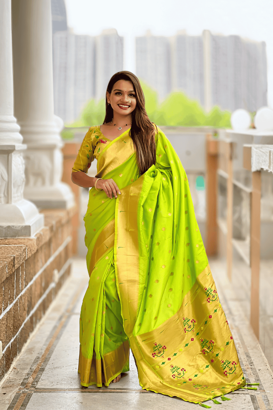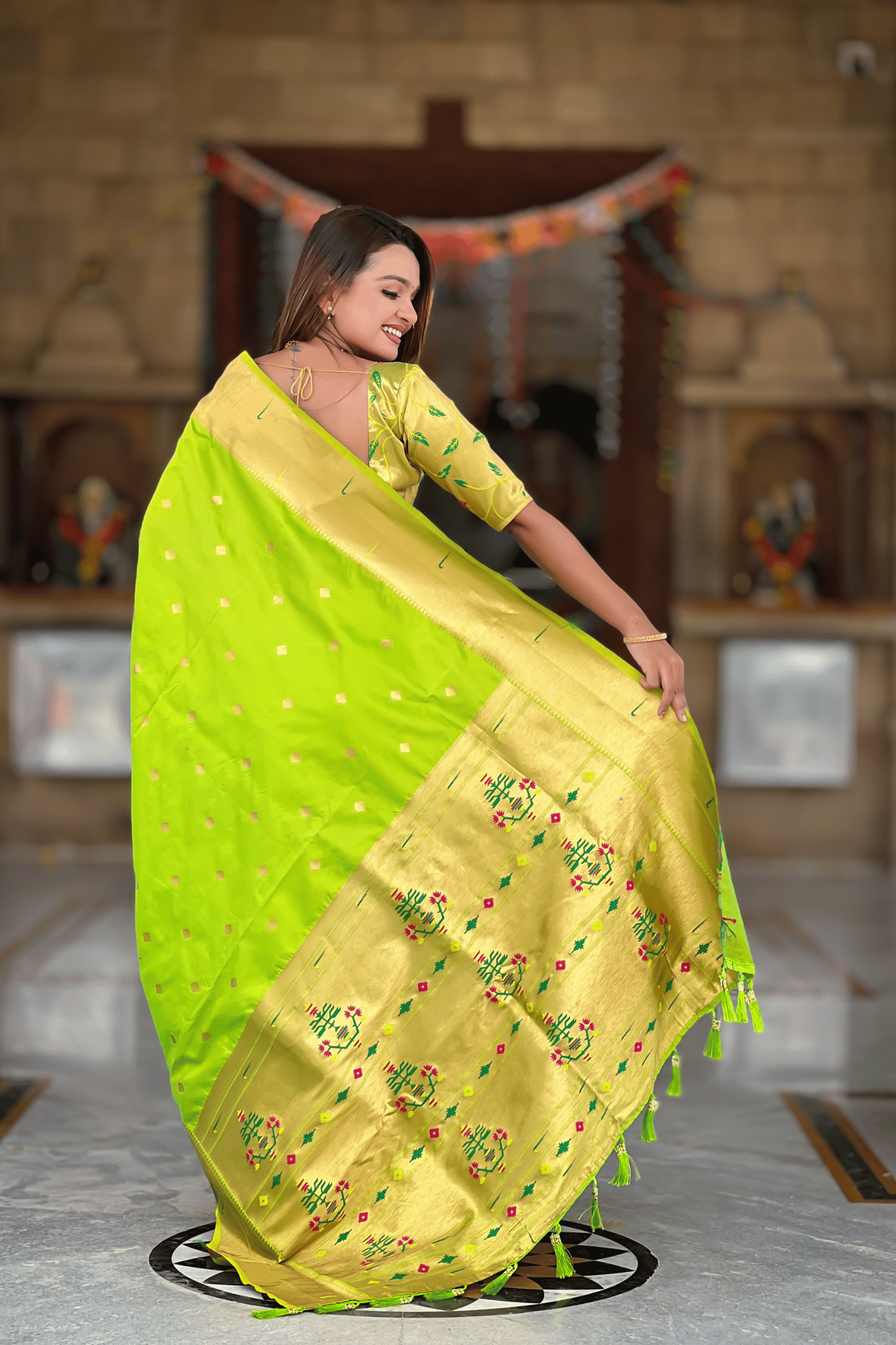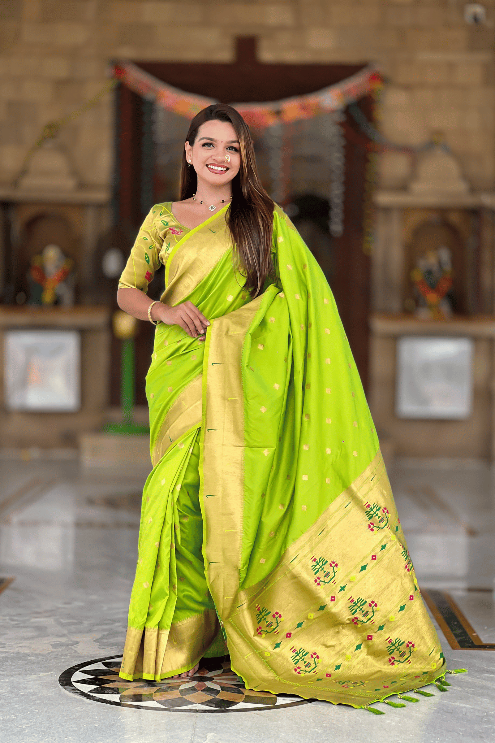 Paithani Reign | Ready to Wear Parrot Green Paithani Silk Saree