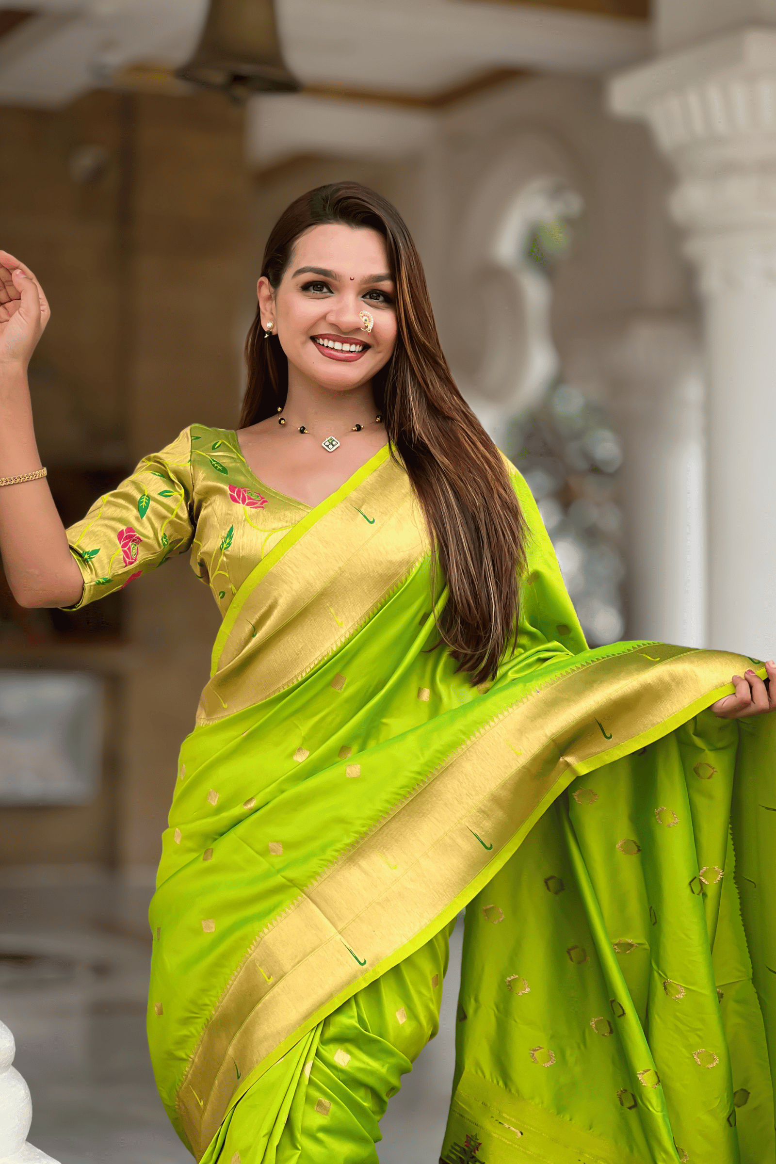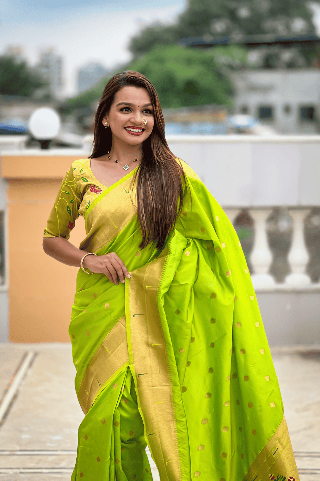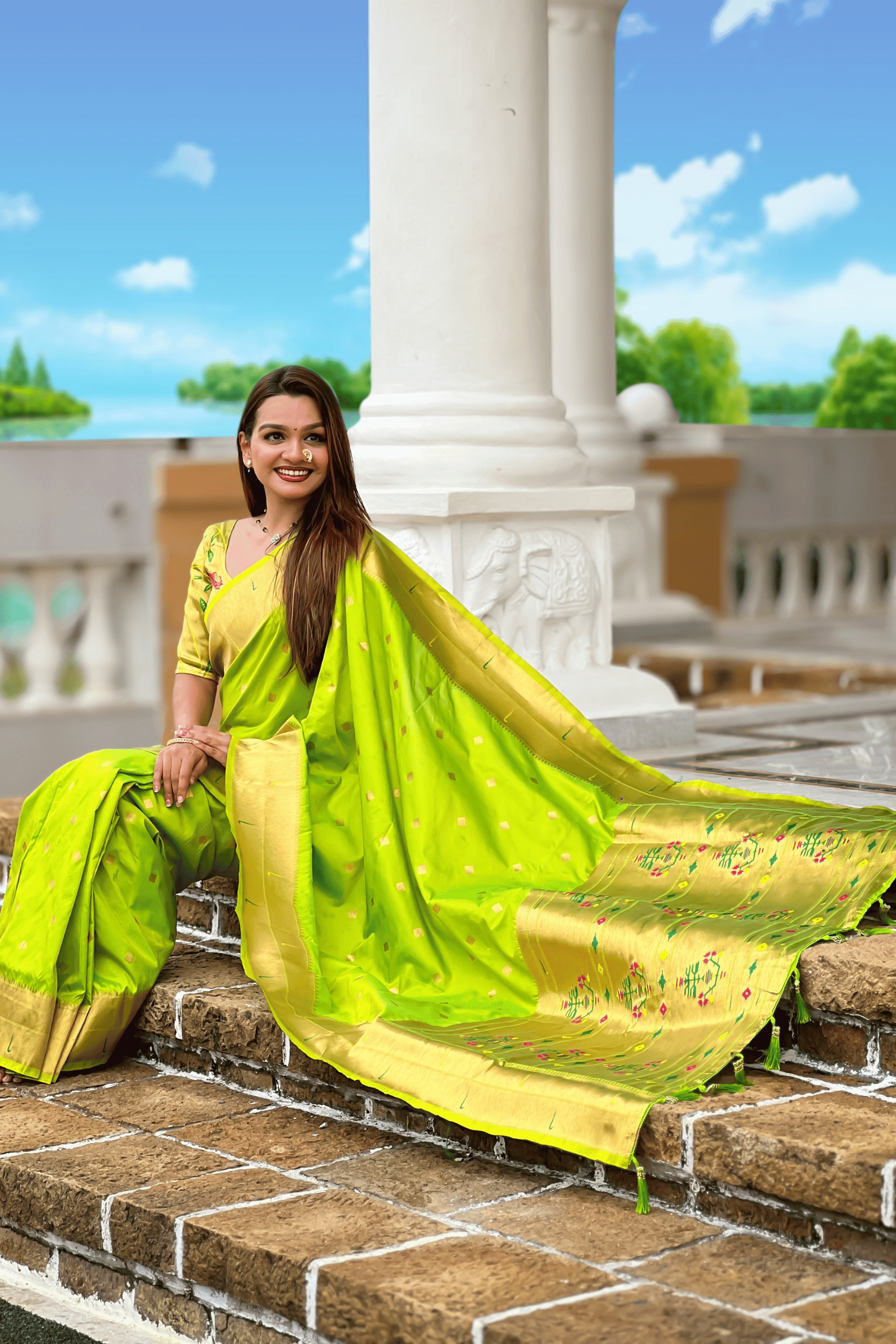 Paithani Reign | Ready to Wear Parrot Green Paithani Silk Saree