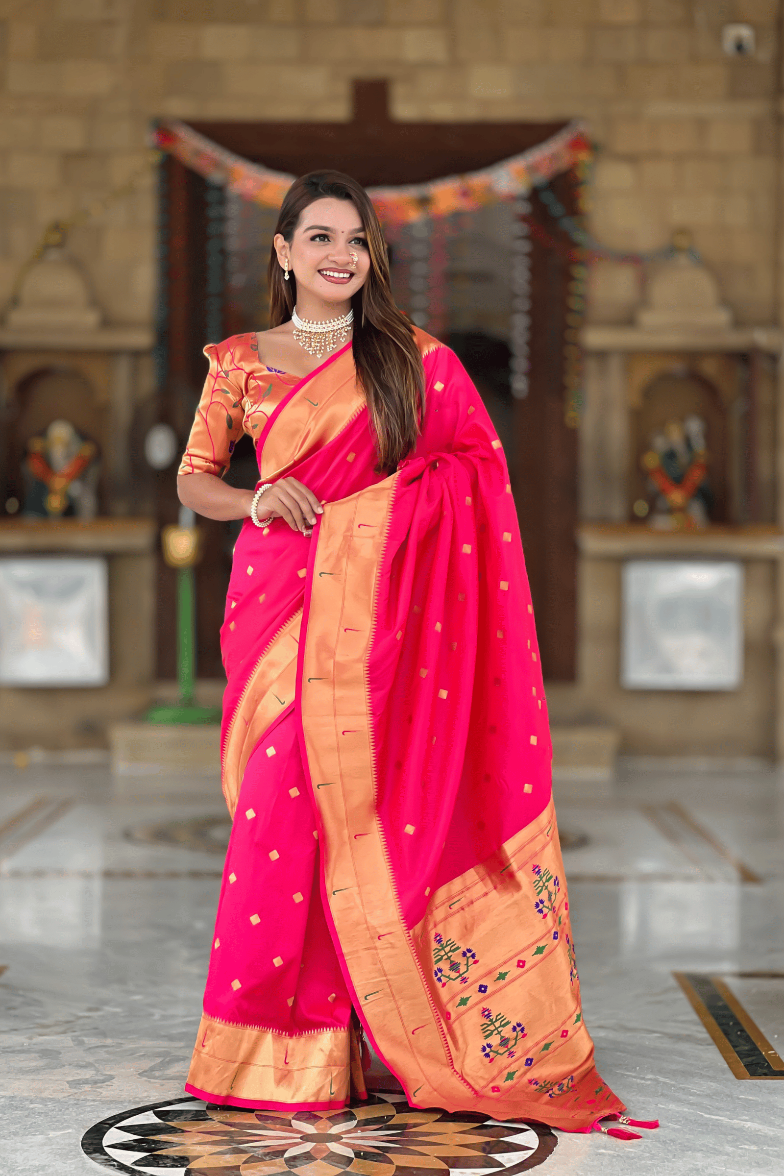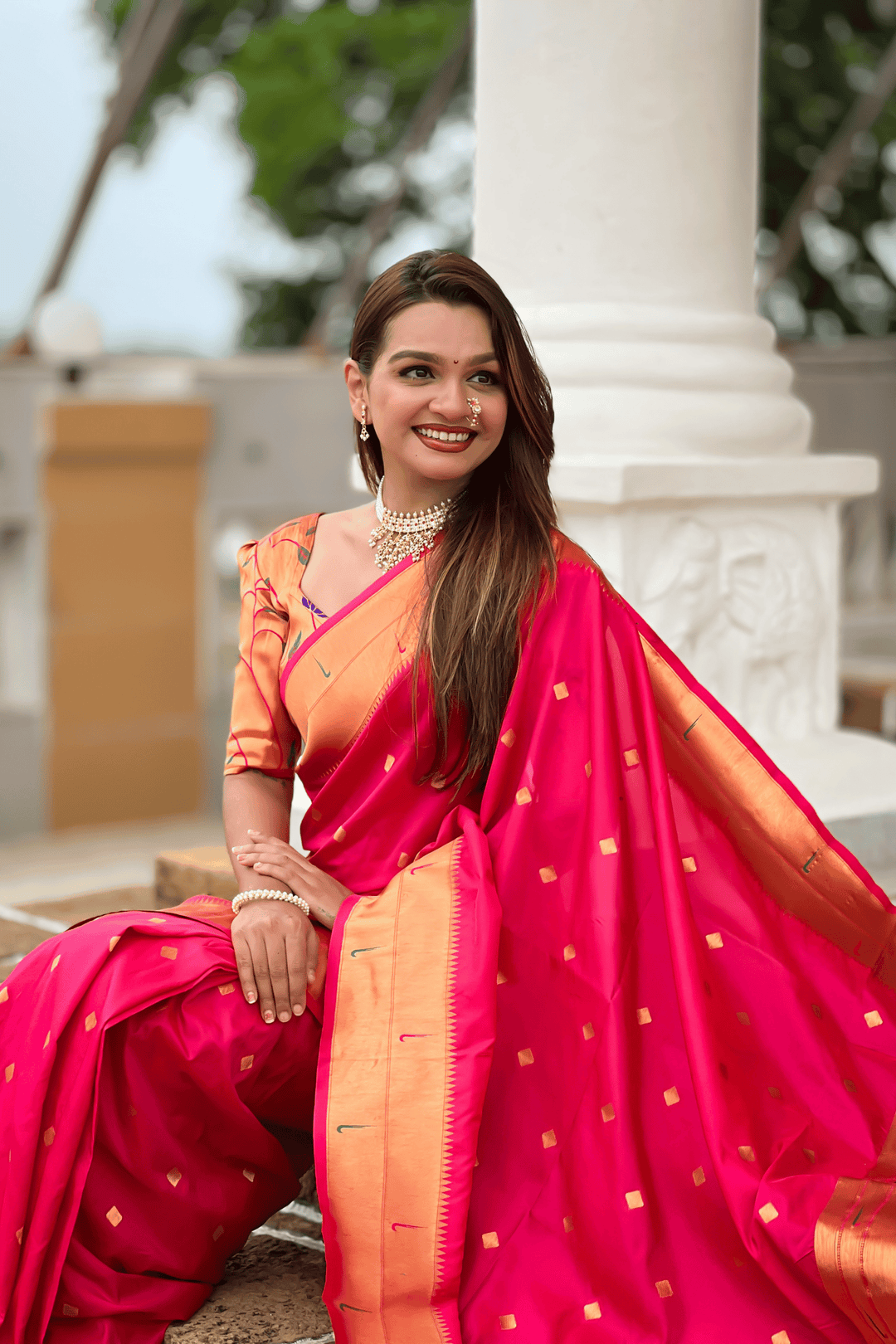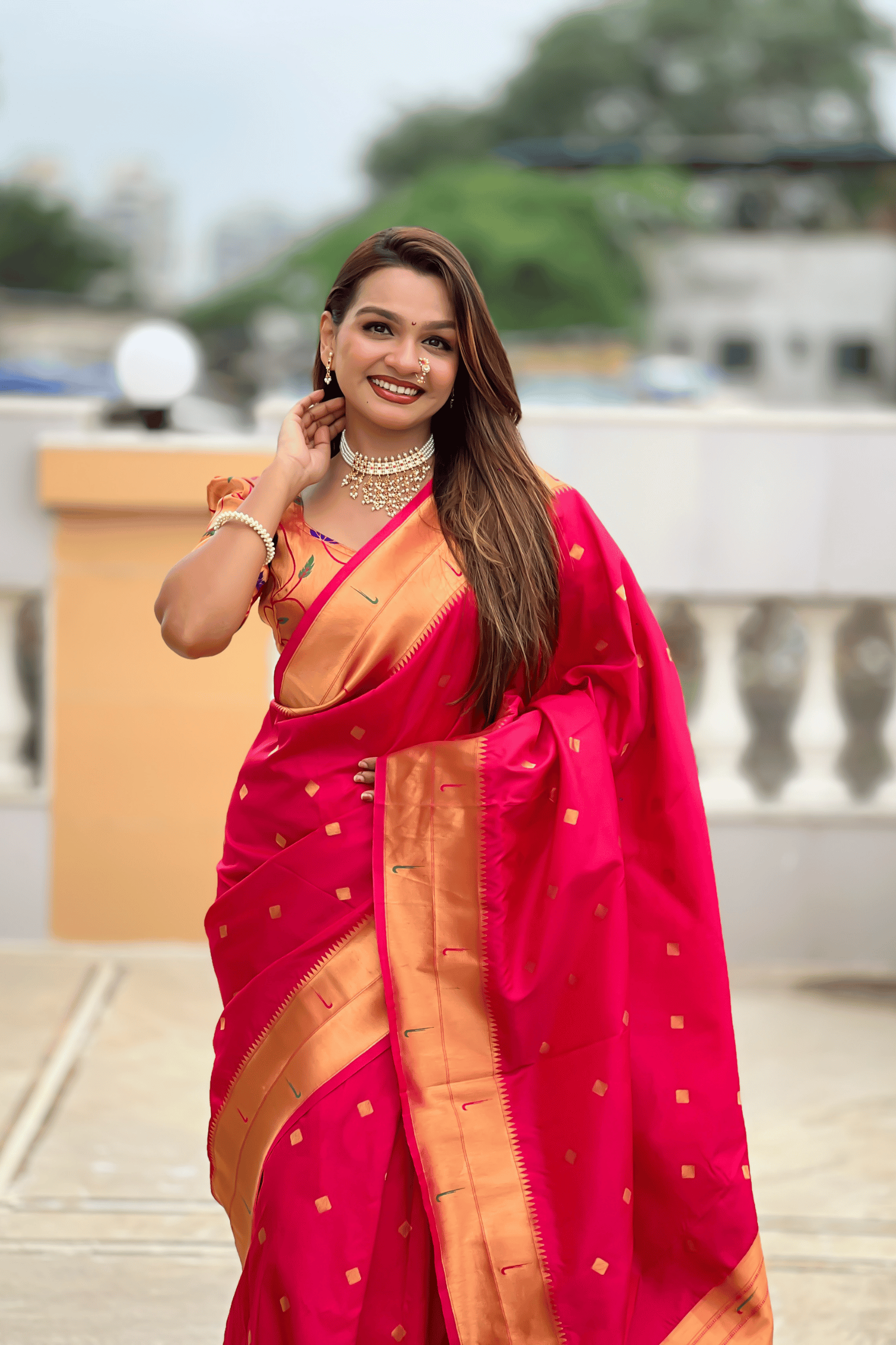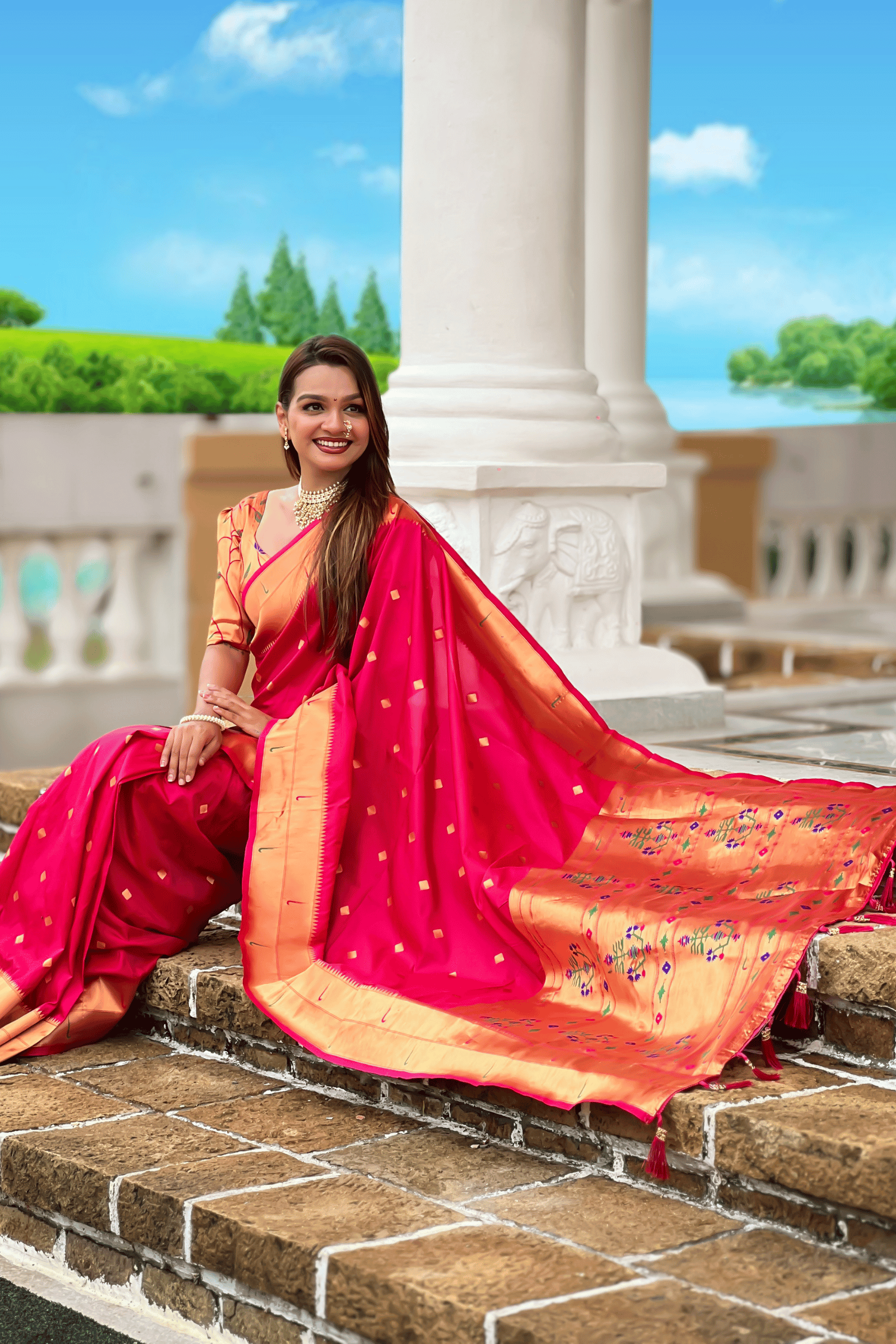 Paithani Reign | Ready to Wear Rani Pink Paithani Silk Saree