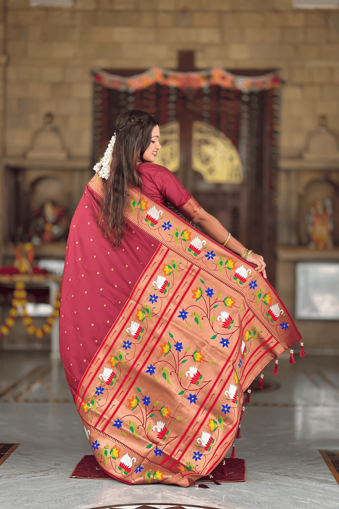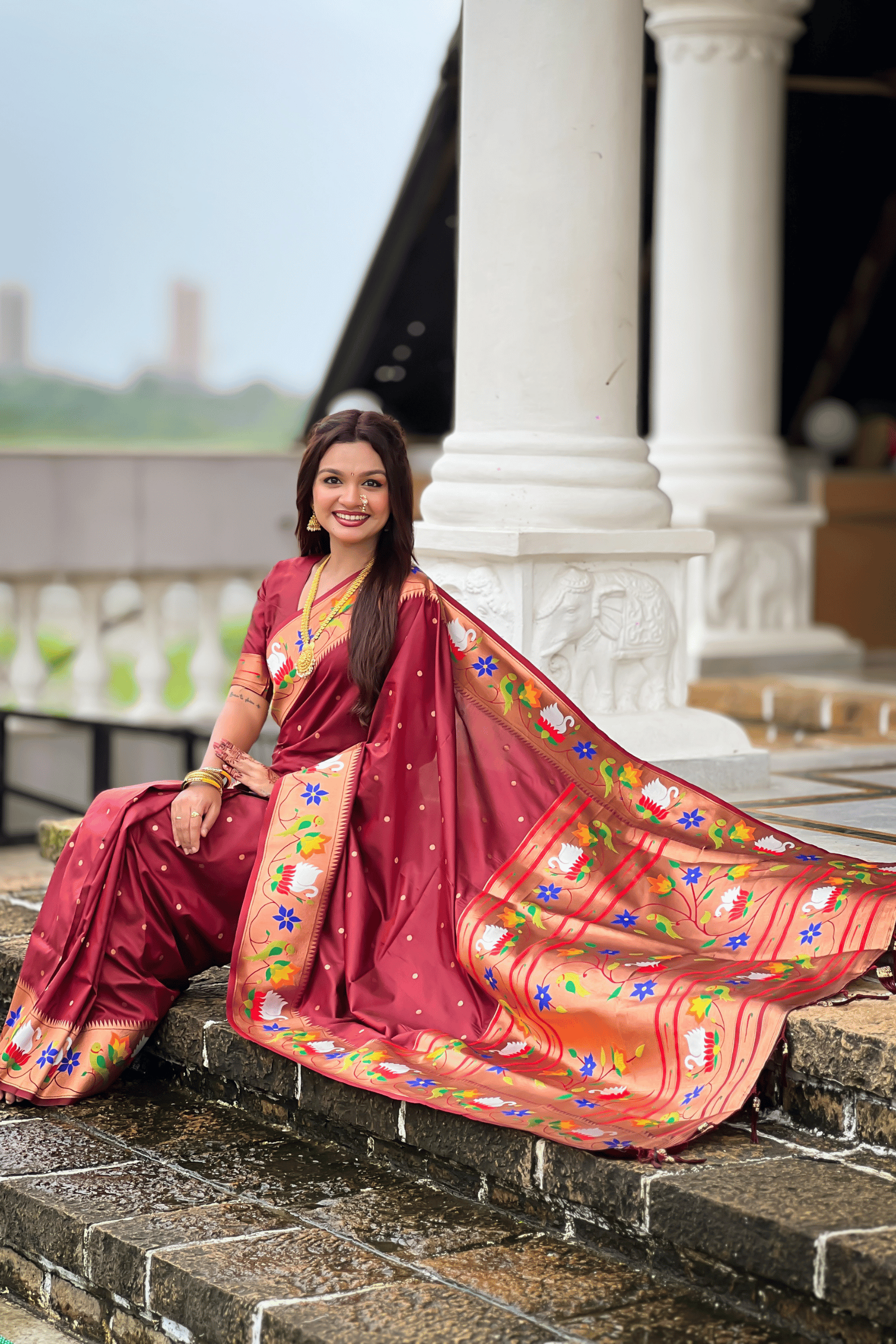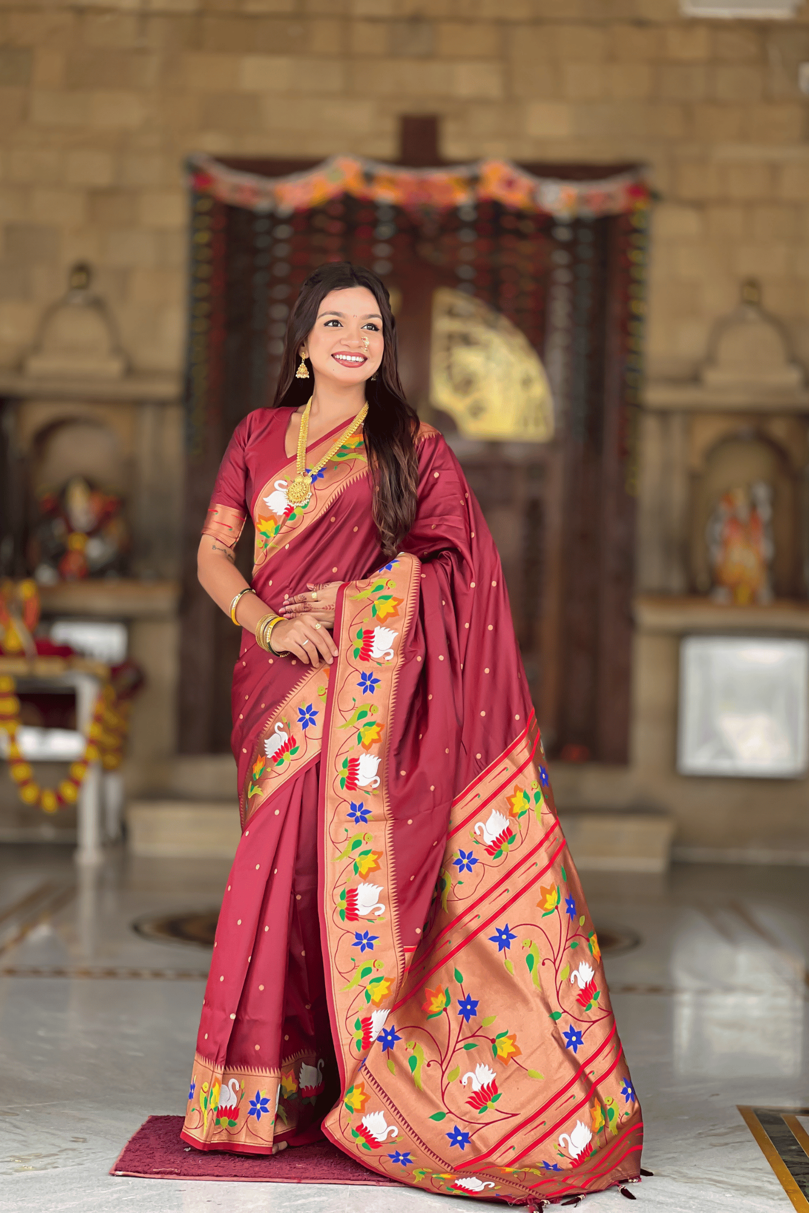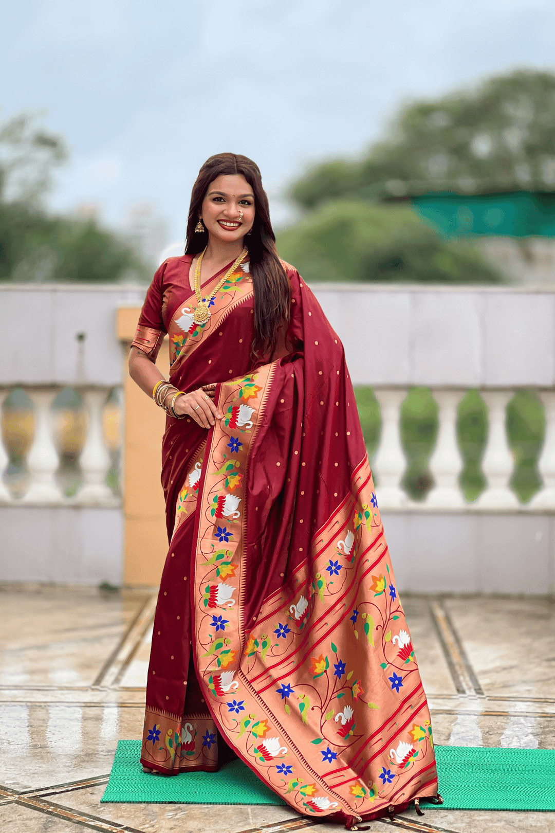 Shahi Paithani | Ready to Wear Maroon Paithani Silk Saree