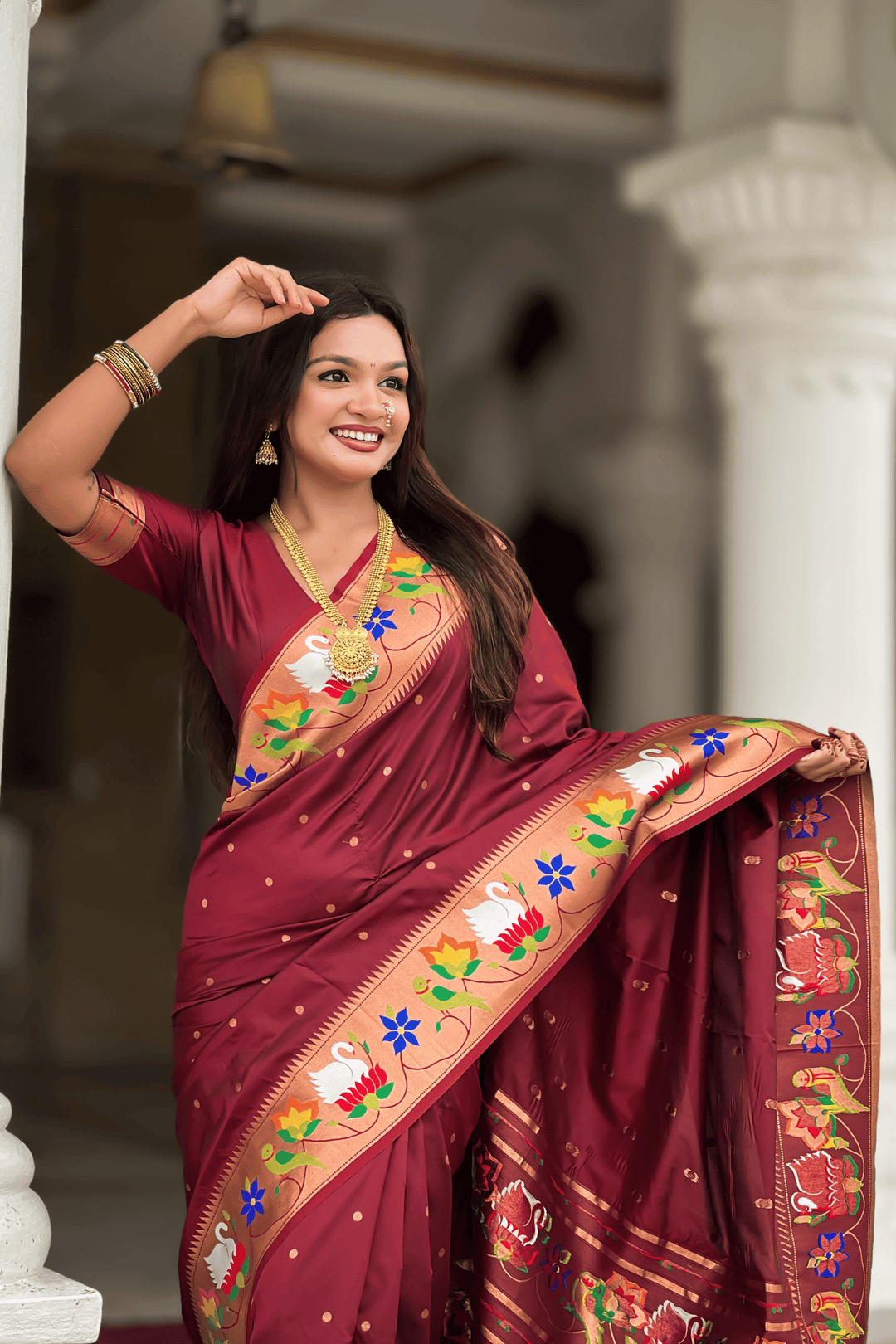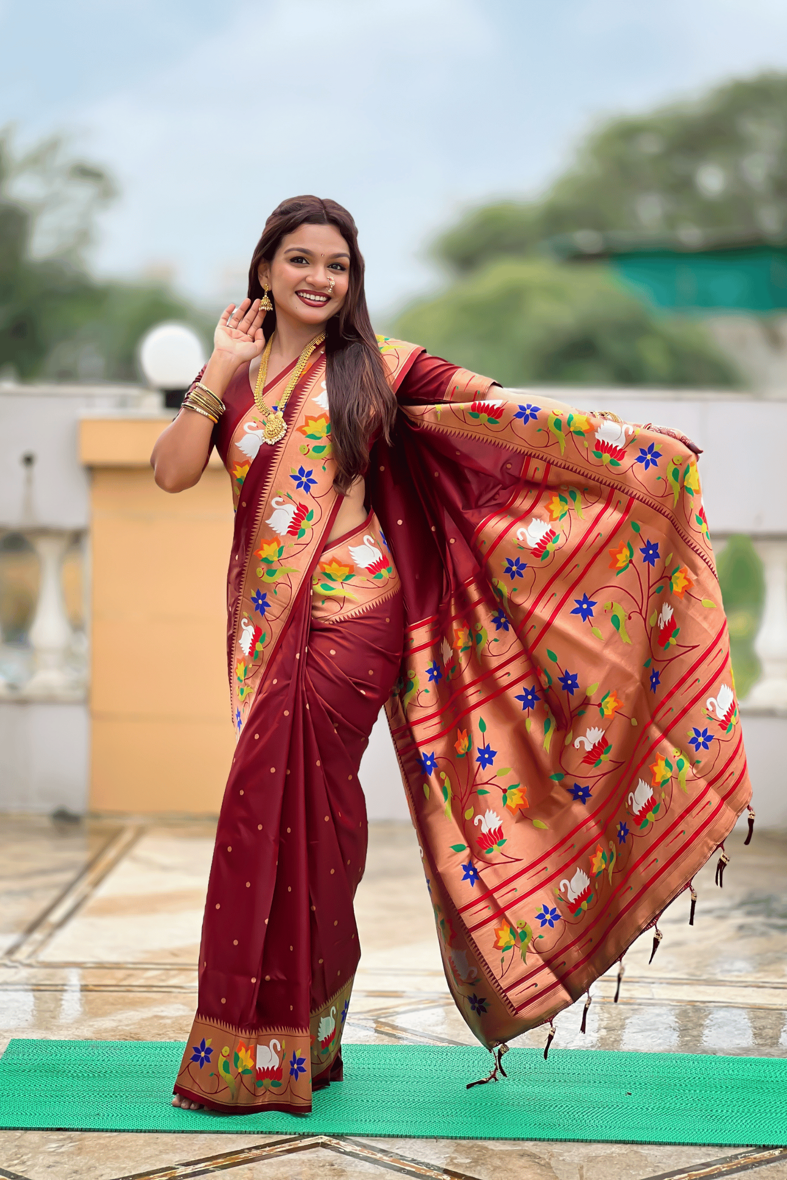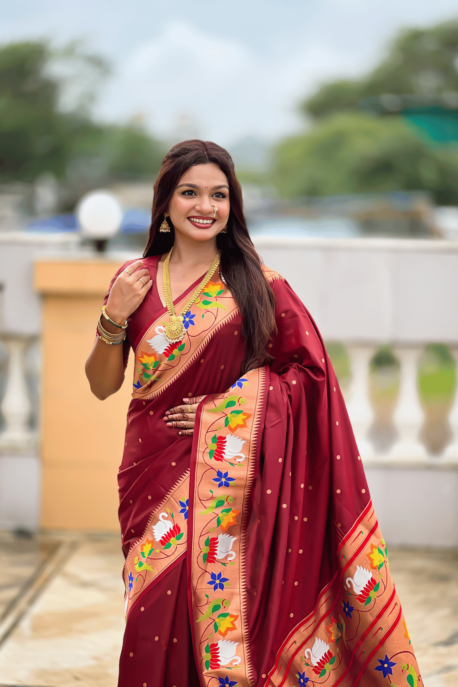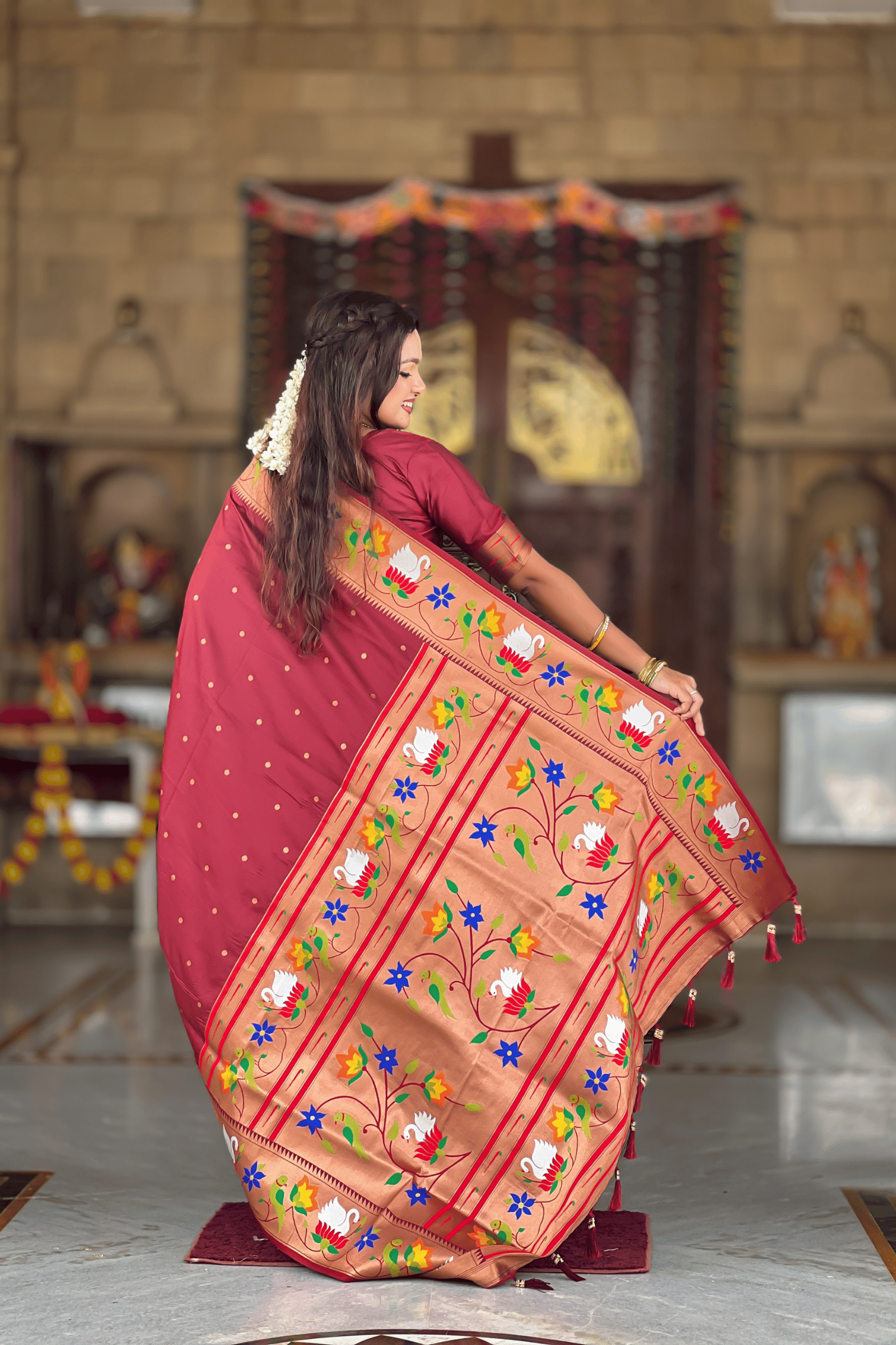 Shahi Paithani | Ready to Wear Maroon Paithani Silk Saree
