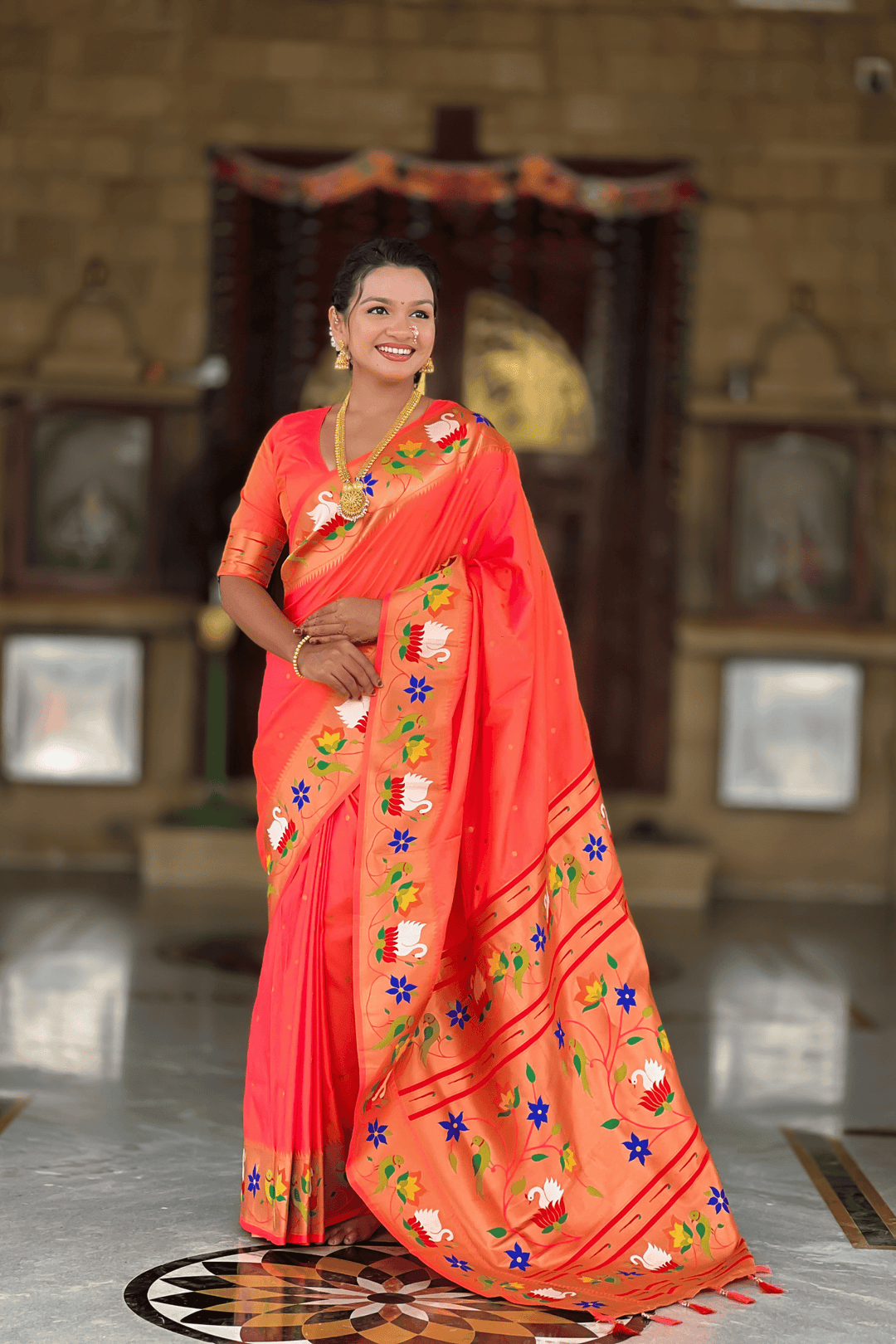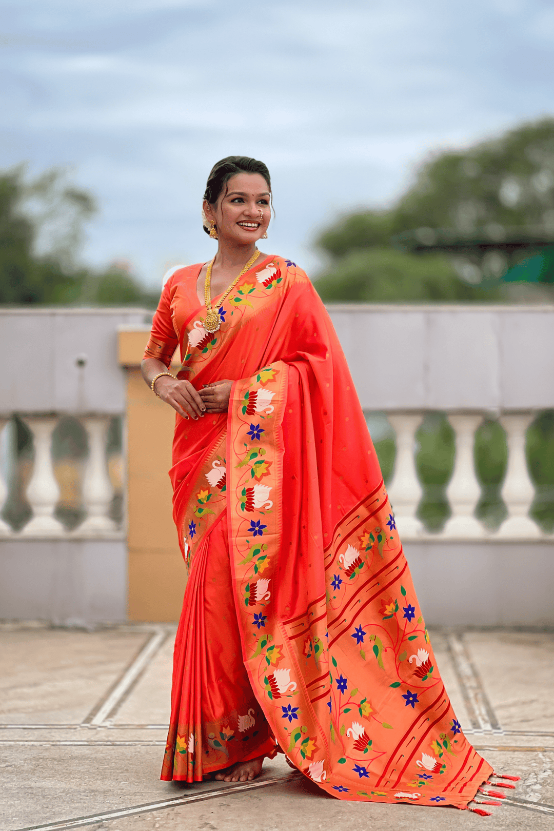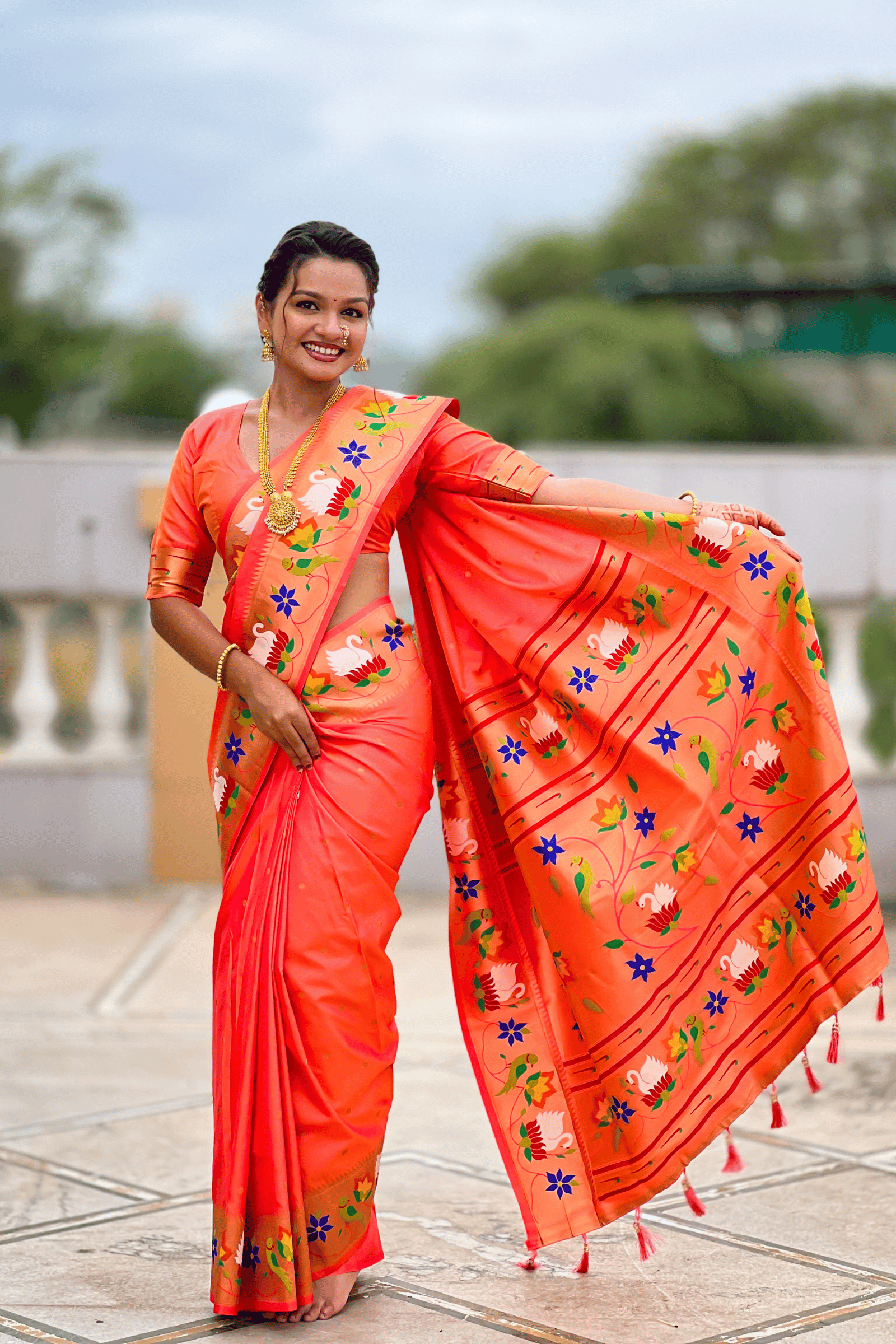 Shahi Paithani | Ready to Wear Orange Paithani Silk Saree