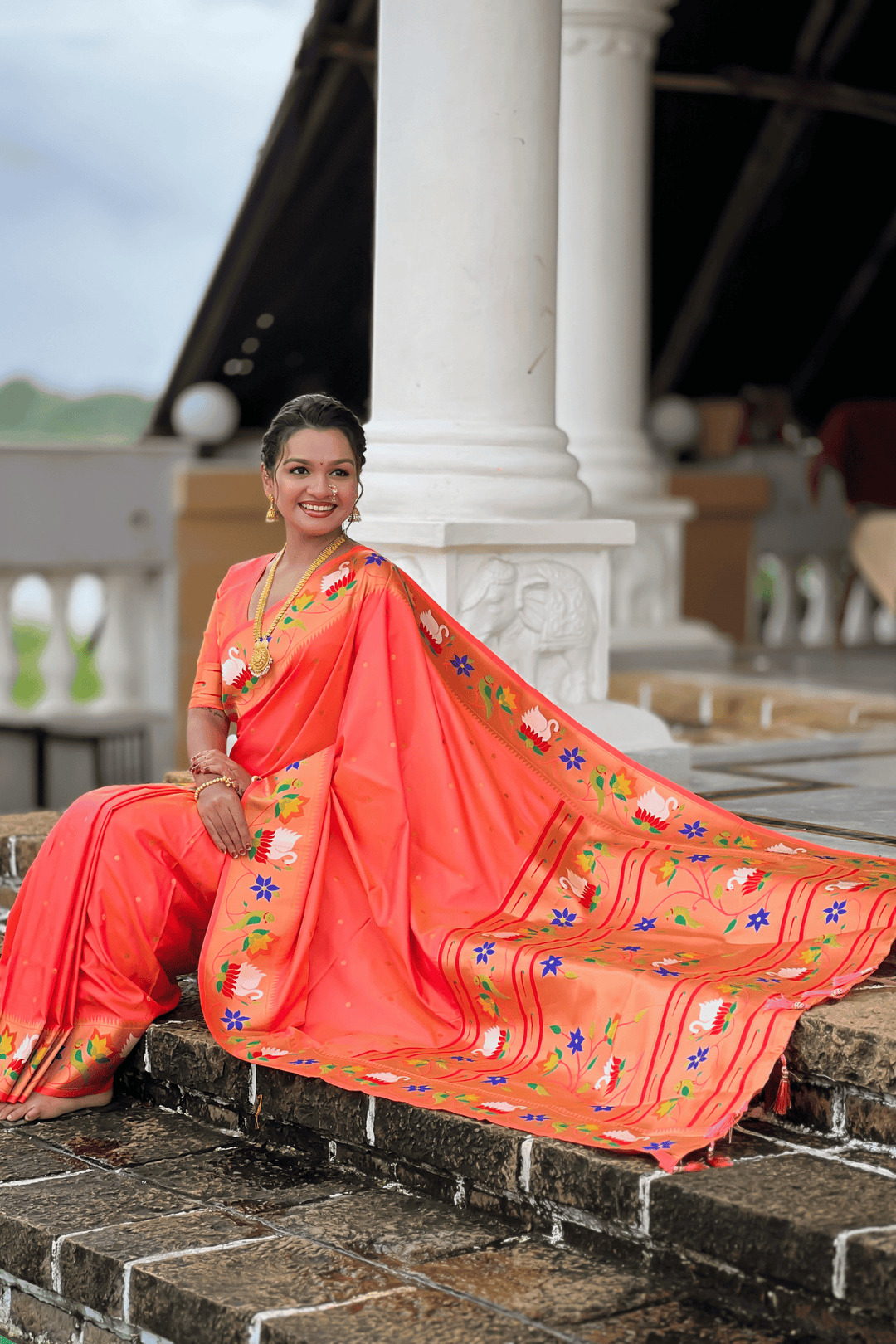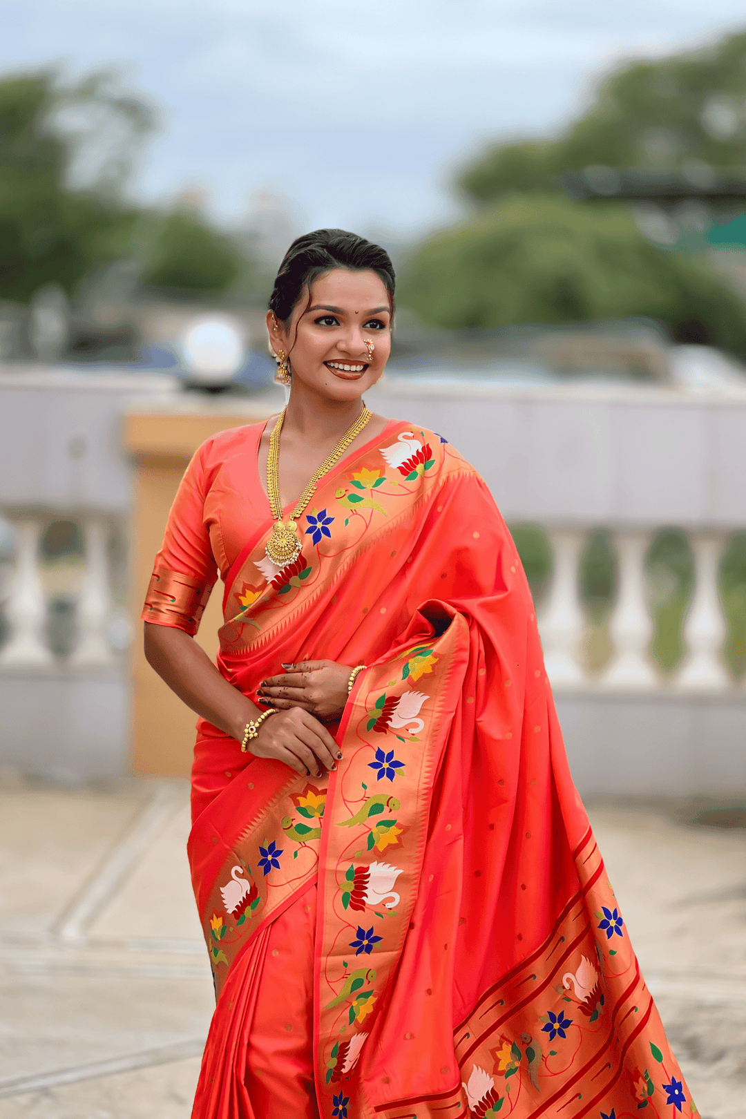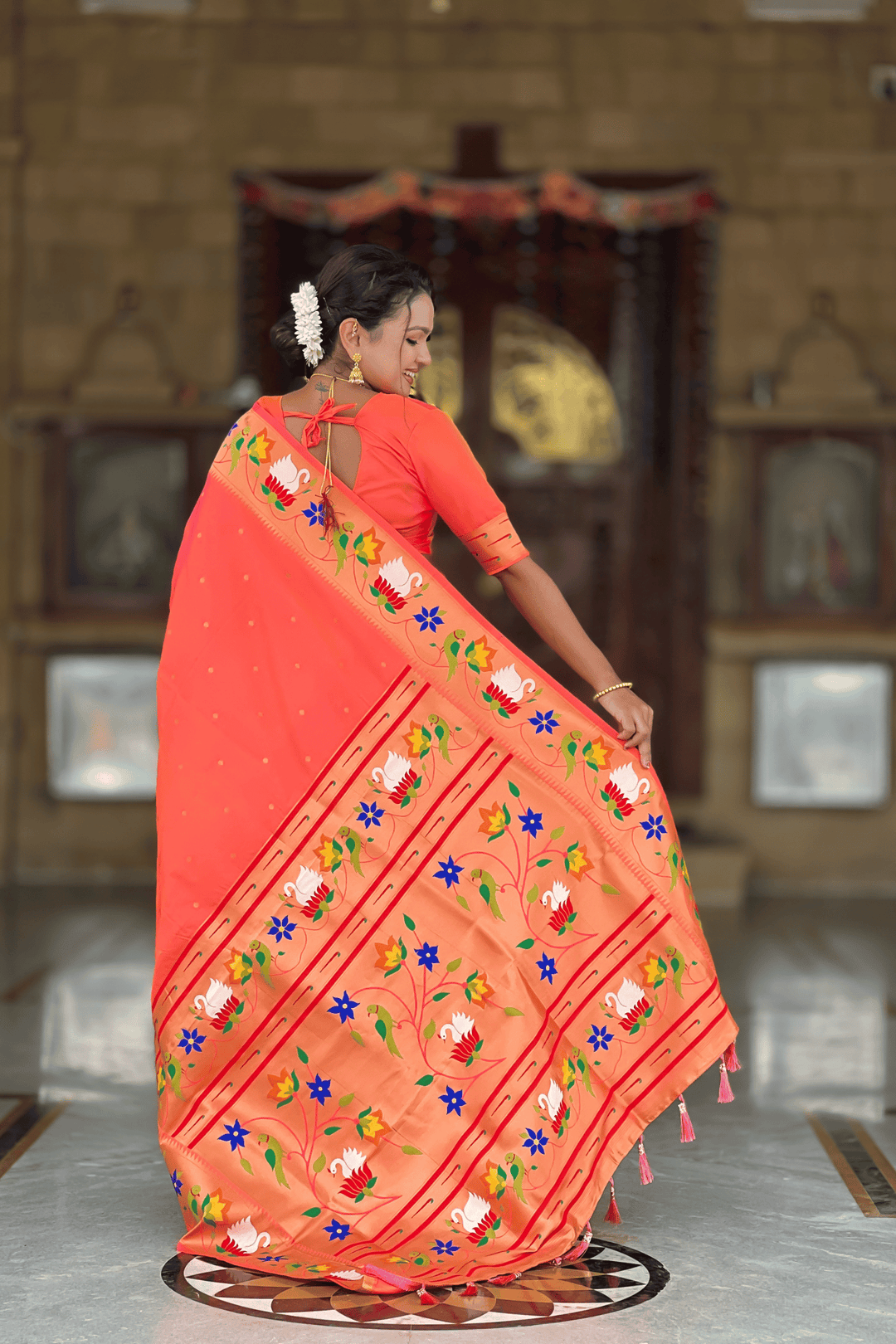 Shahi Paithani | Ready to Wear Orange Paithani Silk Saree