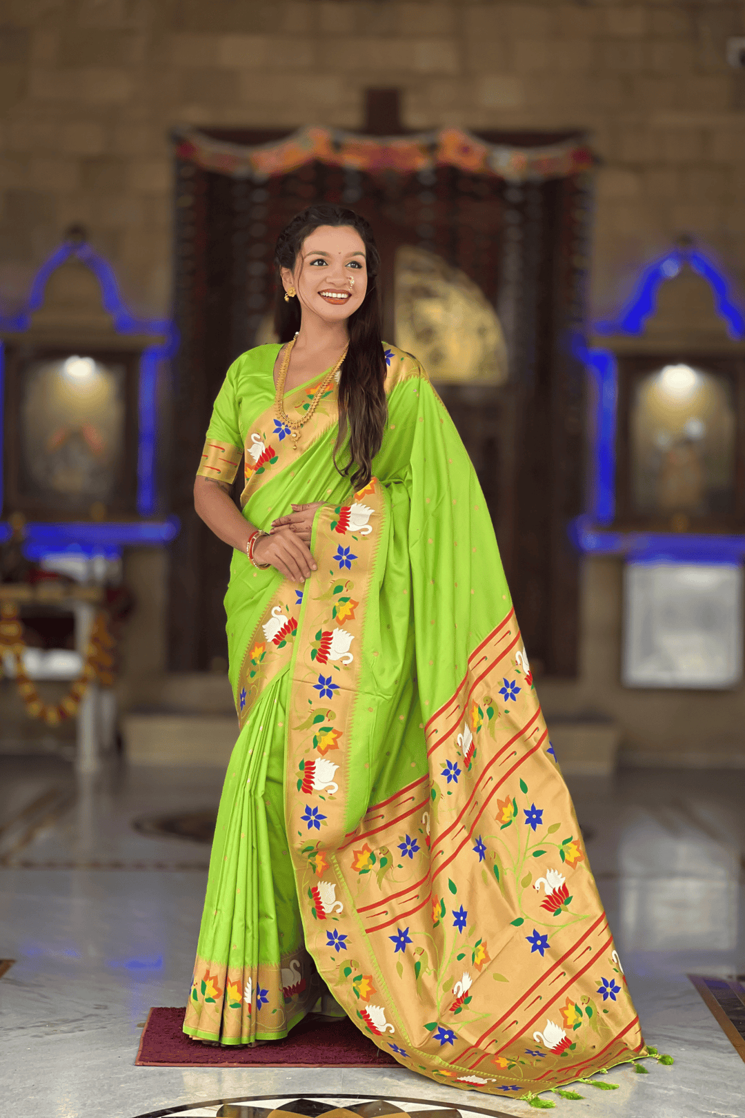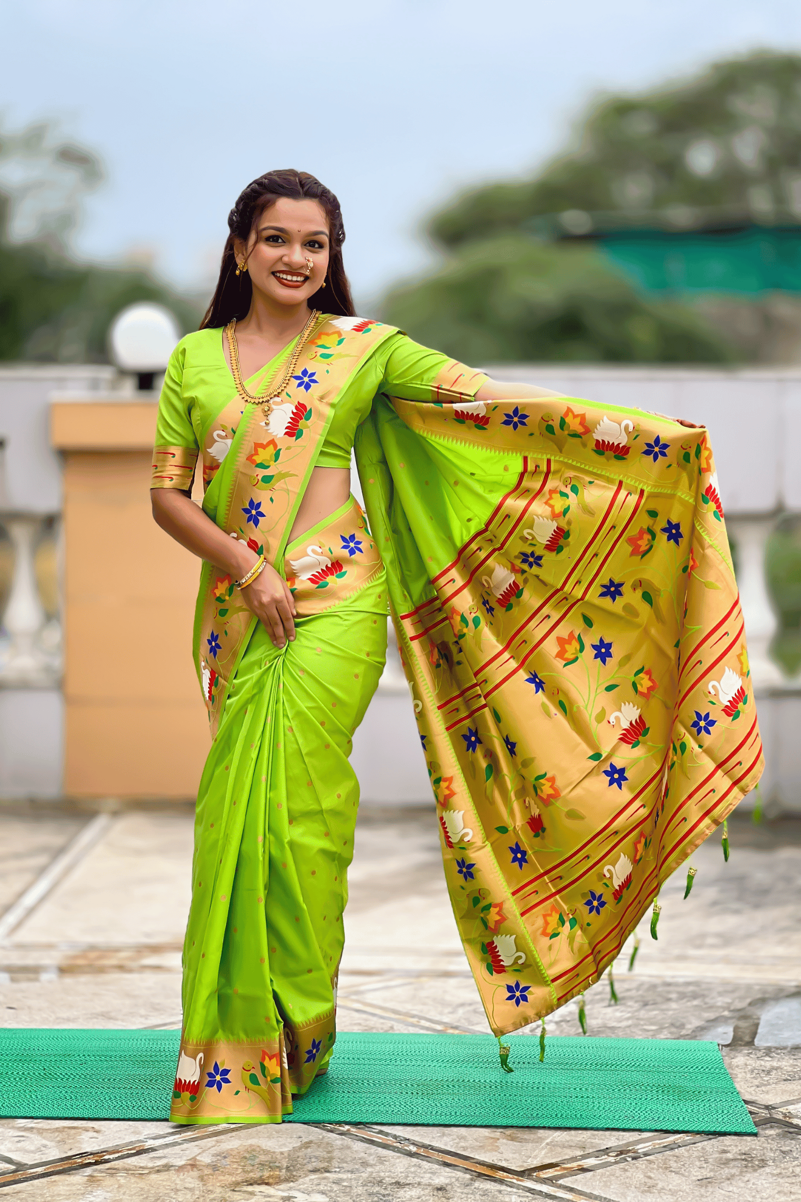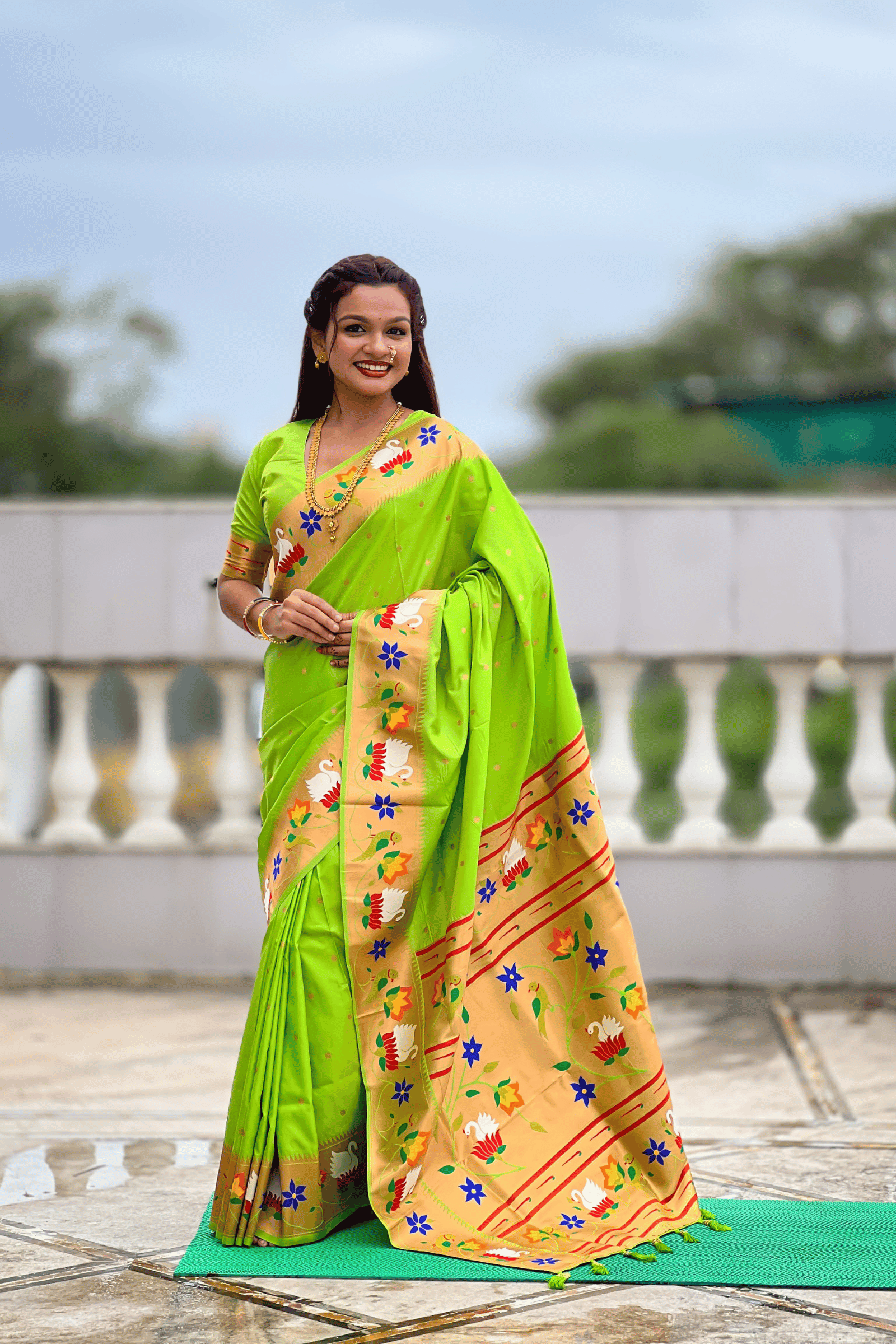Shahi Paithani | Ready to Wear Parrot Green Paithani Silk Saree