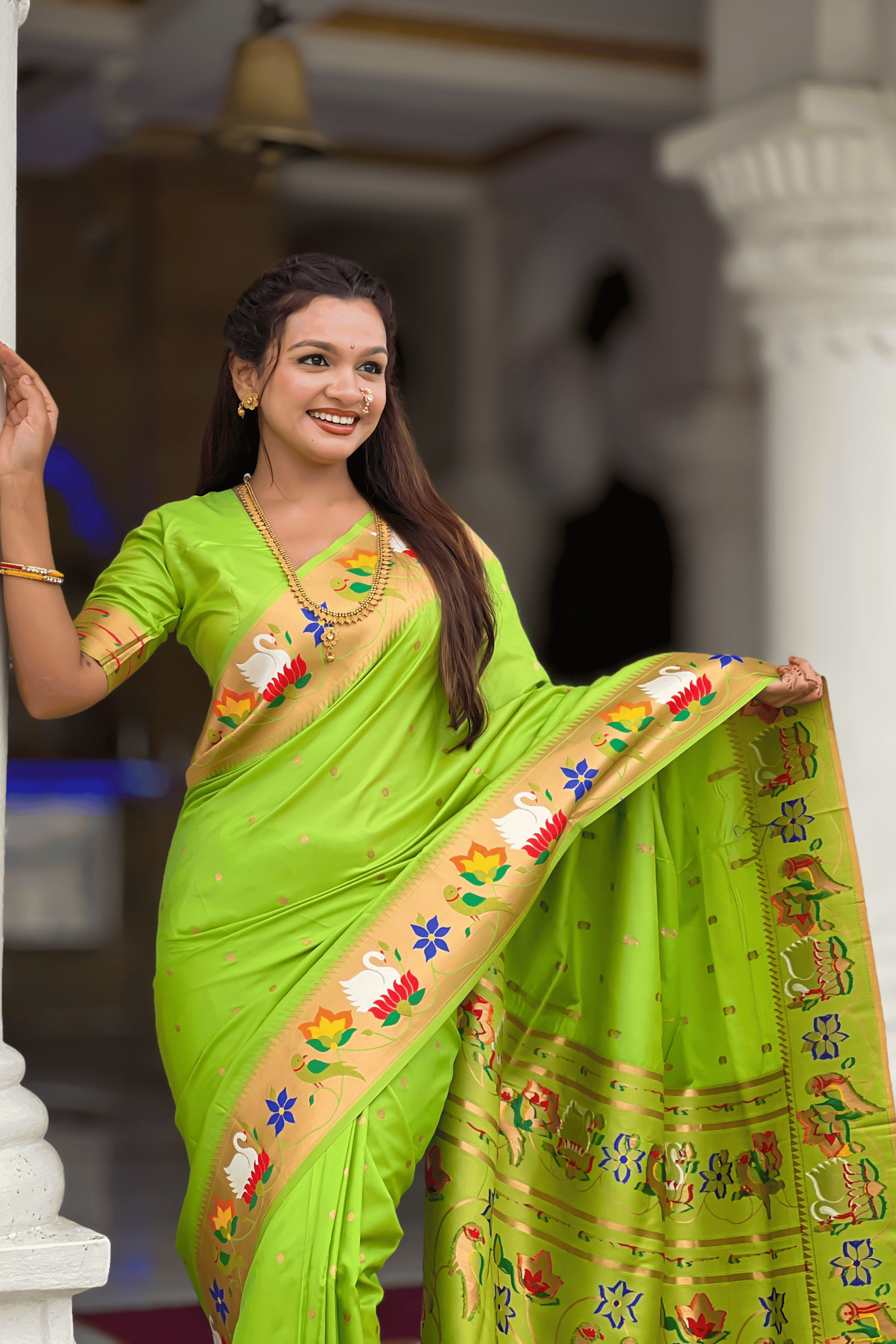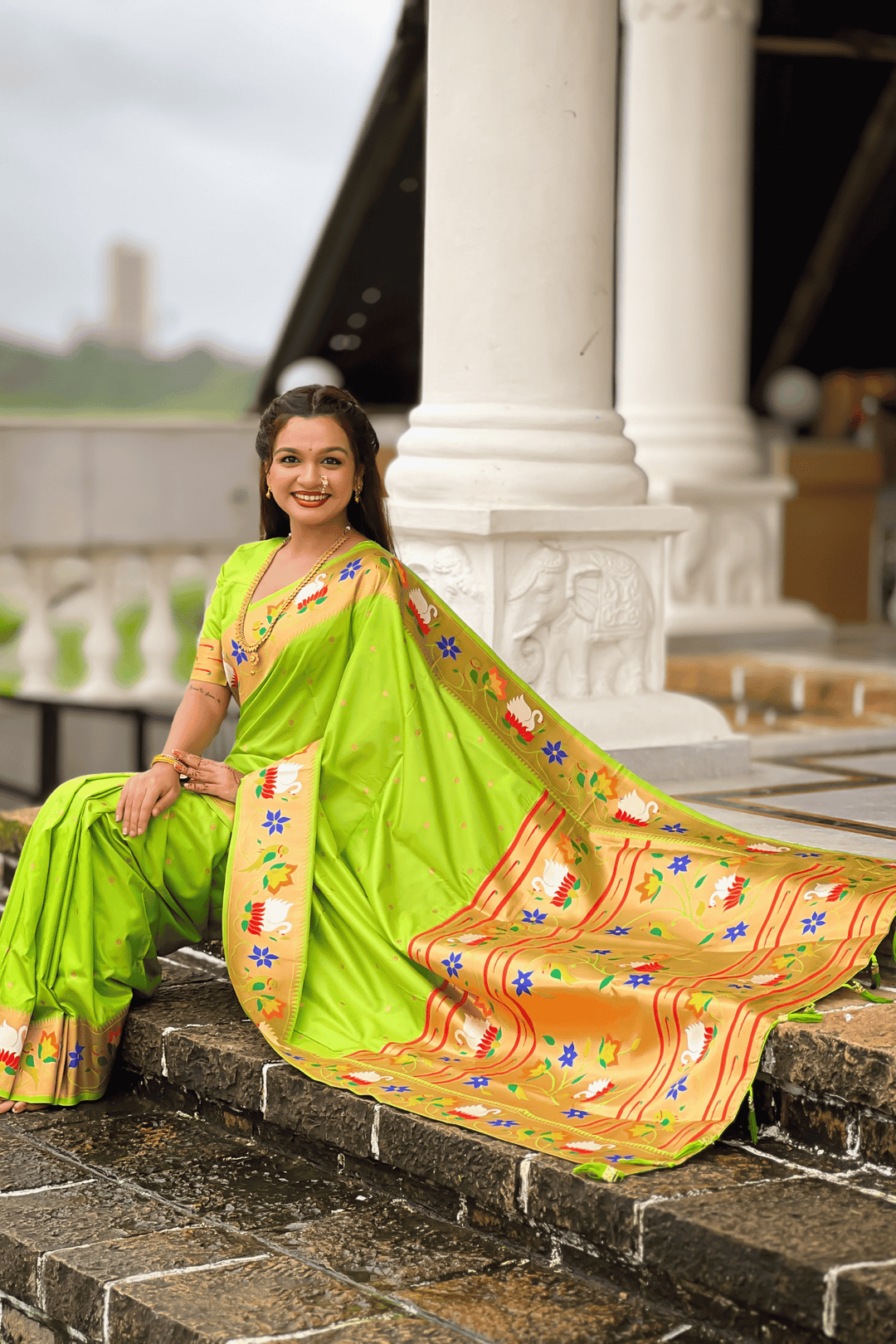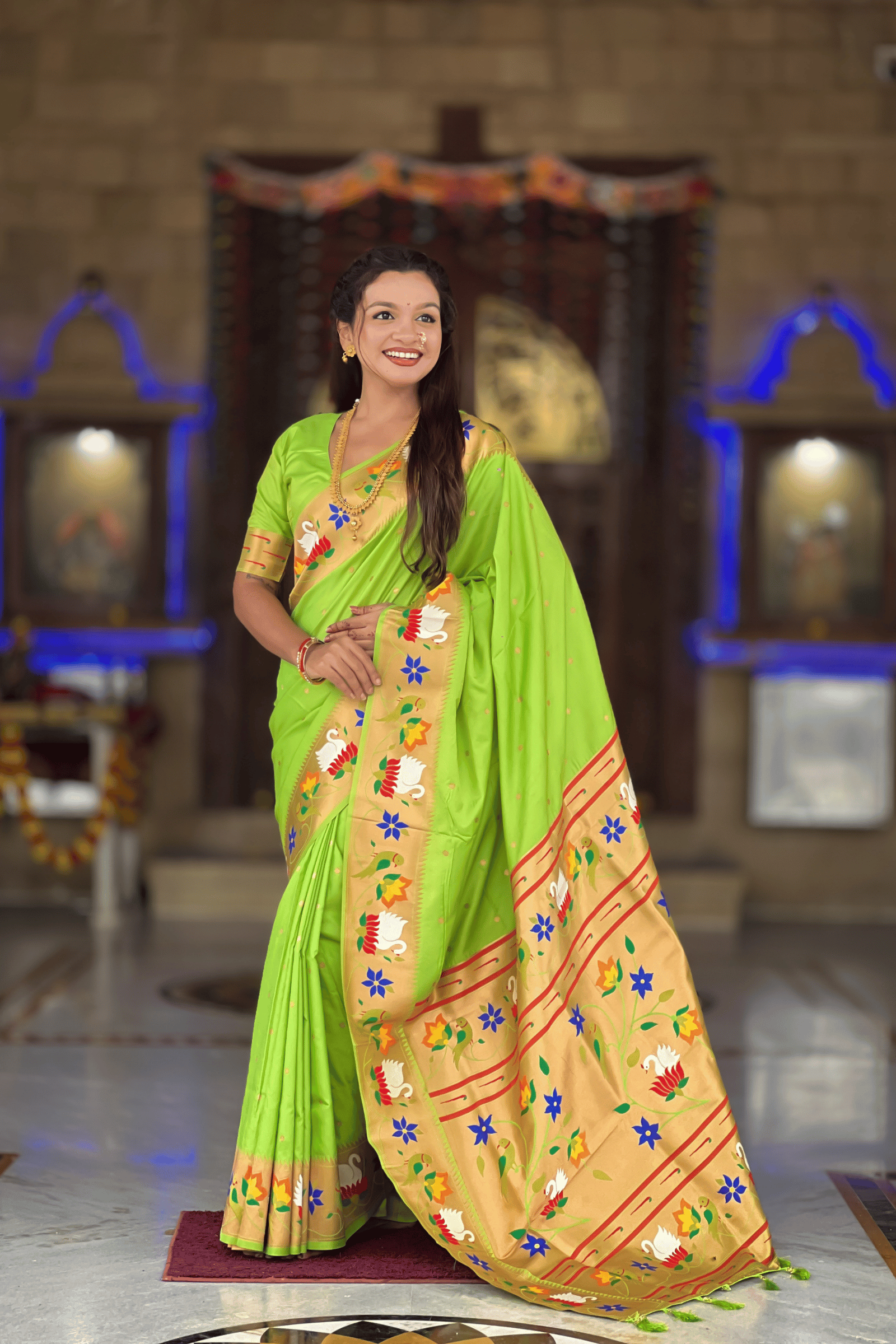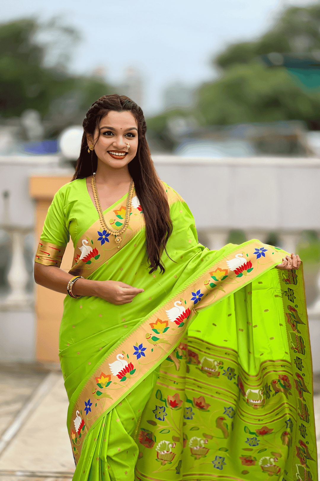 Shahi Paithani | Ready to Wear Parrot Green Paithani Silk Saree