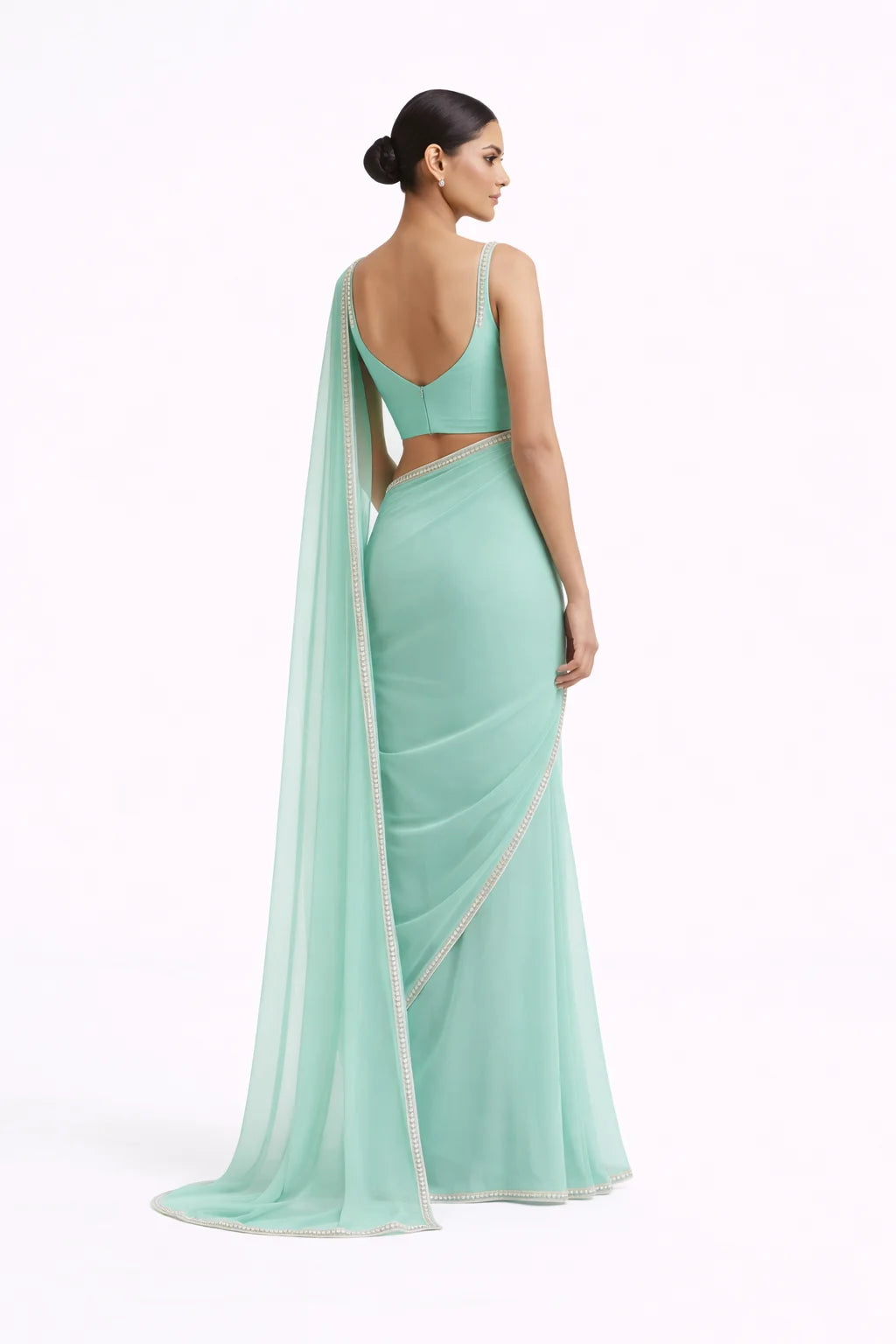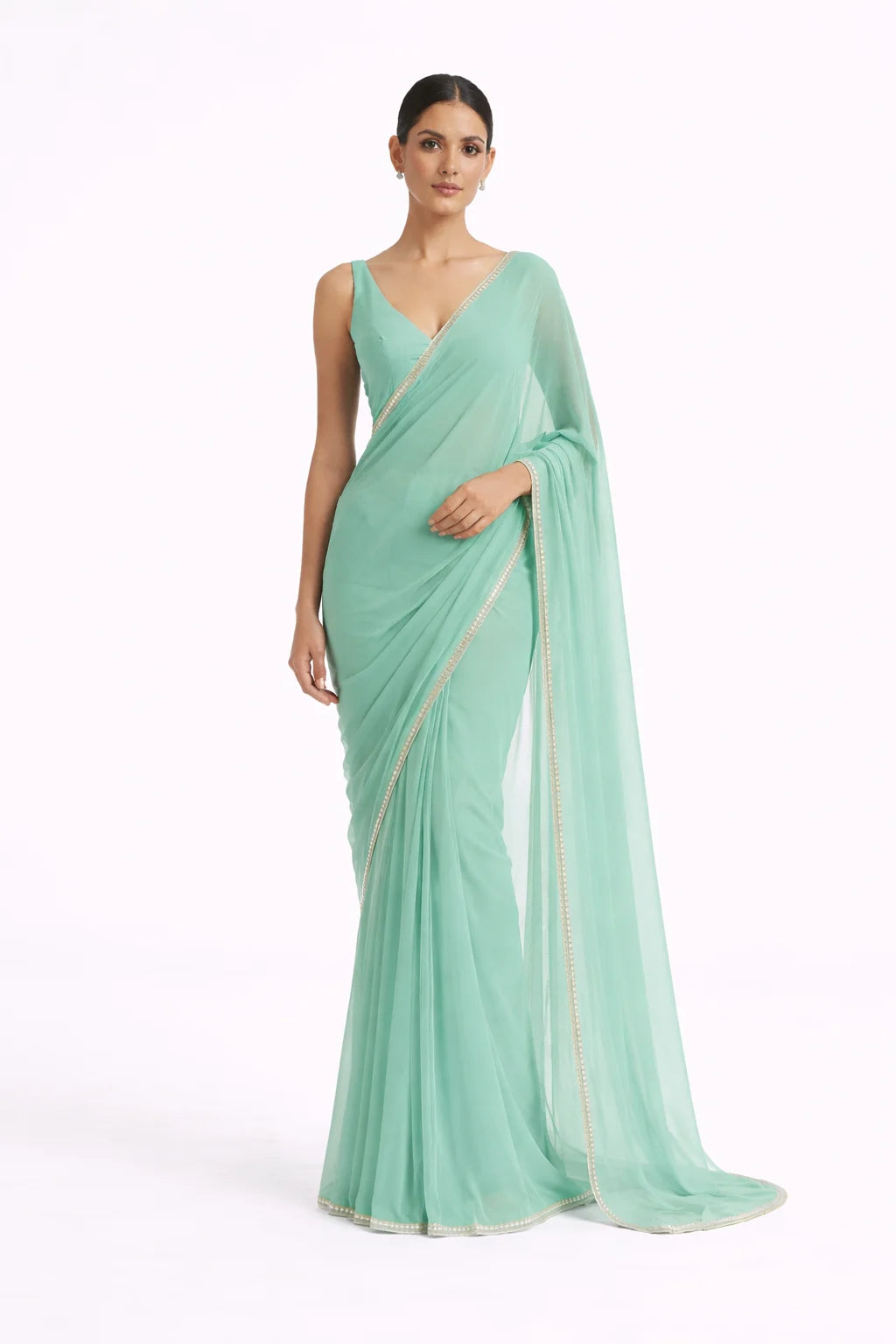 Ready-to-Wear Aqua Green Georgette Saree