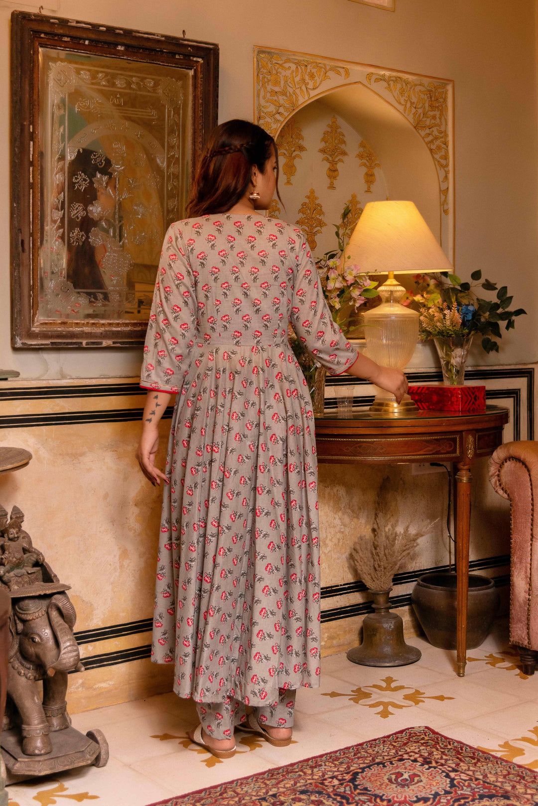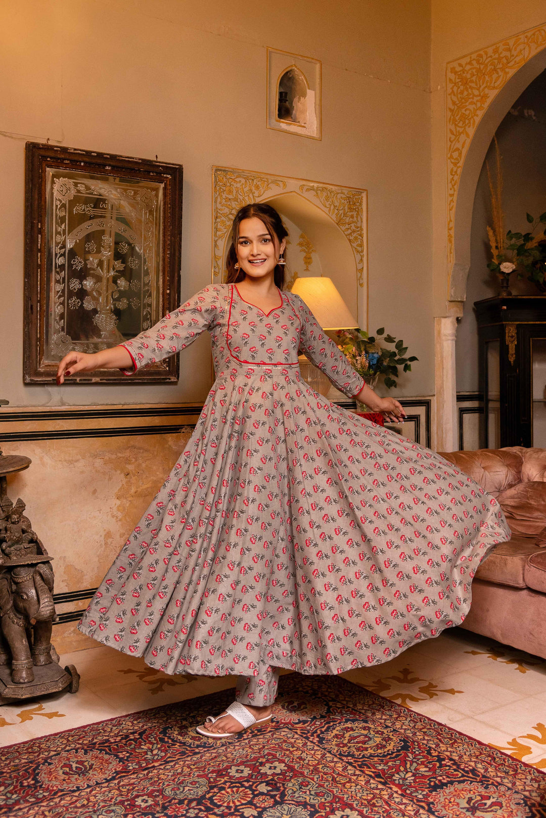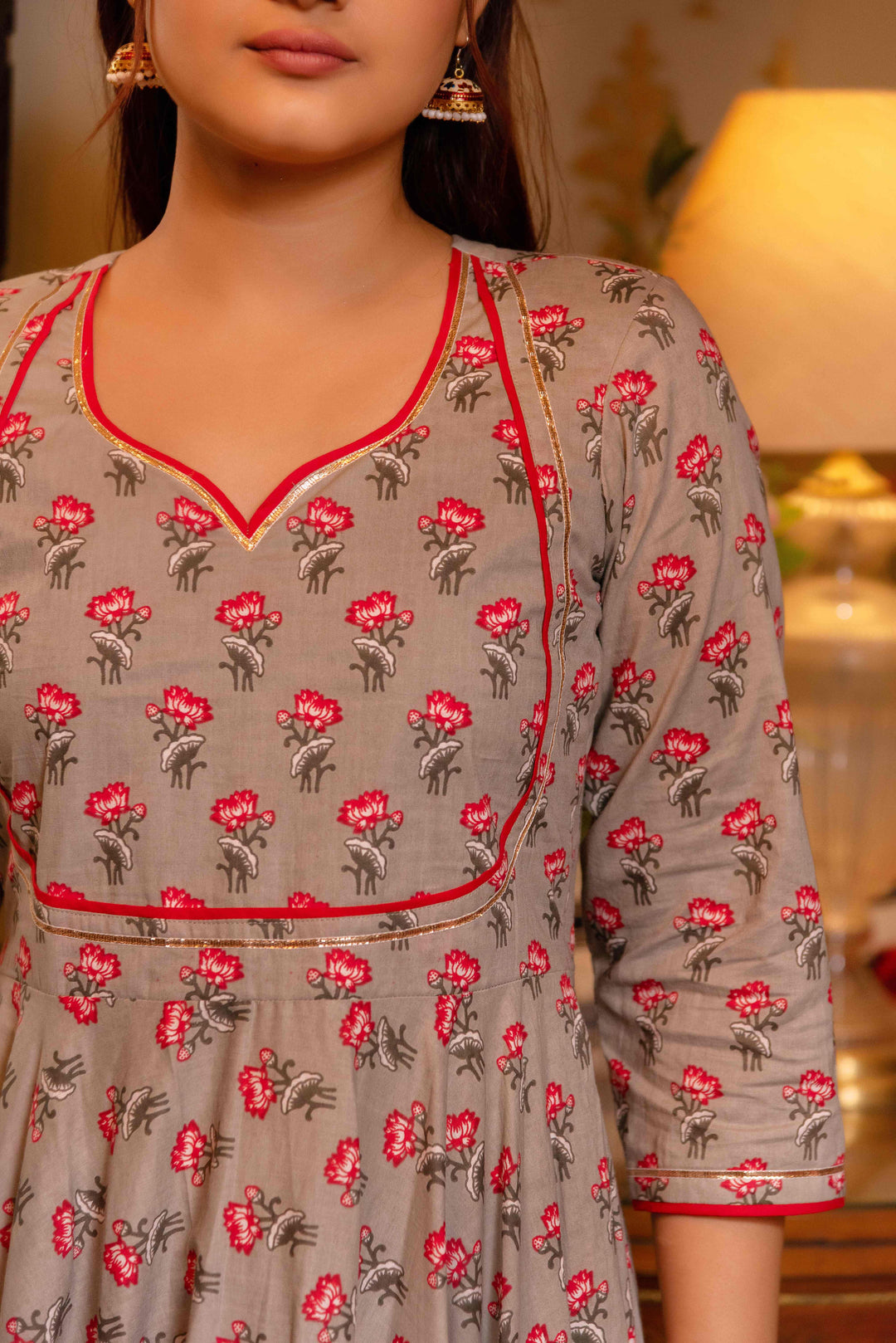 Grey Phool Pure Cotton Anarkali Set