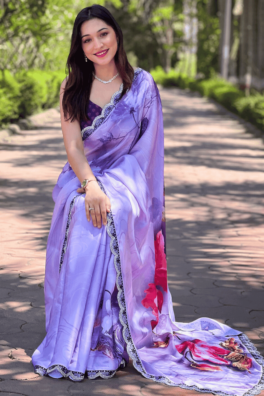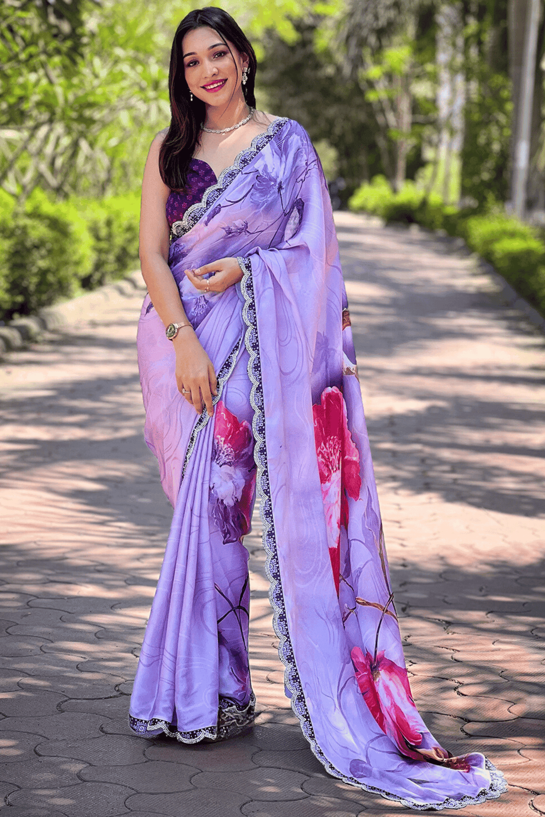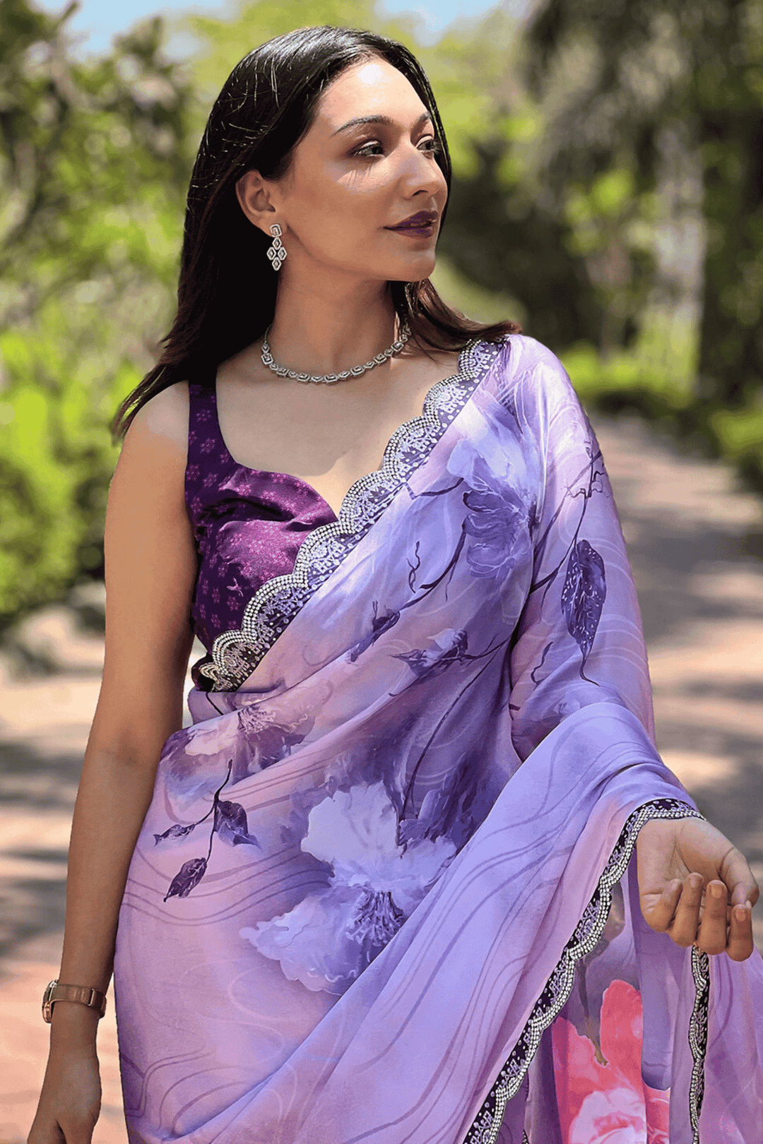 Ready To Wear Lavender Floral Satin Georgette Saree
