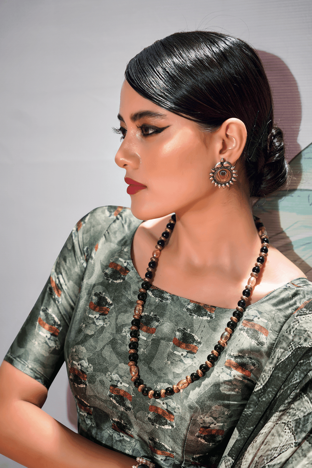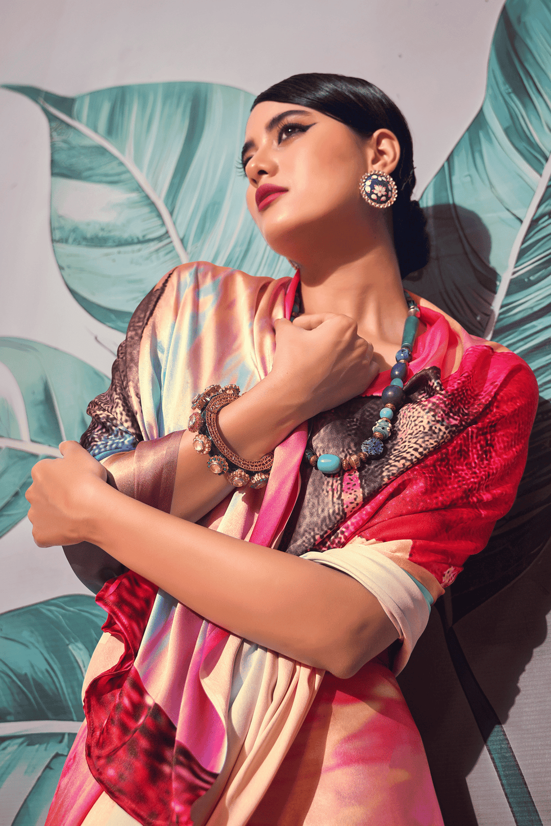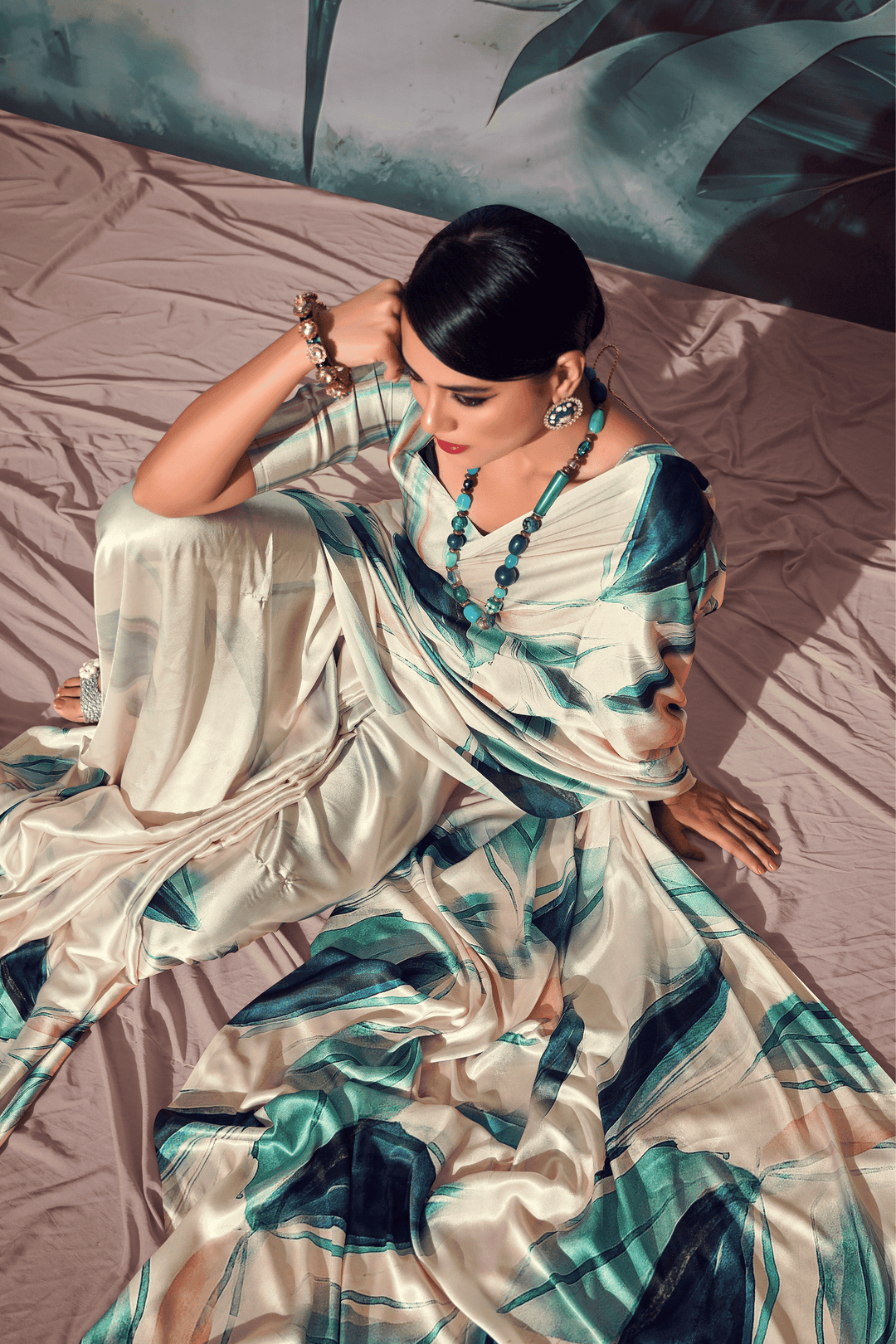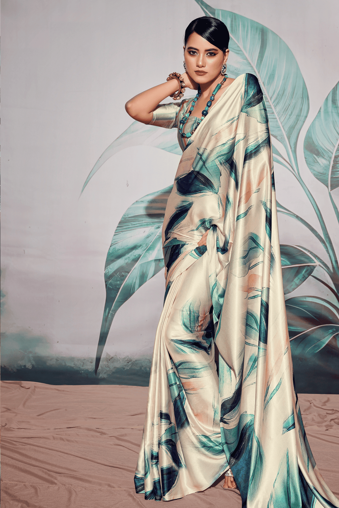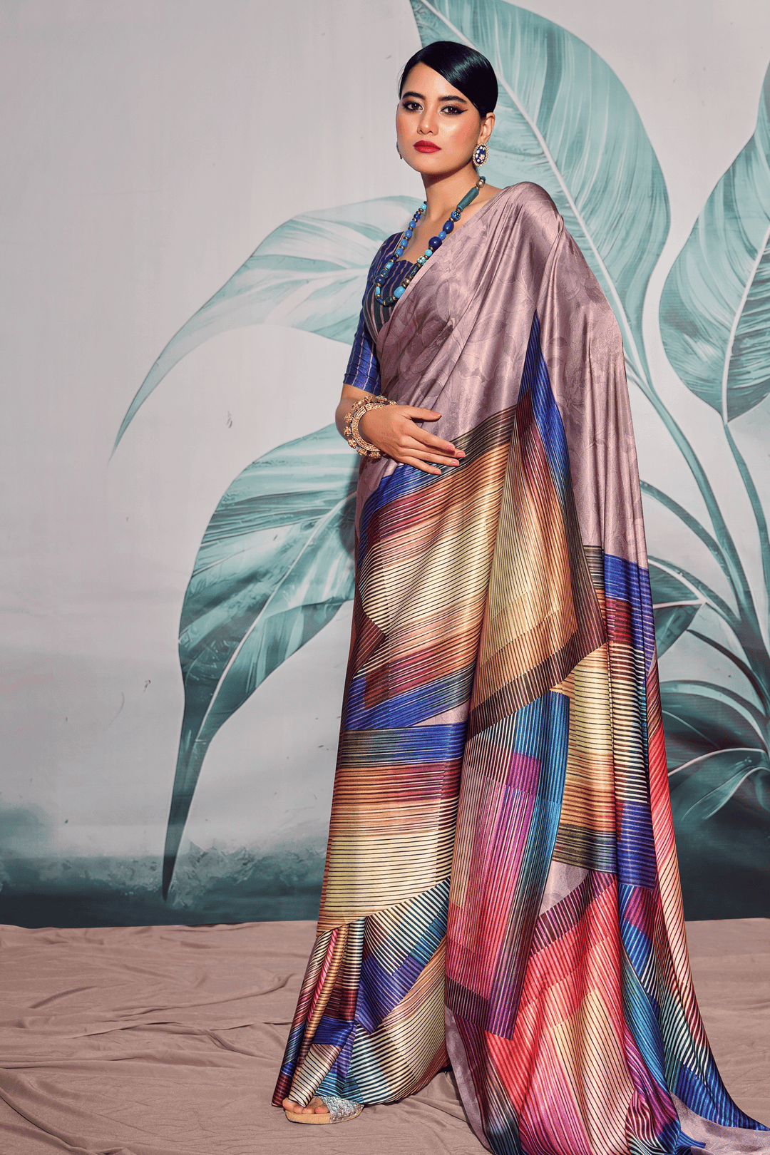 Introducing Glamwiz Ready to Wear Printed Satin Crepe Saree, a fusion of style and comfort. This exquisite saree is crafted from luxurious crepe fabric, known for its lightweight and breathable qualities.