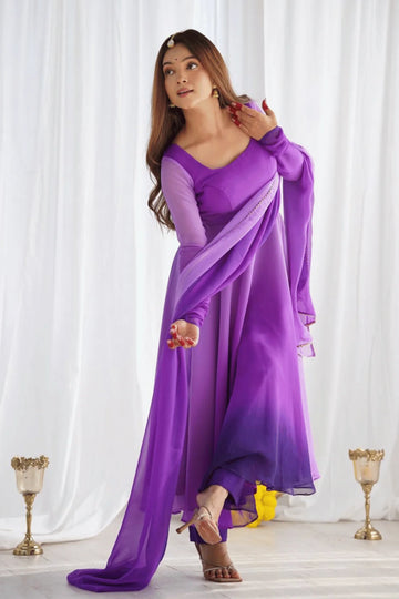 Introducing Glamwiz Colorful Georgette Anarkali Suit, Crafted with precision and designed to allure, our gown is a masterpiece of elegance and style.