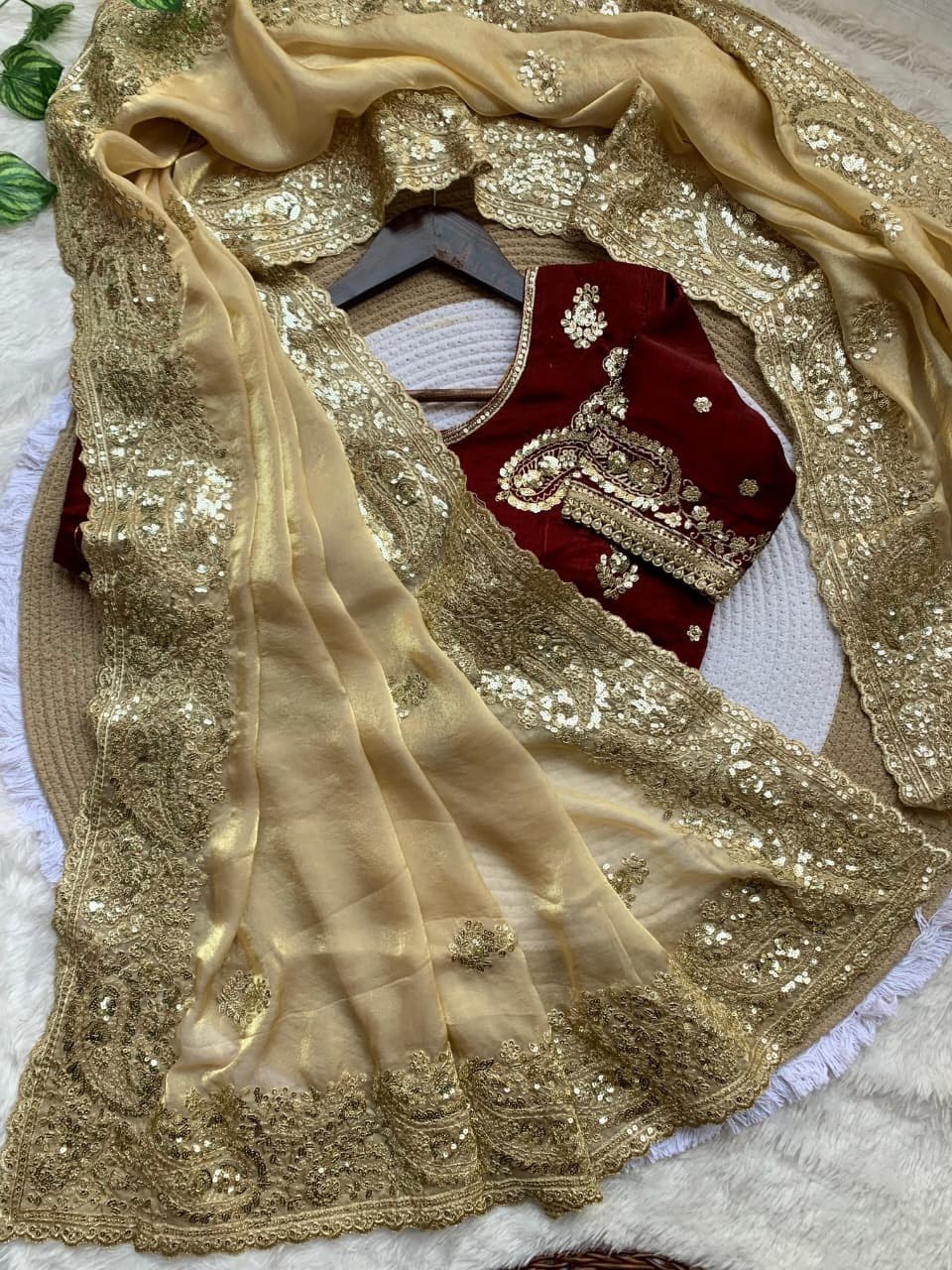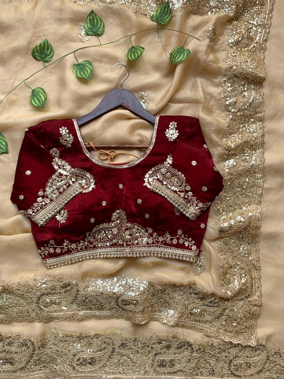 Length:- 5.5 meters & 0.8 Unstitched self fabric Blouse to style the blouse as you please!