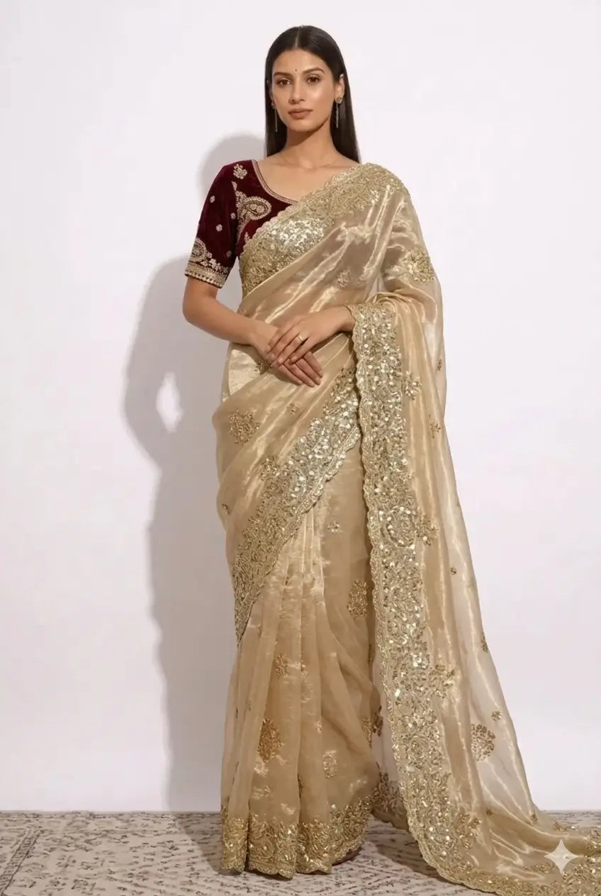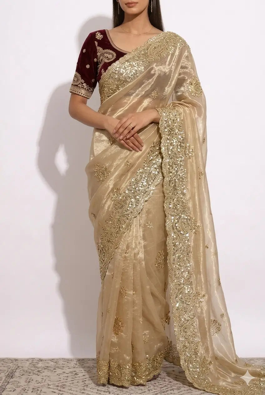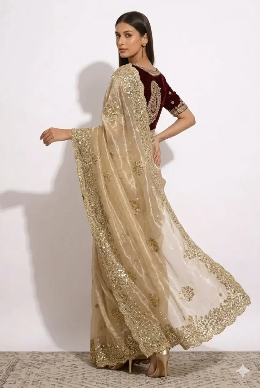 Elara Gold | Ready to Wear Light Gold Saree with Stitched Blouse