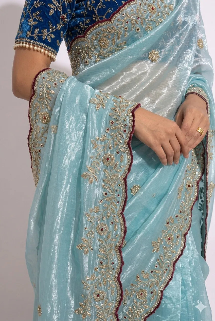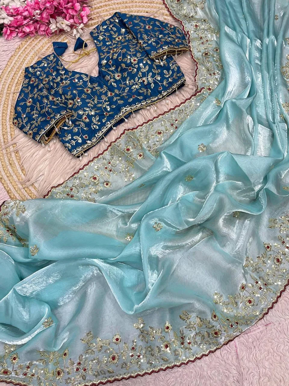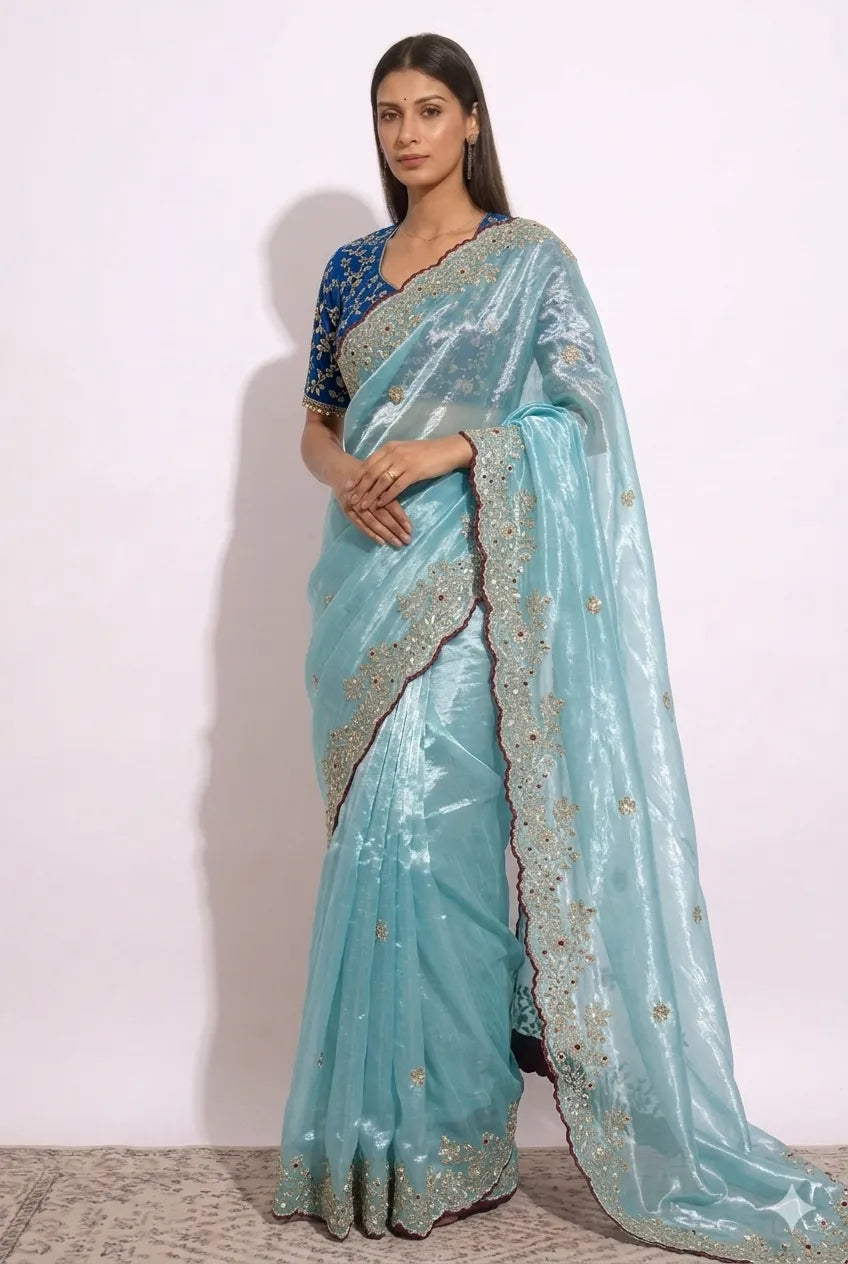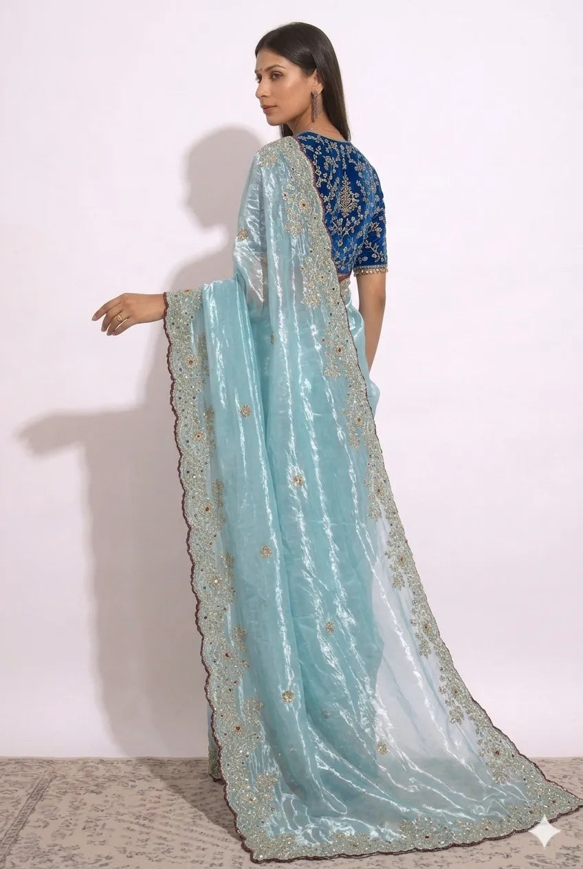 Length:- 5.5 meters & 0.8 Unstitched self fabric Blouse to style the blouse as you please!