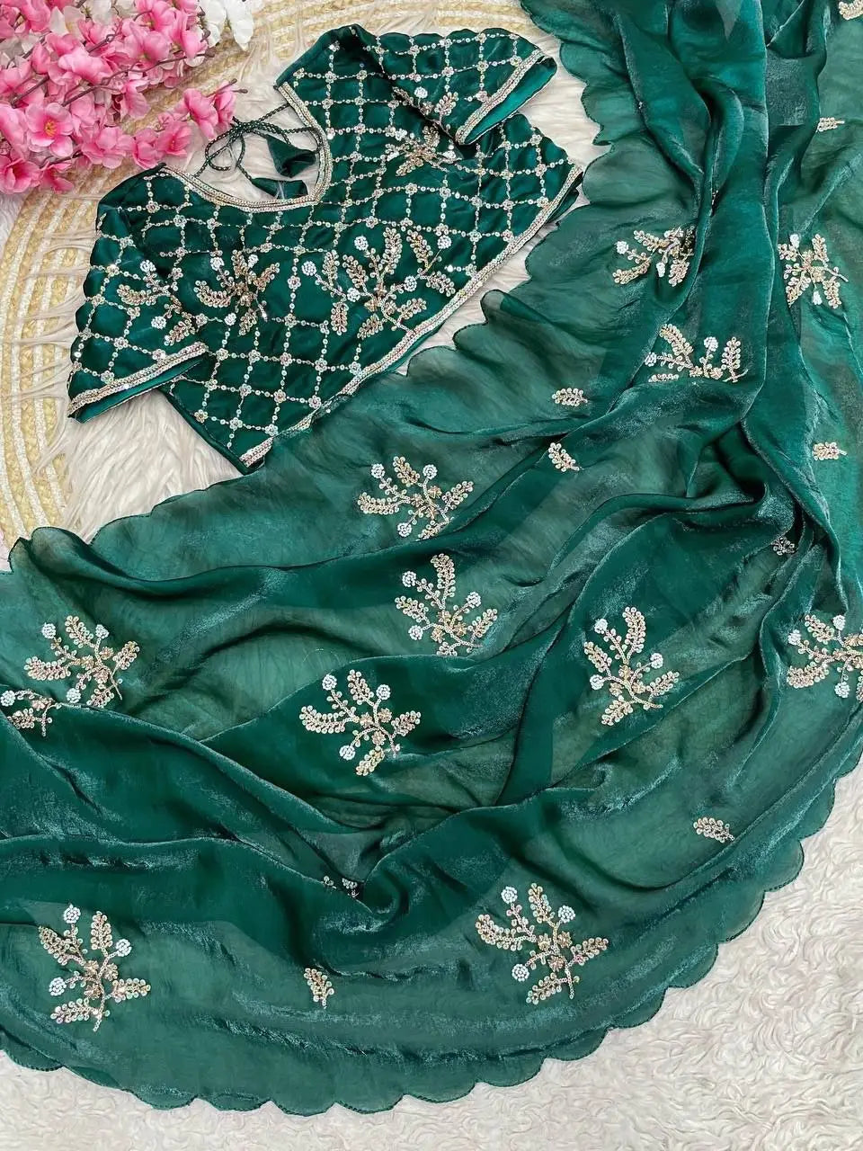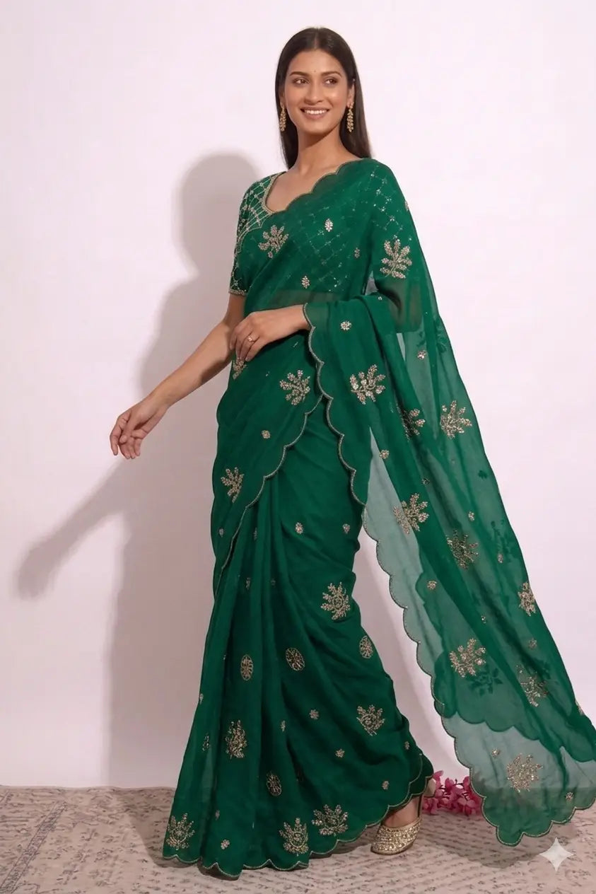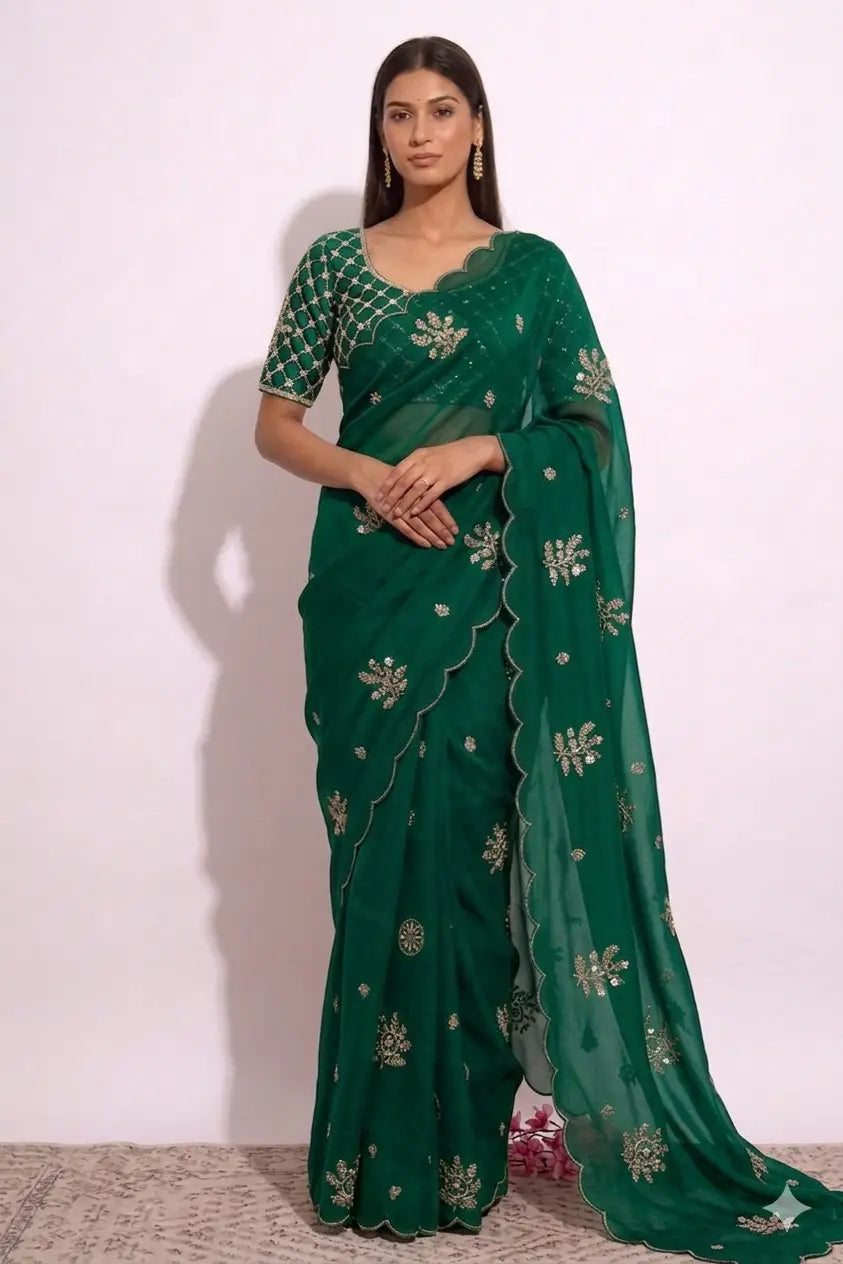 Panna Green | Saree with Stitched Blouse- Ready to Wear