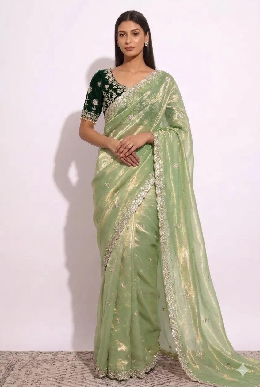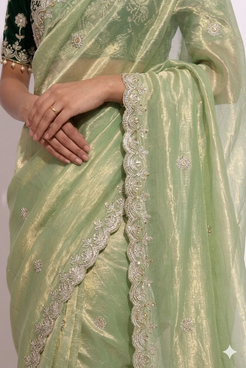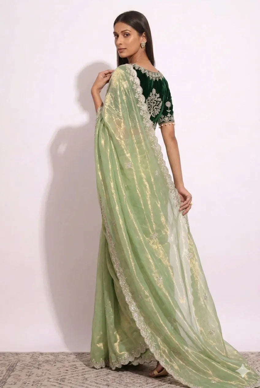Pistachio Glow | Ready to Wear Pastel Saree with Stitched Blouse