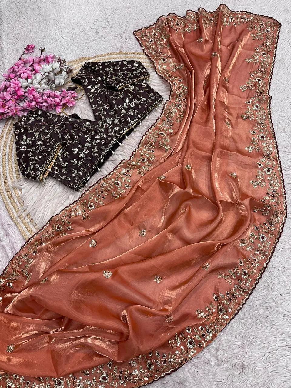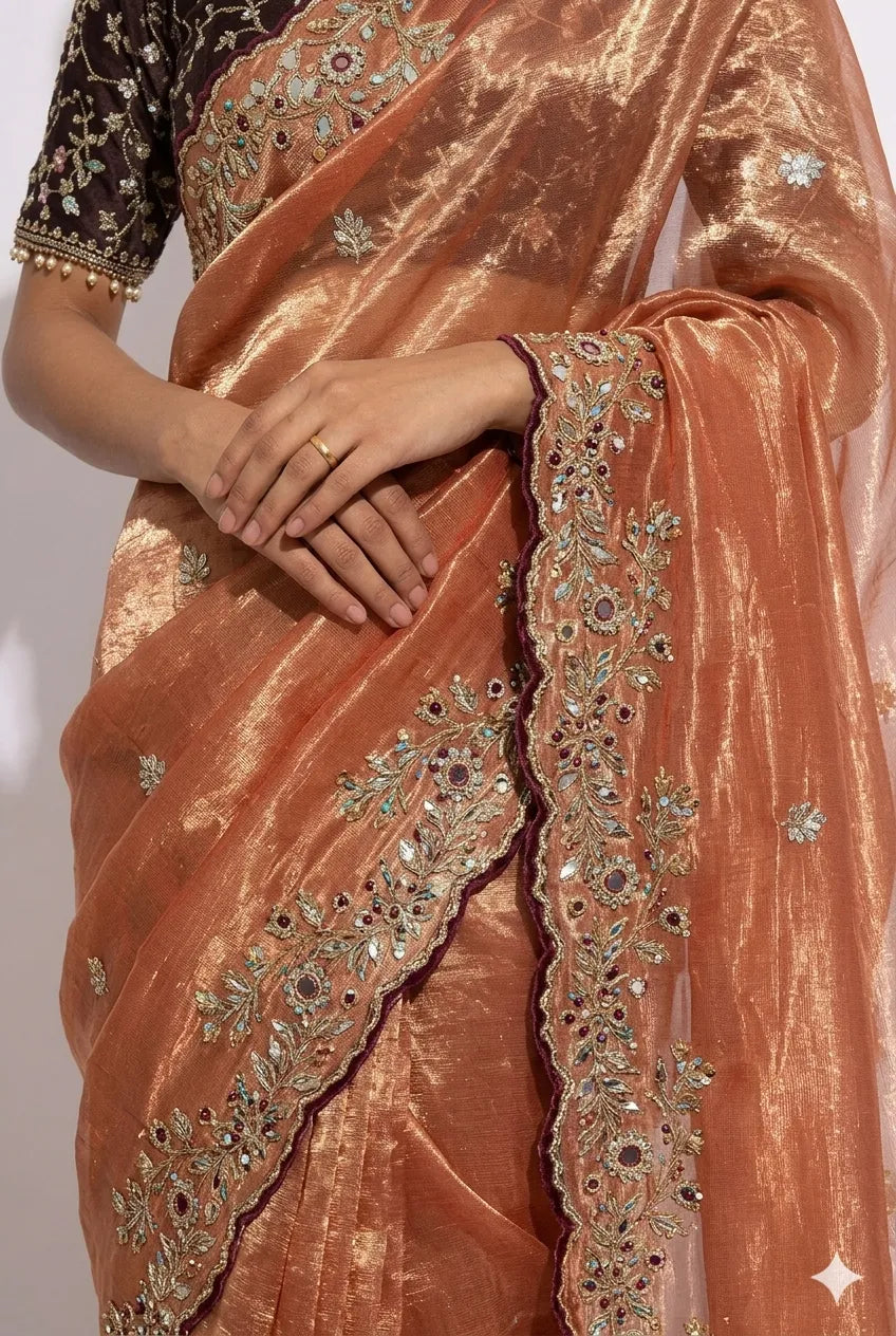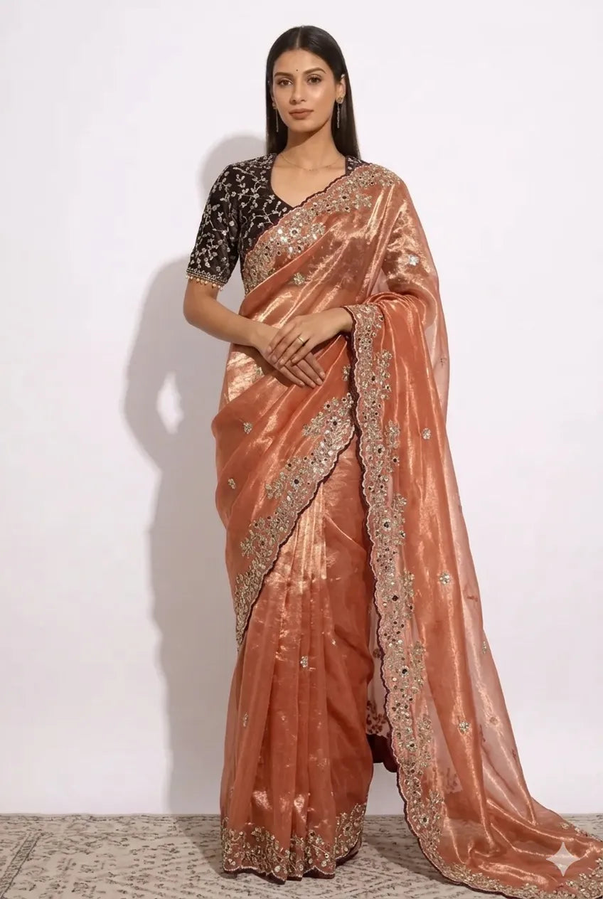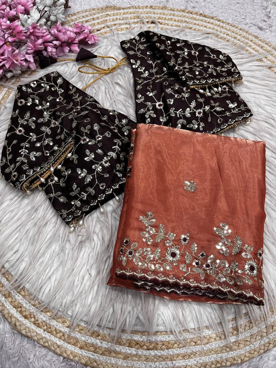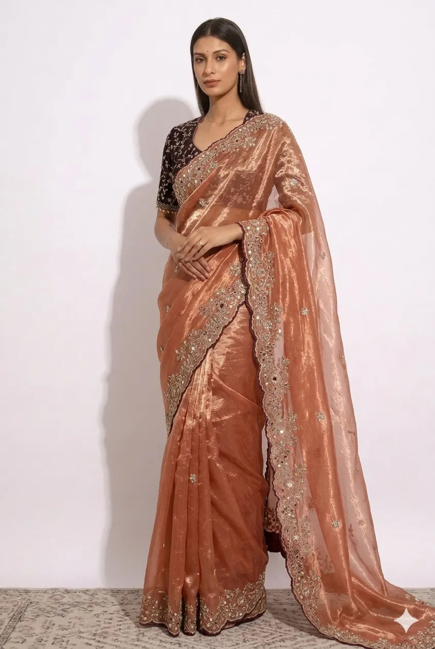 Sienna Luxe | Ready to Wear Rust Saree with Stitched Blouse