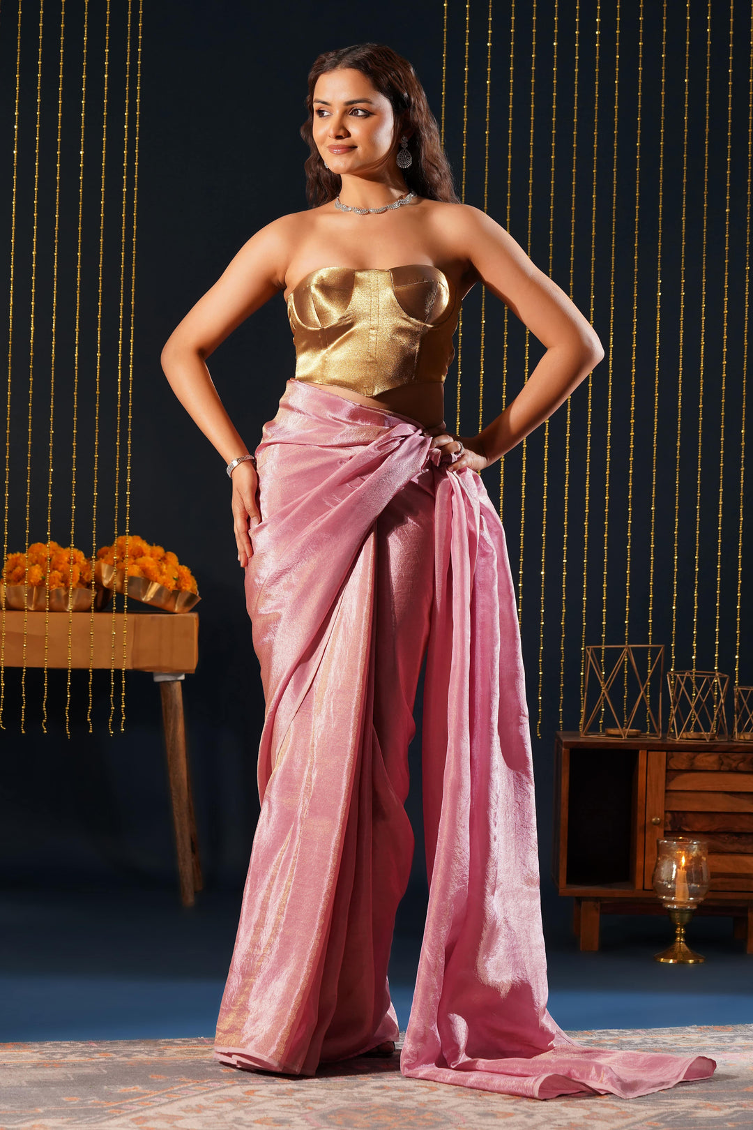 Description:- A Matte Golden sleeveless corset blouse. The blouse is padded and ideal for party or occasional wear!