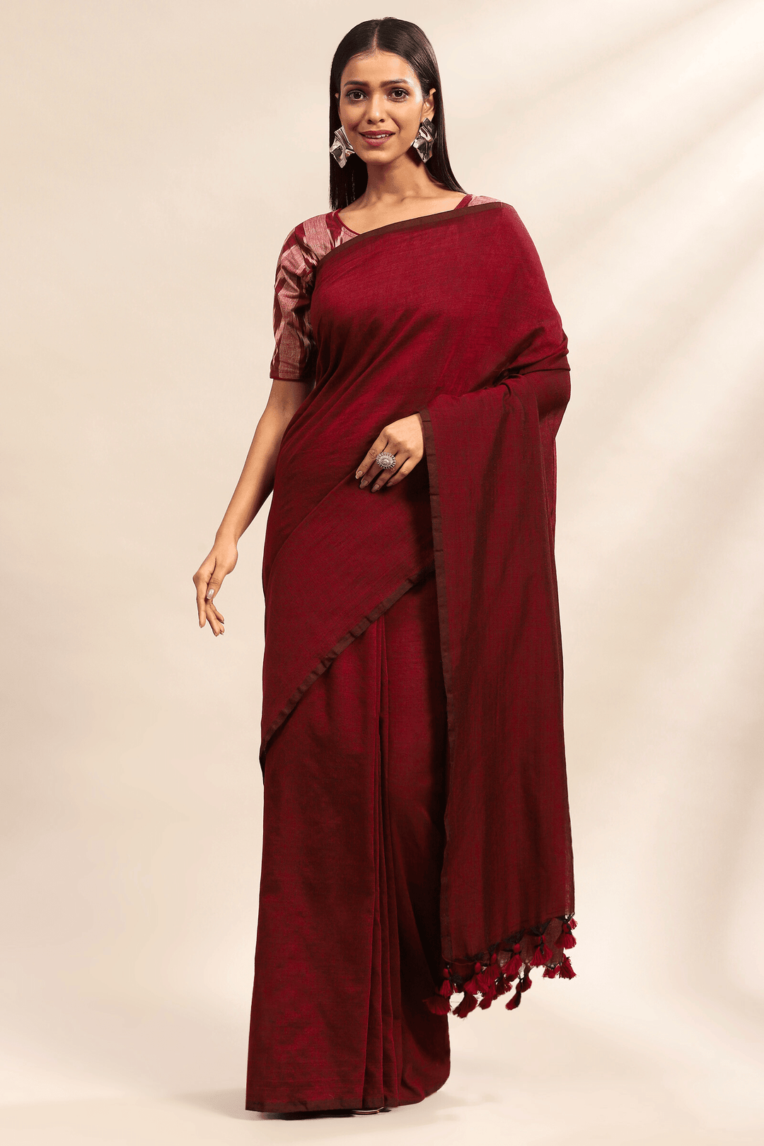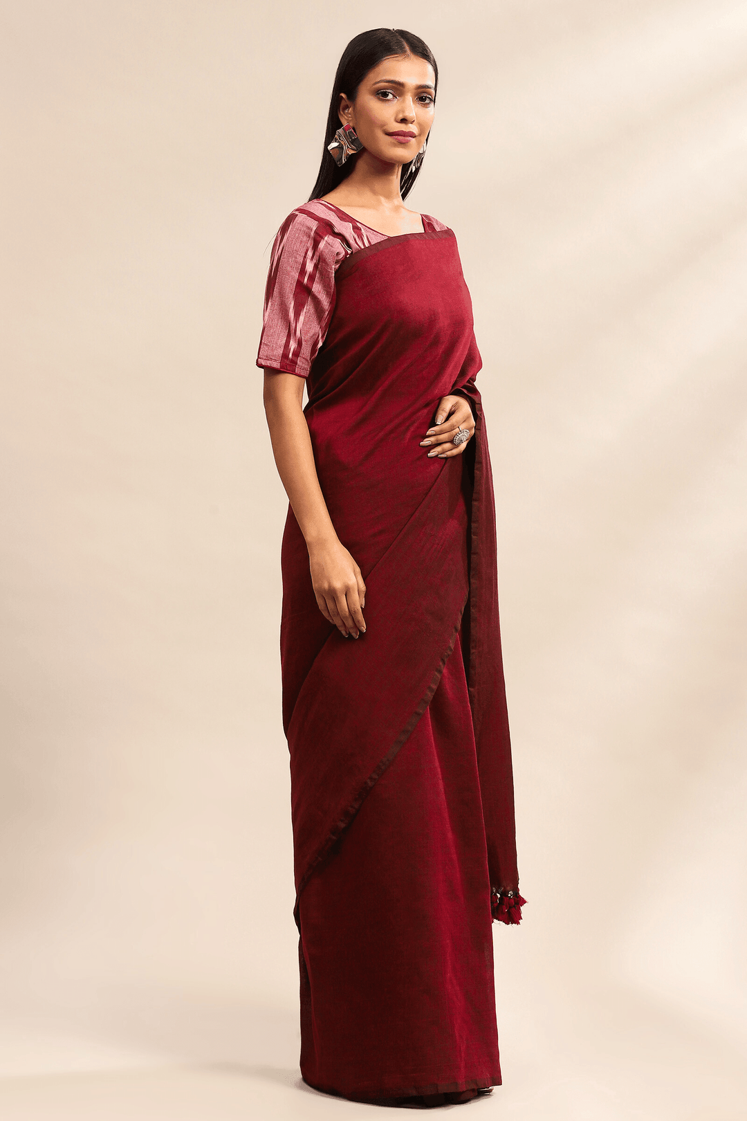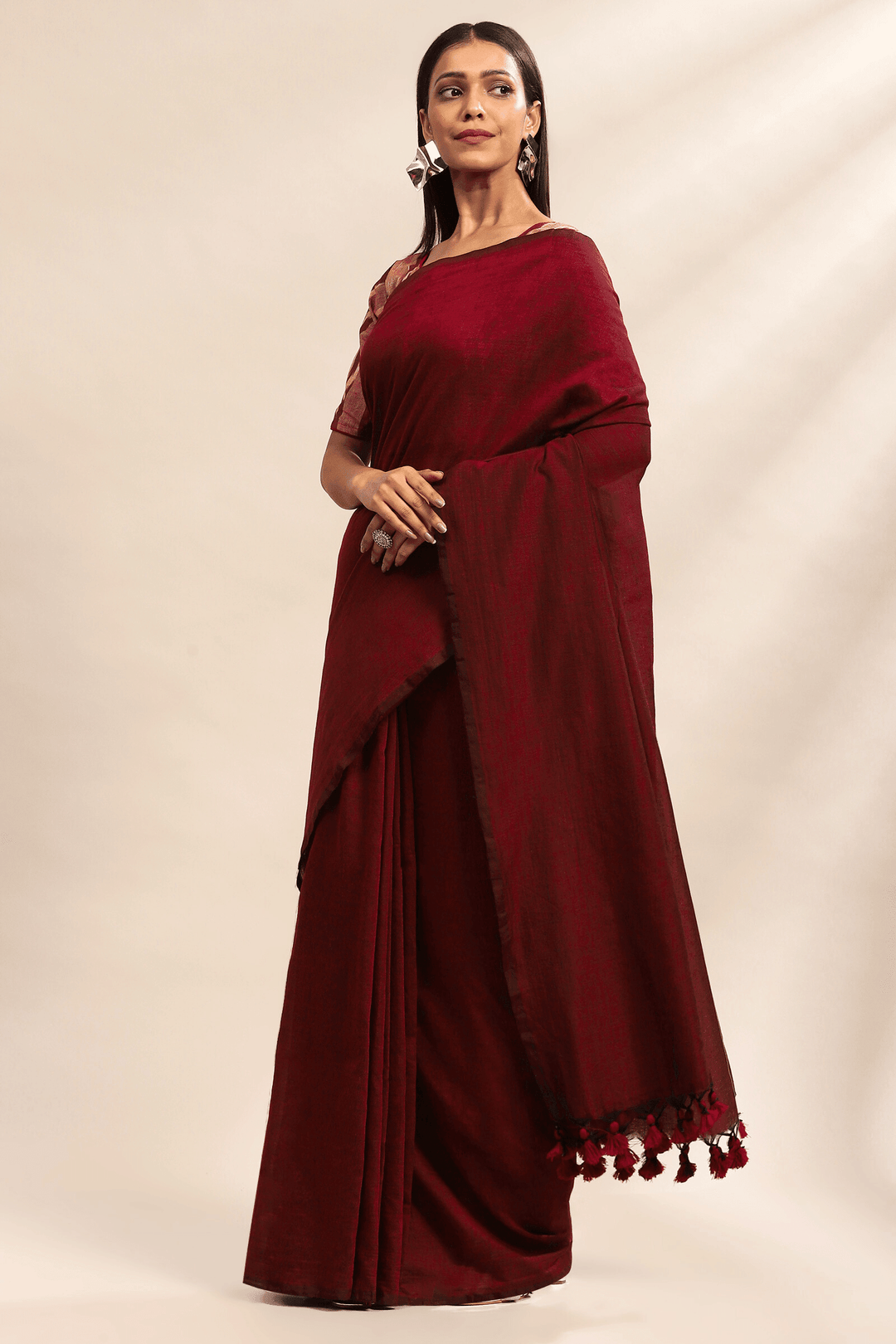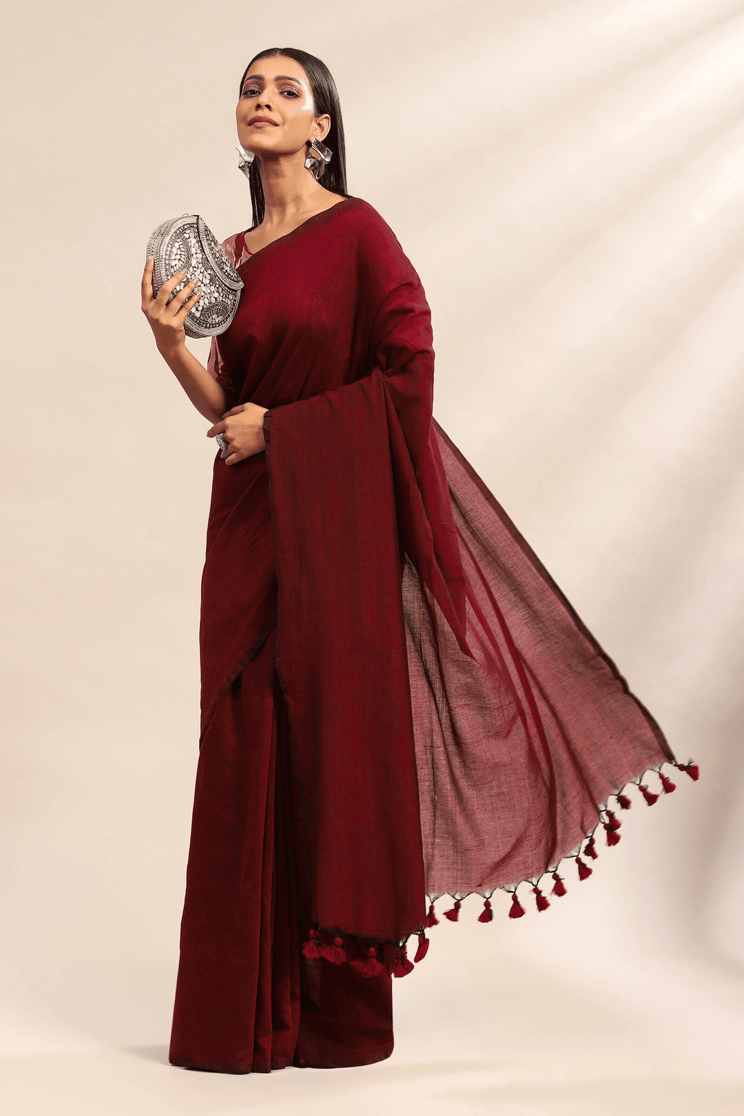 Burgundy Mul Saree | Ready to Wear Cotton Saree with Stitched Blouse