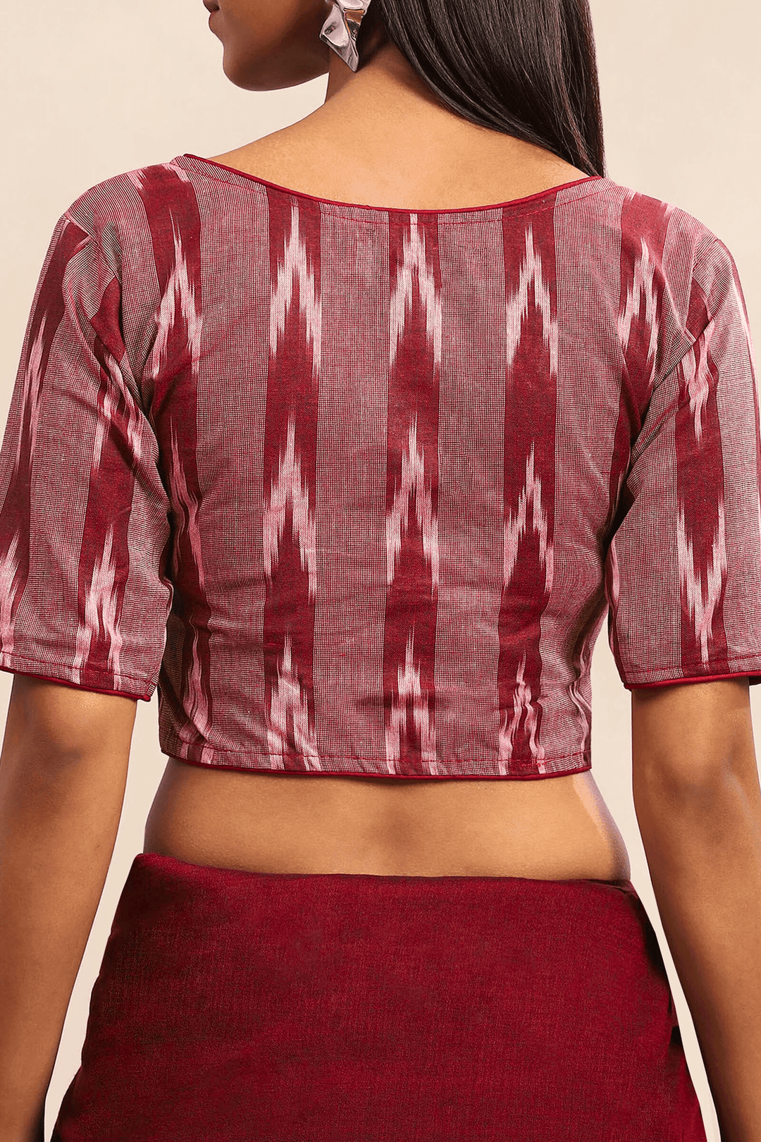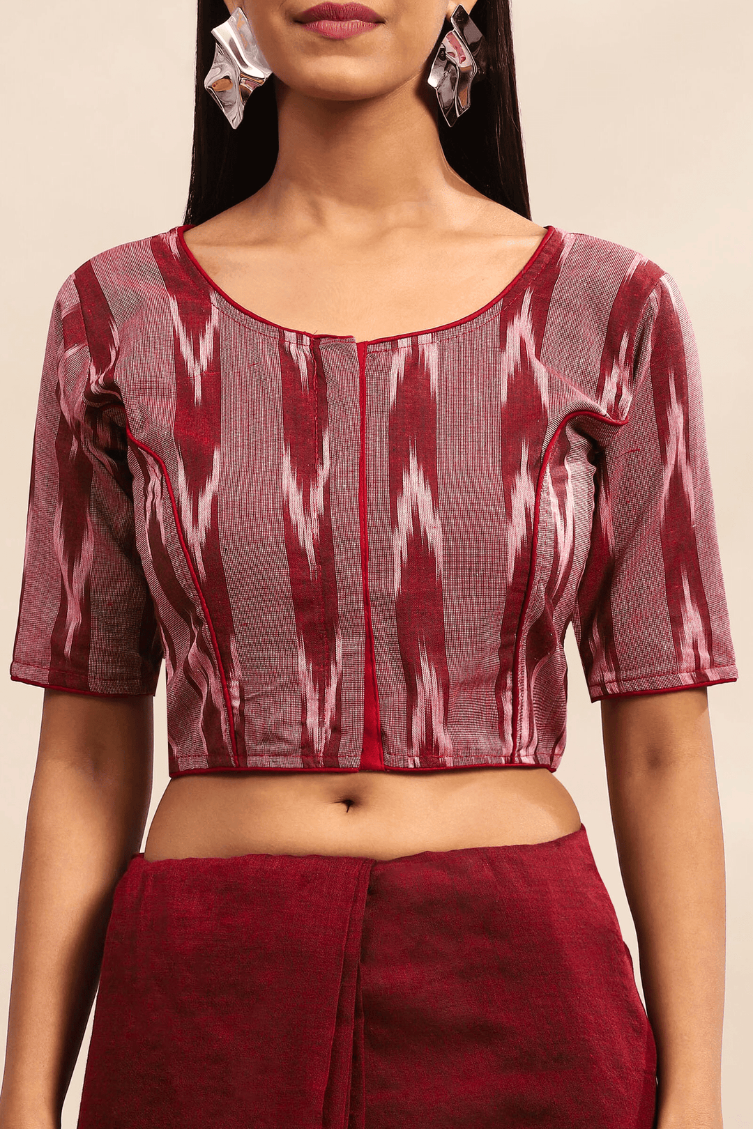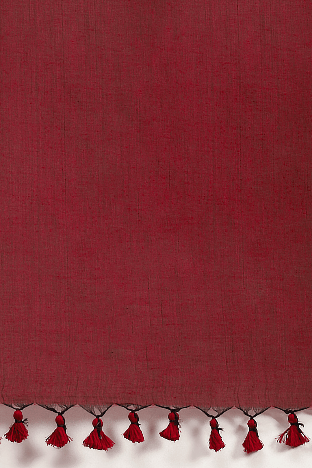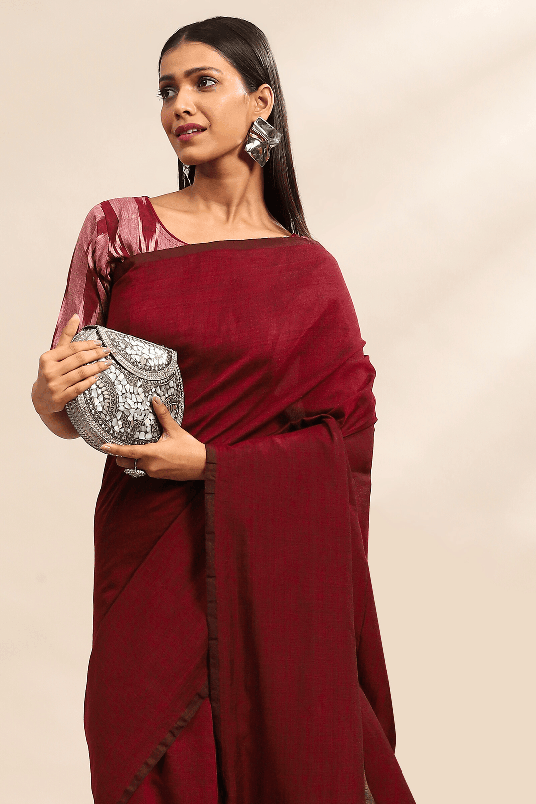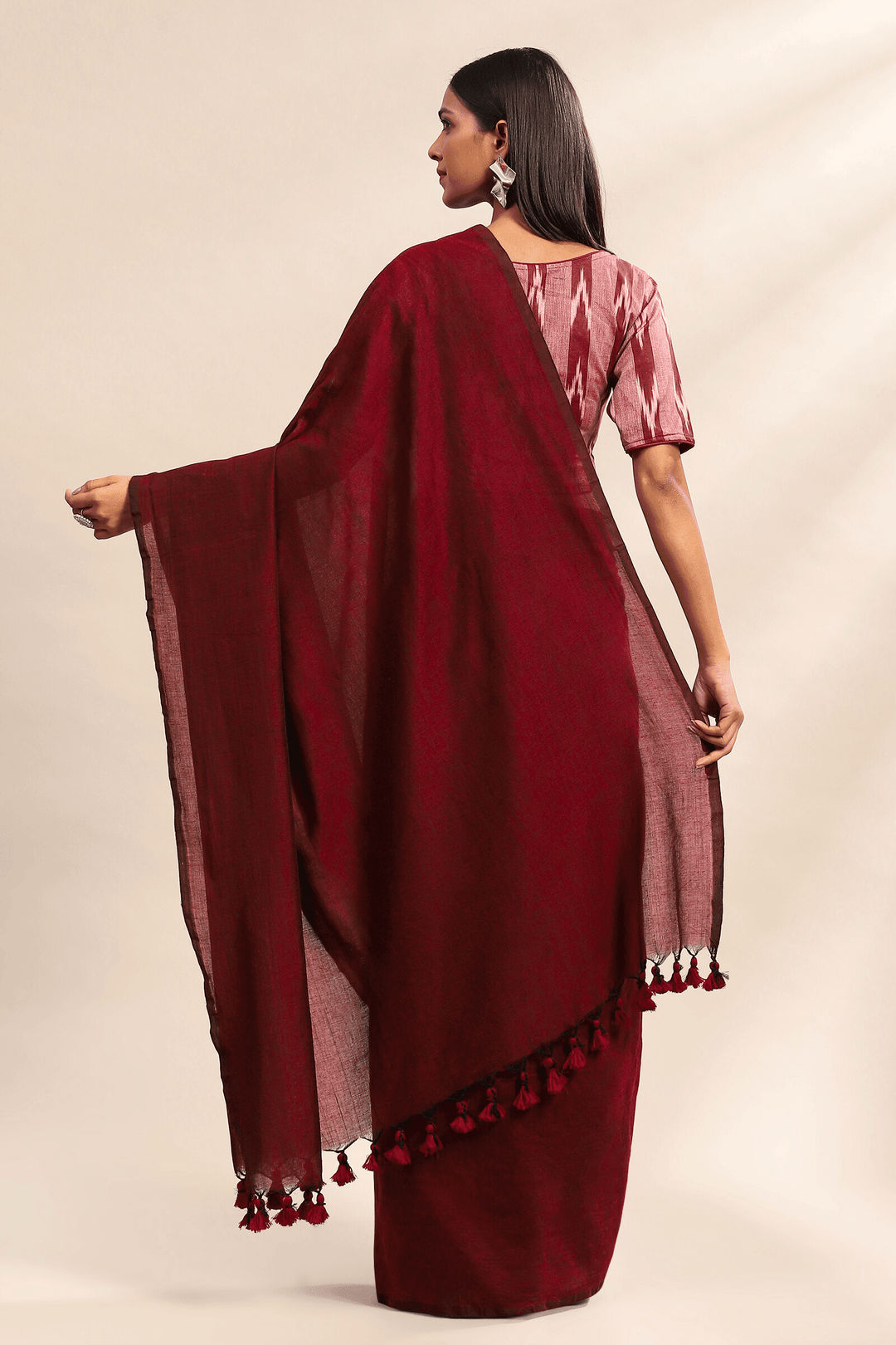 Burgundy Mul Saree | Ready to Wear Cotton Saree with Stitched Blouse