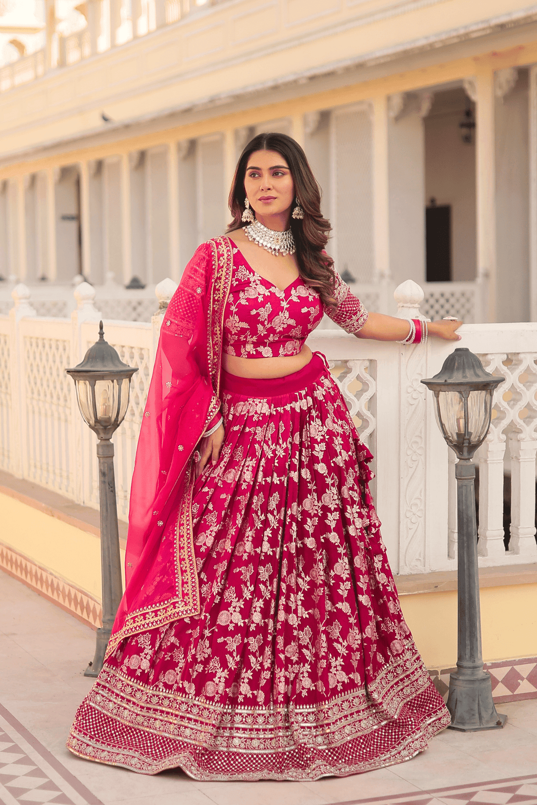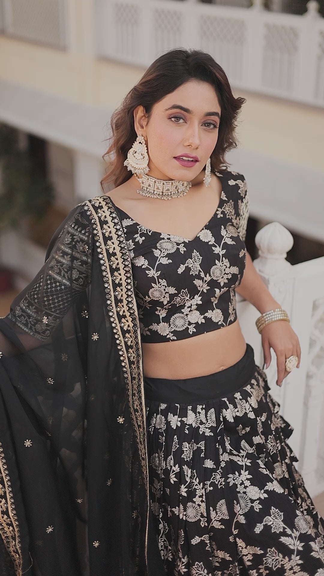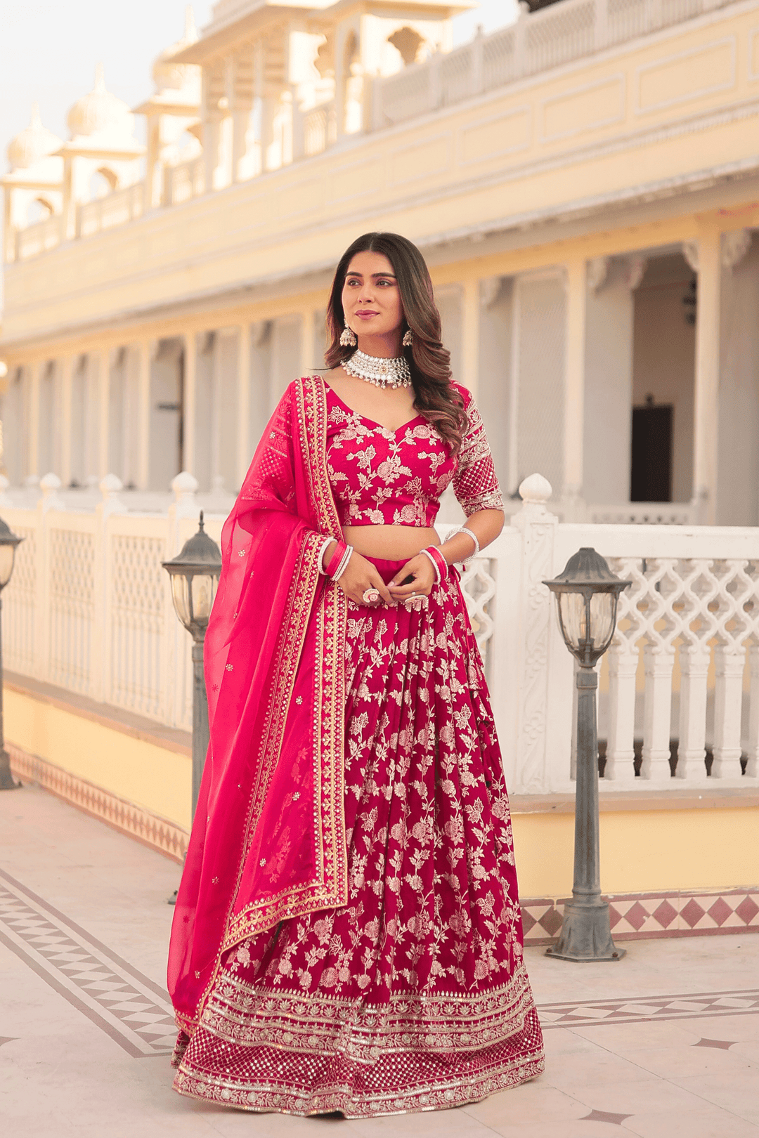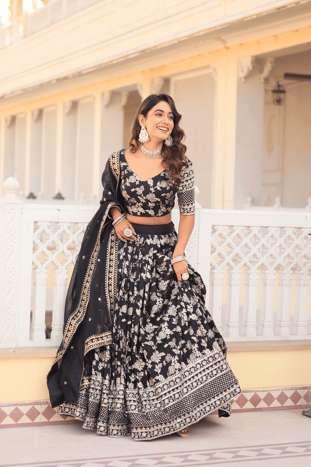 Introducing Glamwiz Jacquard woven Lehenga set, embellished with intricate sequins work. This lehenga is ideal for bridesmaid for wedding ceremonies, crafted in 4 bright colors.