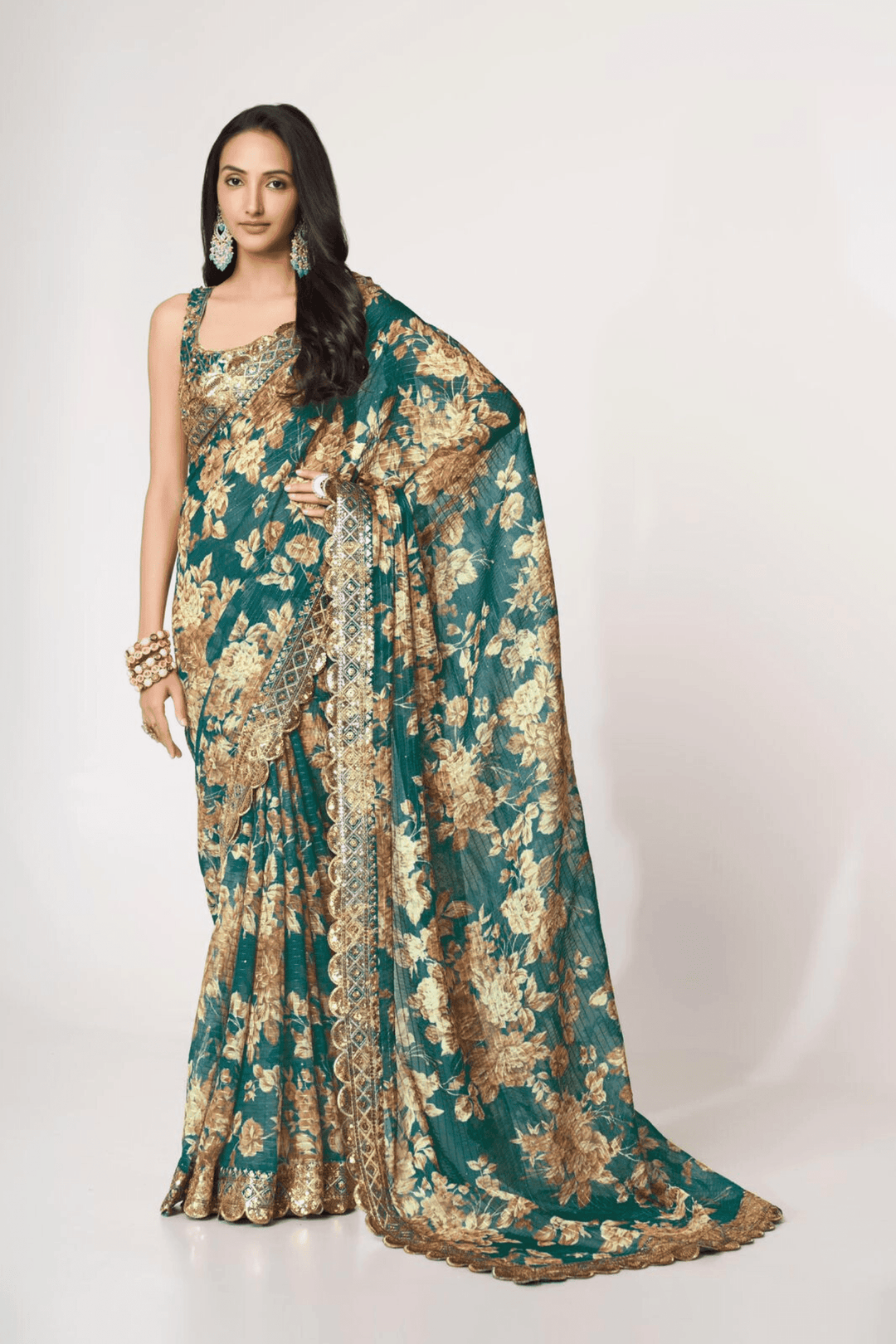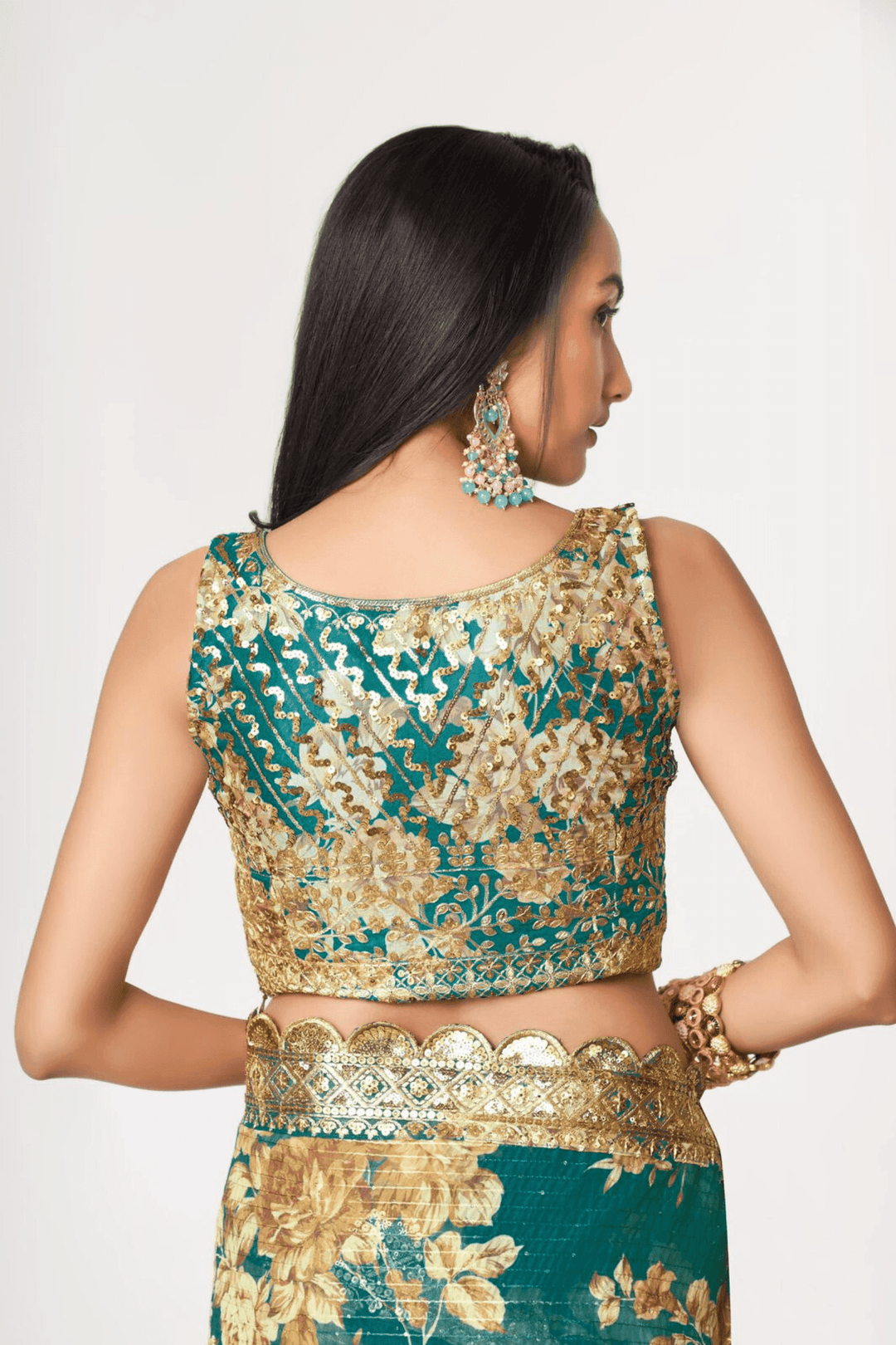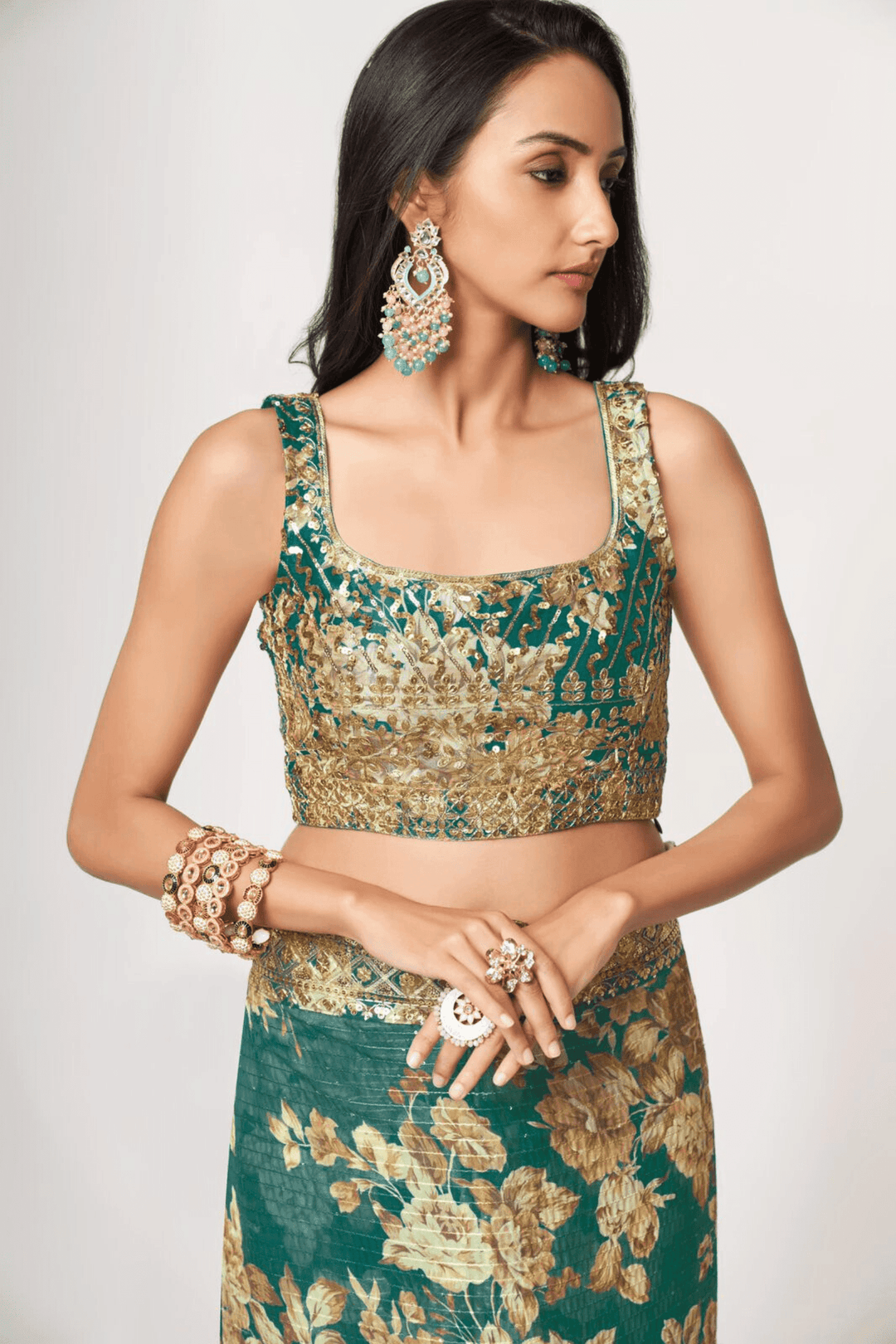 Green Sapphire | Ready to Wear Green Floral Organza Saree