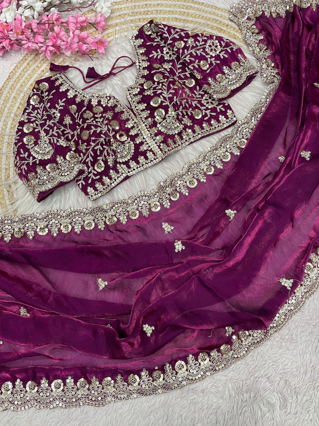 Length:- 5.5 meters & 0.8 Unstitched self fabric Blouse to style the blouse as you please!